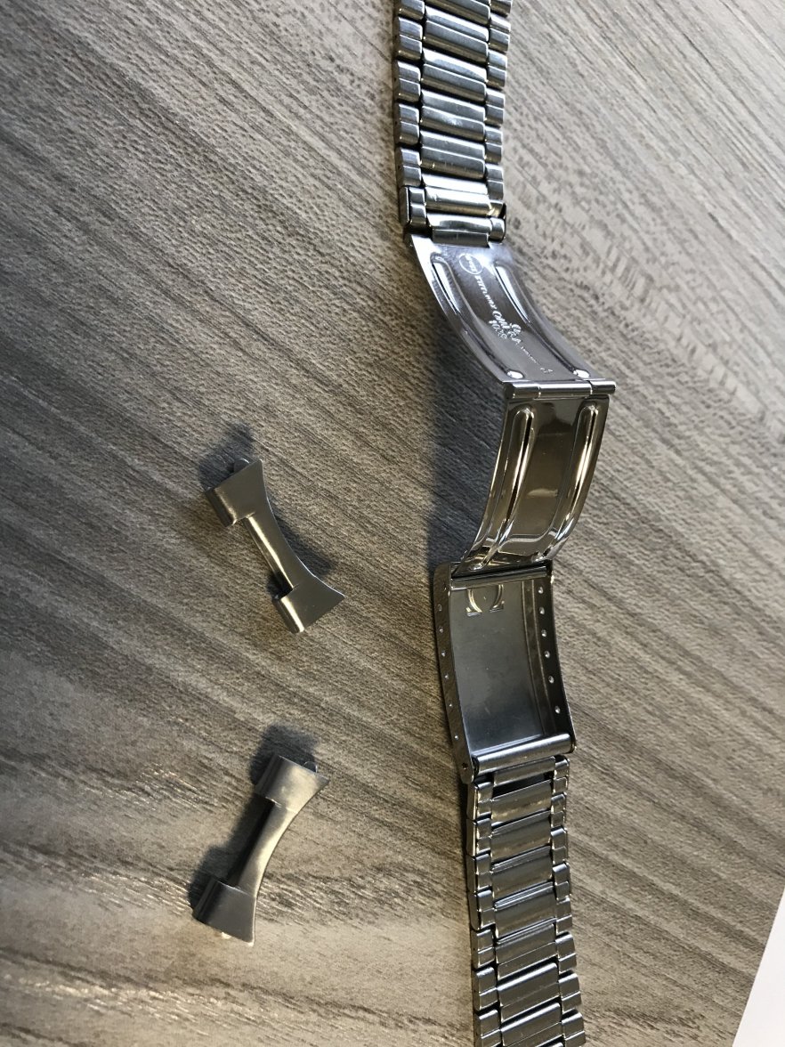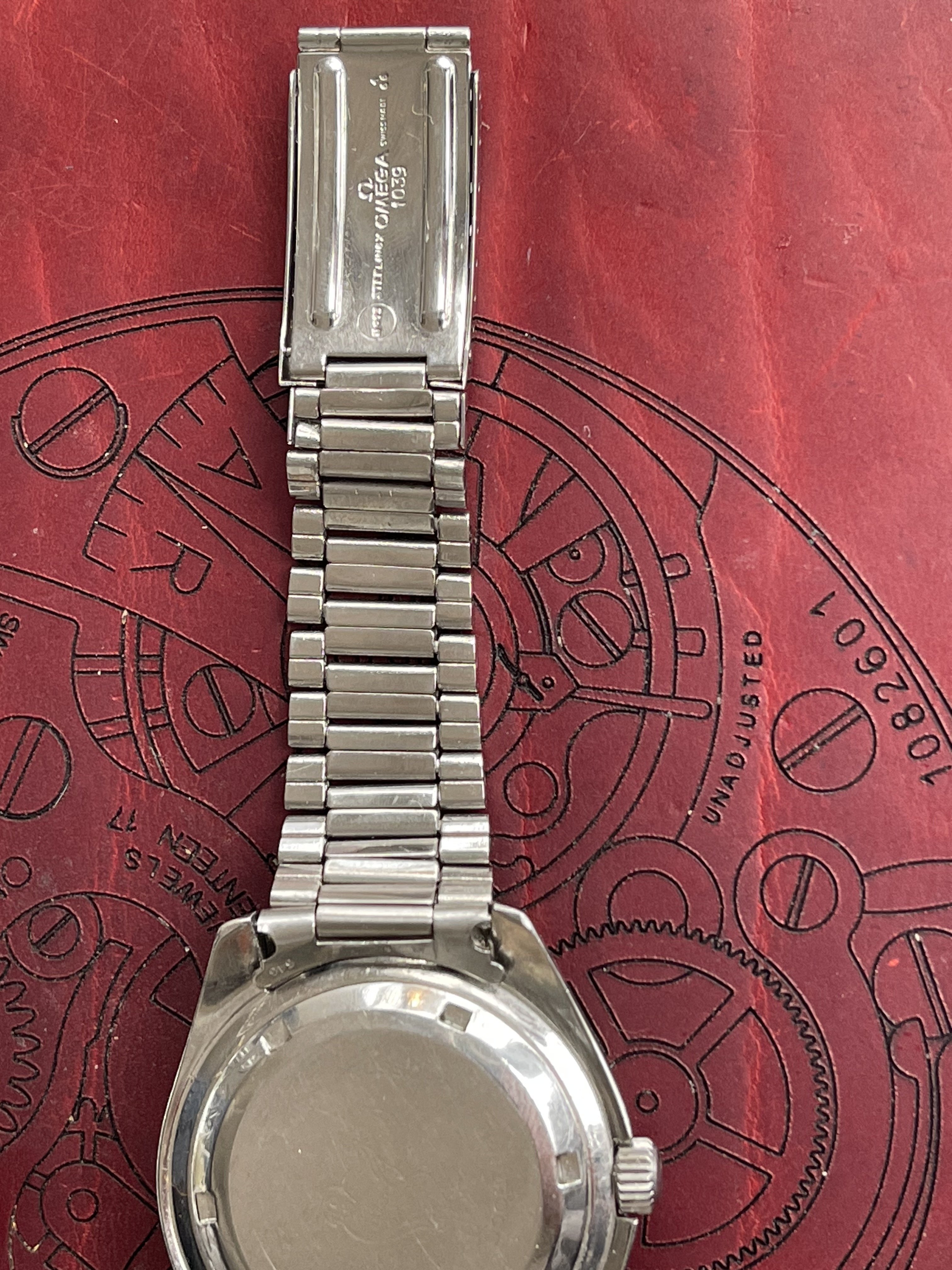 The bracelet is a 1039 with 516 end links. Clasp marked 4/66. It is in very good condition with brushed centre links and polished outer links. It does seem to have been sized at some point. I am happy to sell the watch head only and will include a black Nato should you choose that option.
