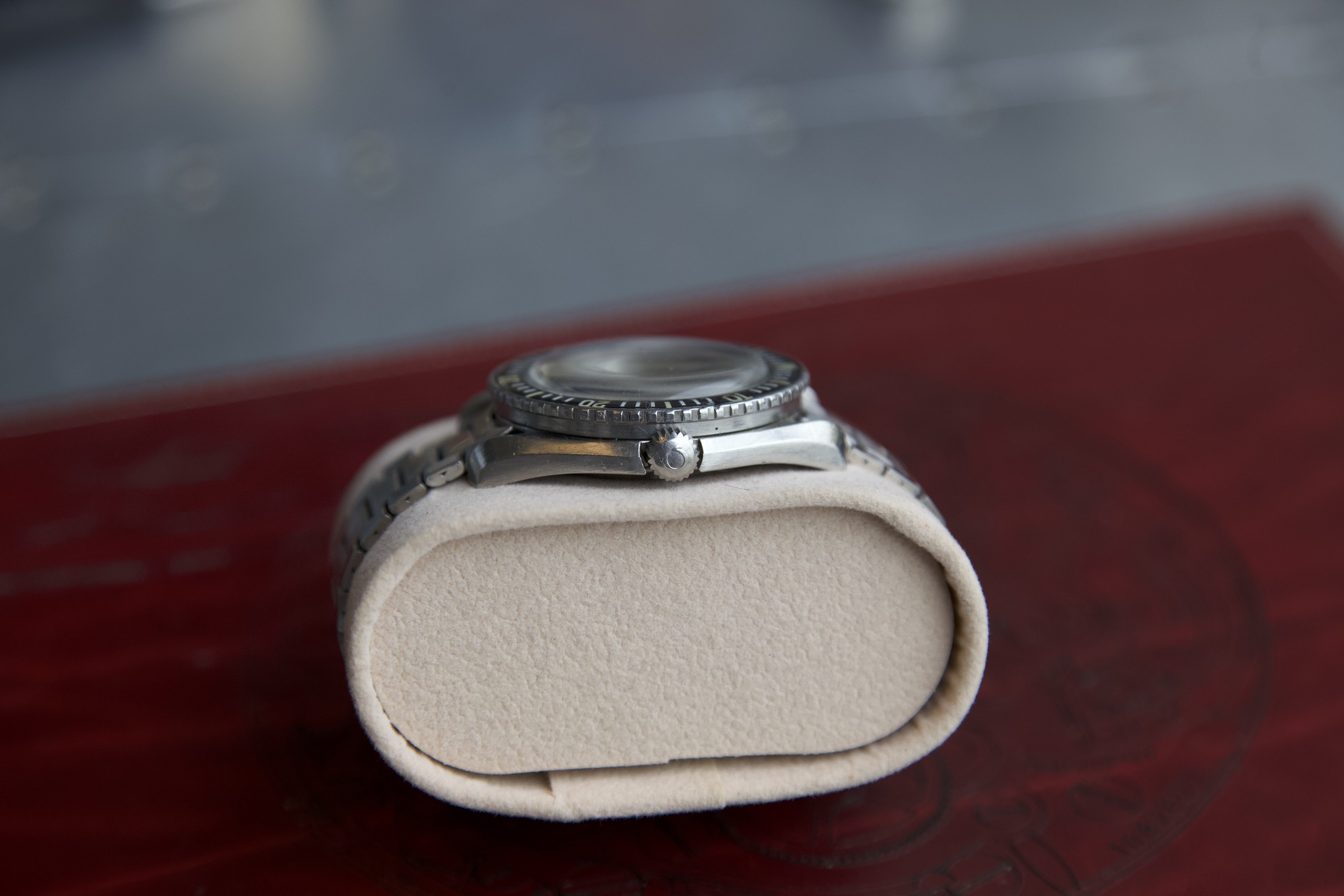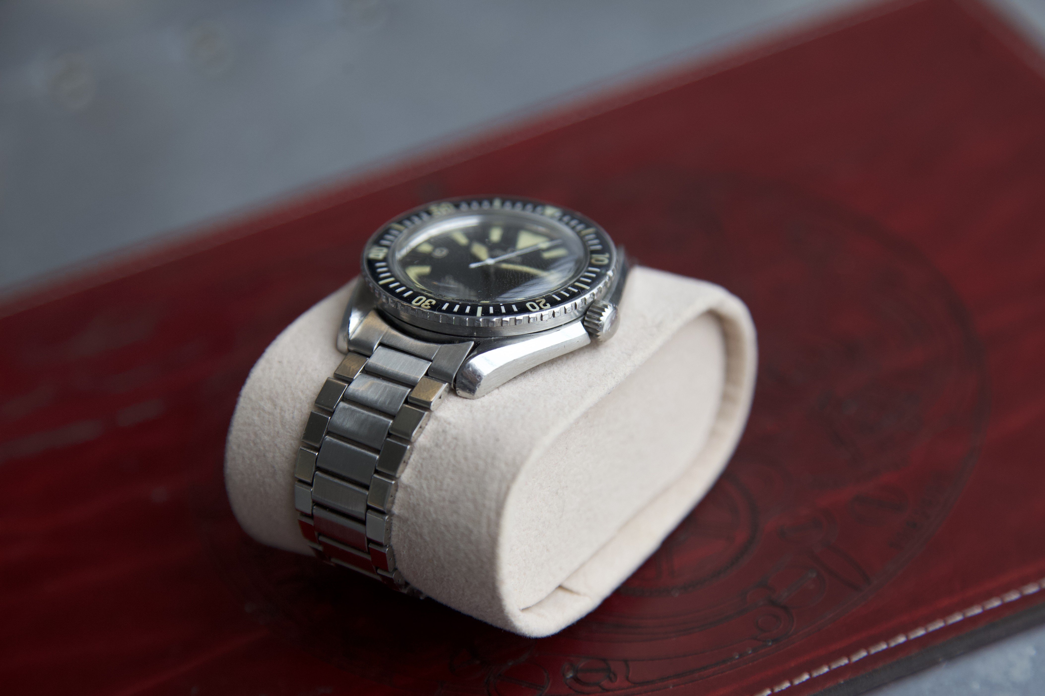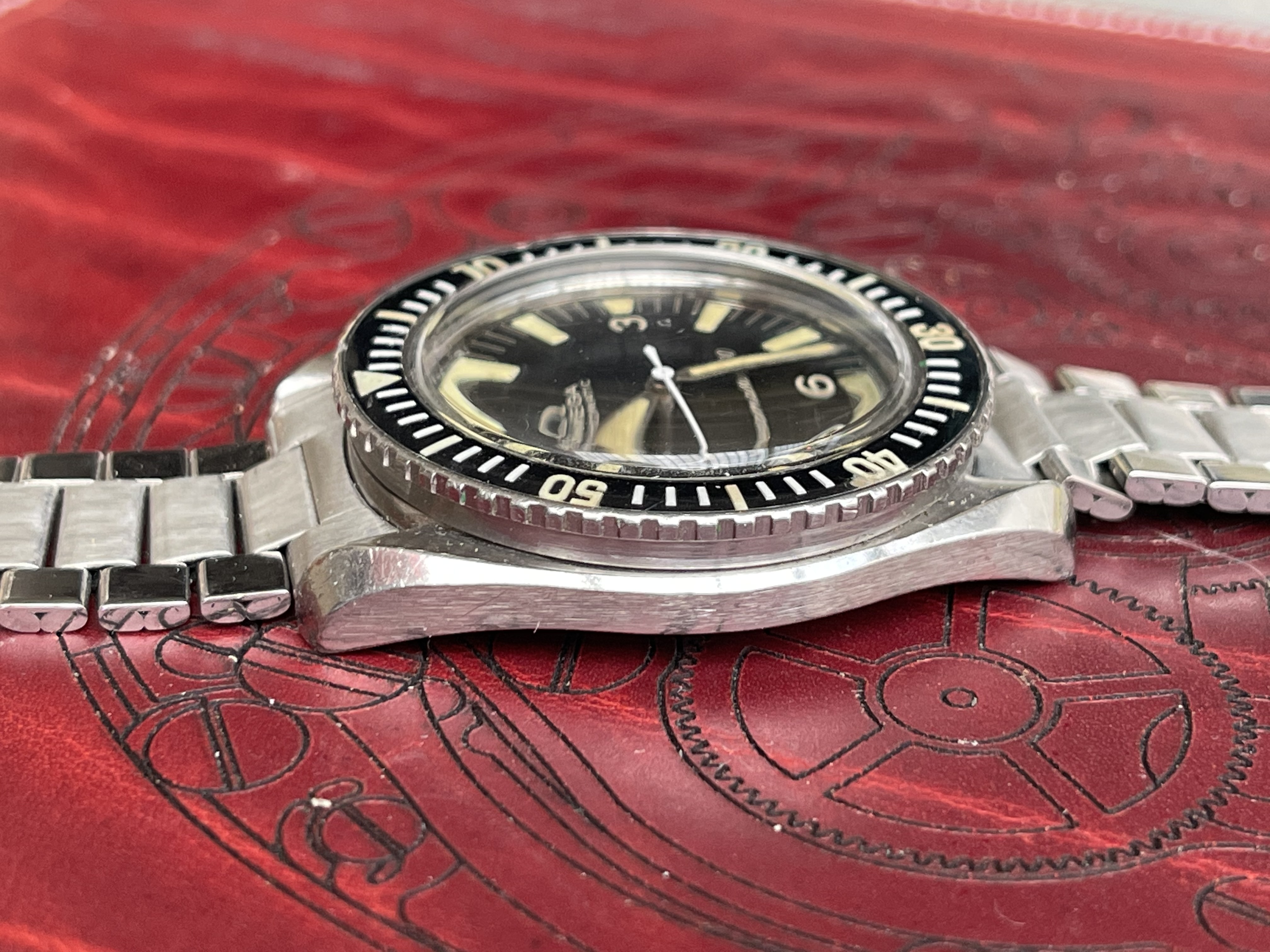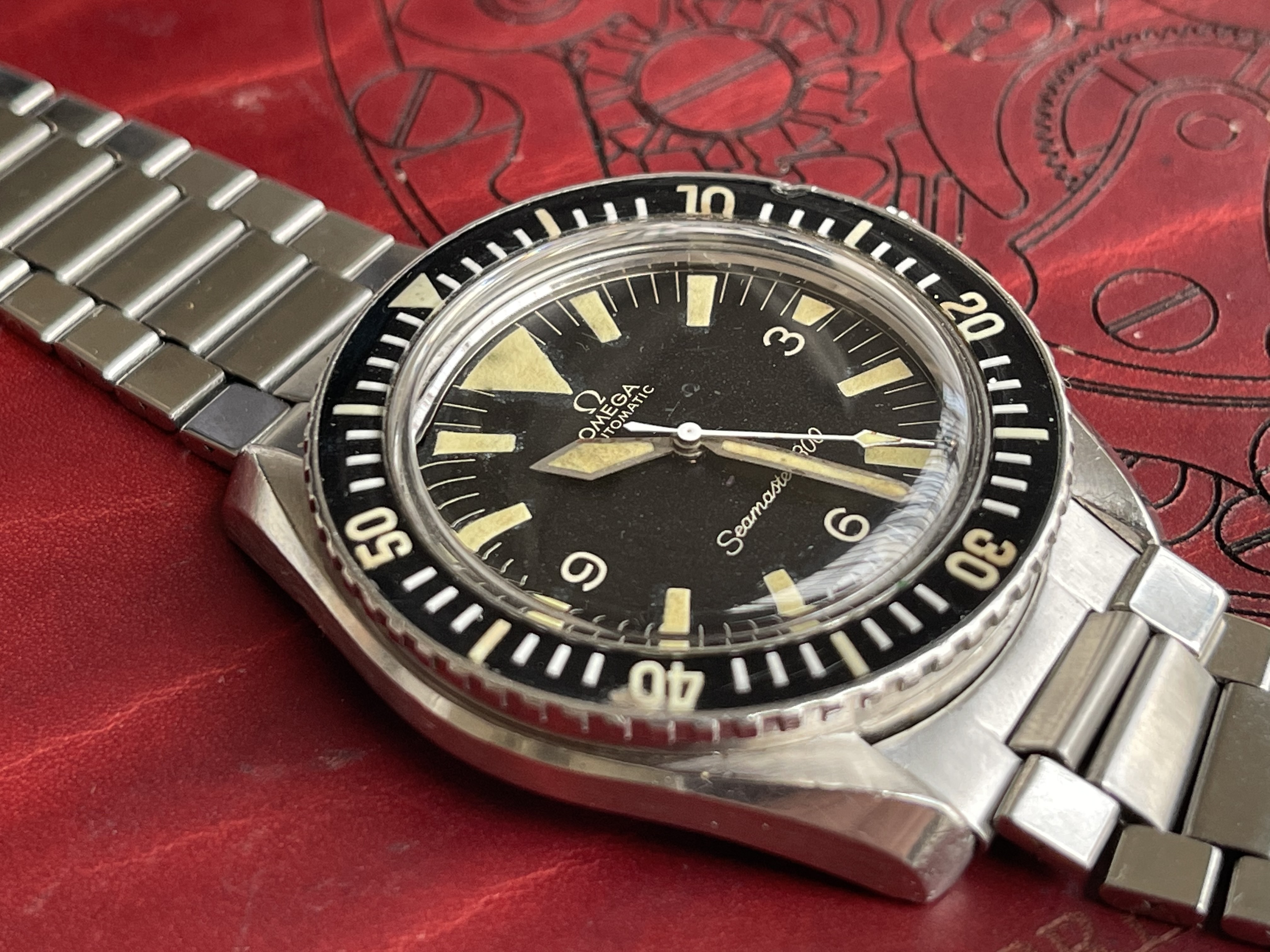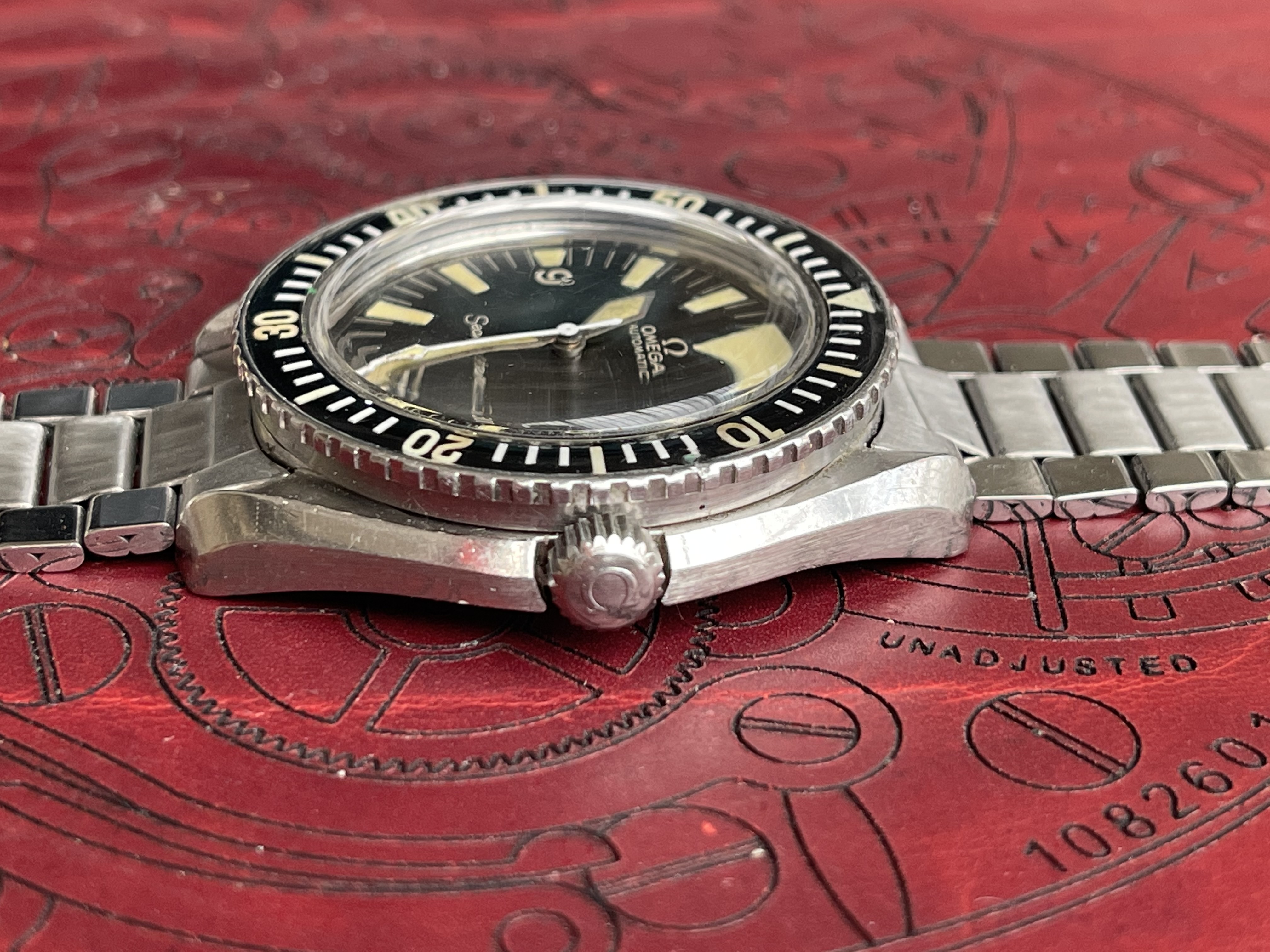 Condition is very good with a nice even patina. The bezel insert has one small ding at 11 and some flaking at 40. Crystal is marked Omega at the centre and is in very good condition. The crown looks to be a later replacement.