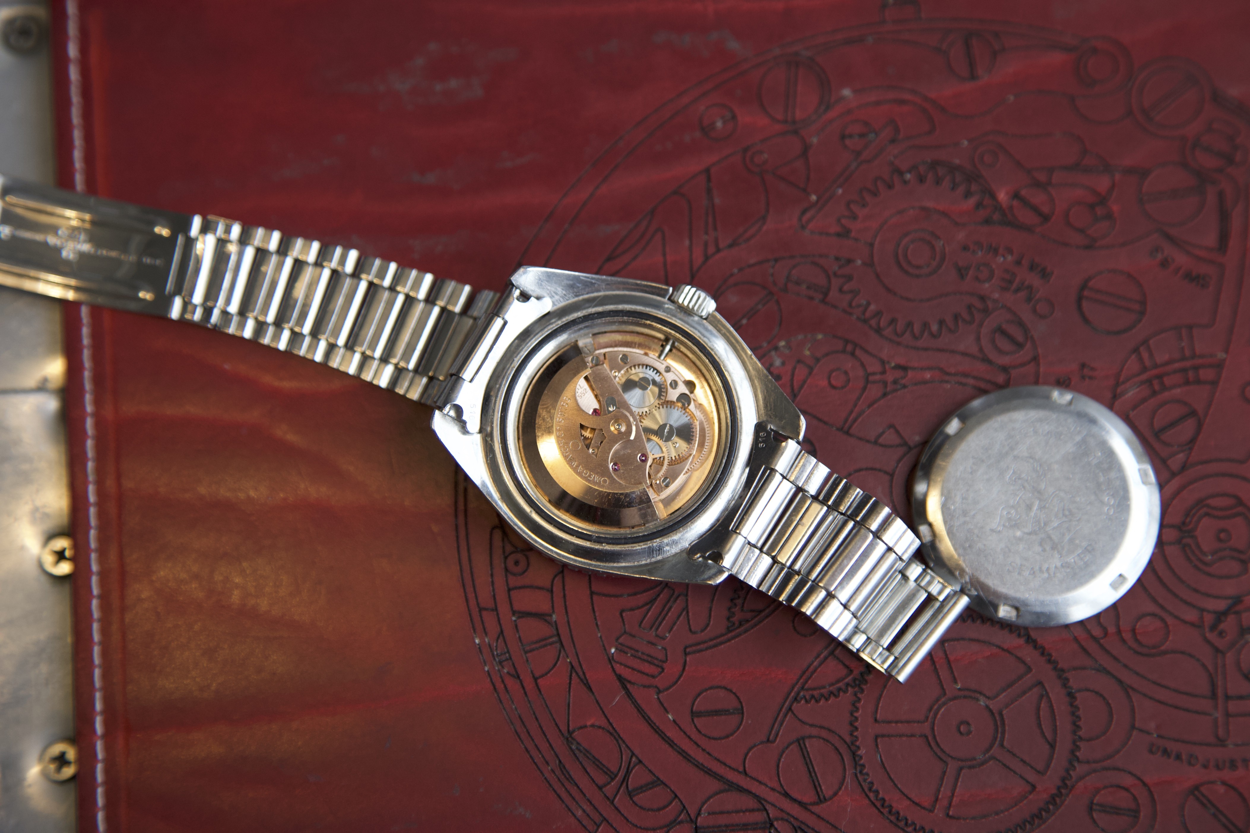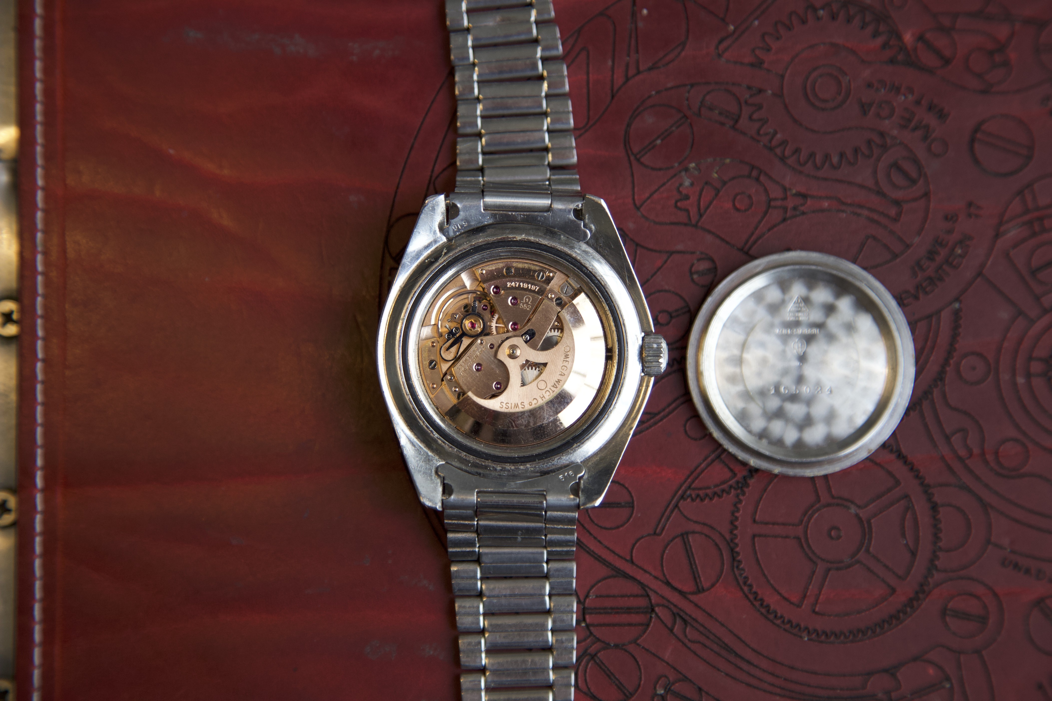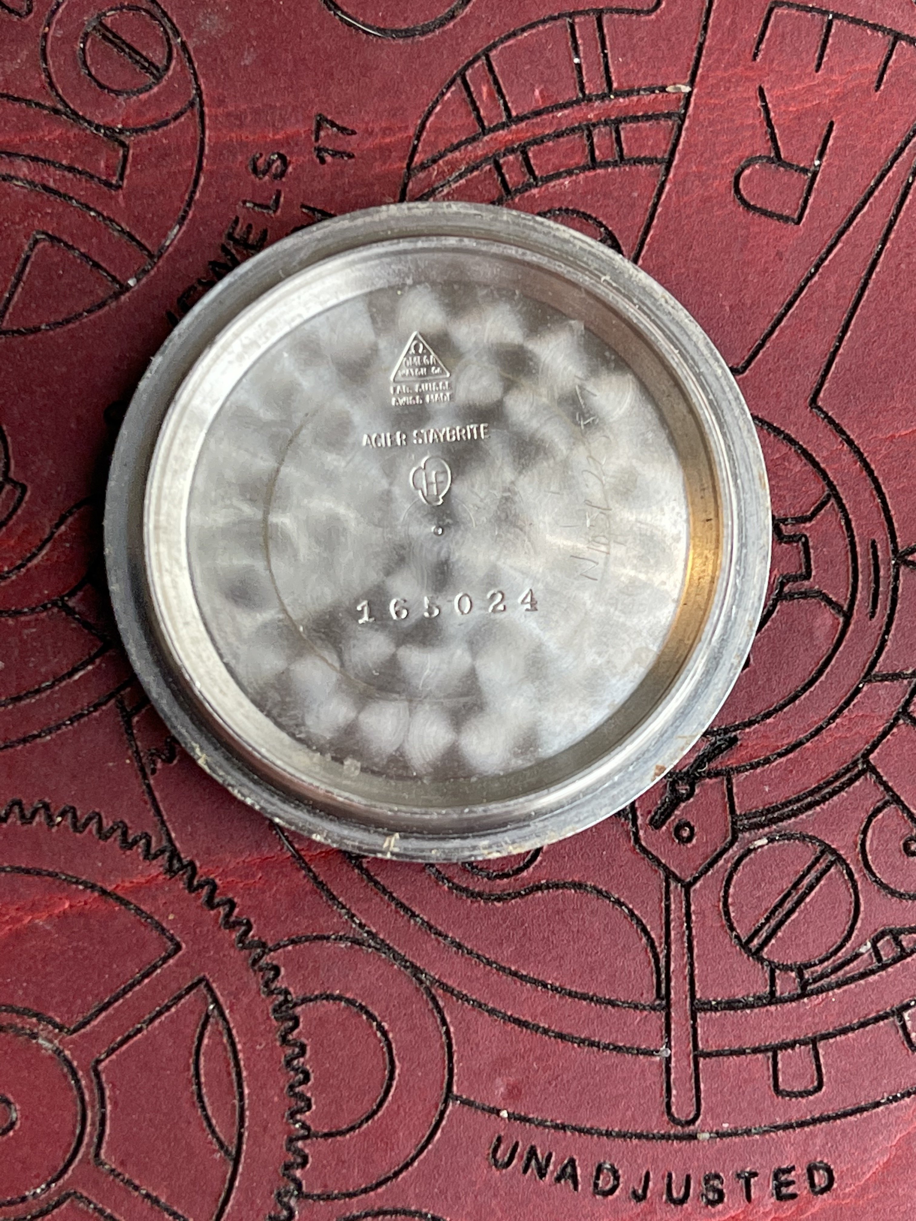 Movement is clean and functions well. Service marks to the inner caseback and some wear to the outer caseback.