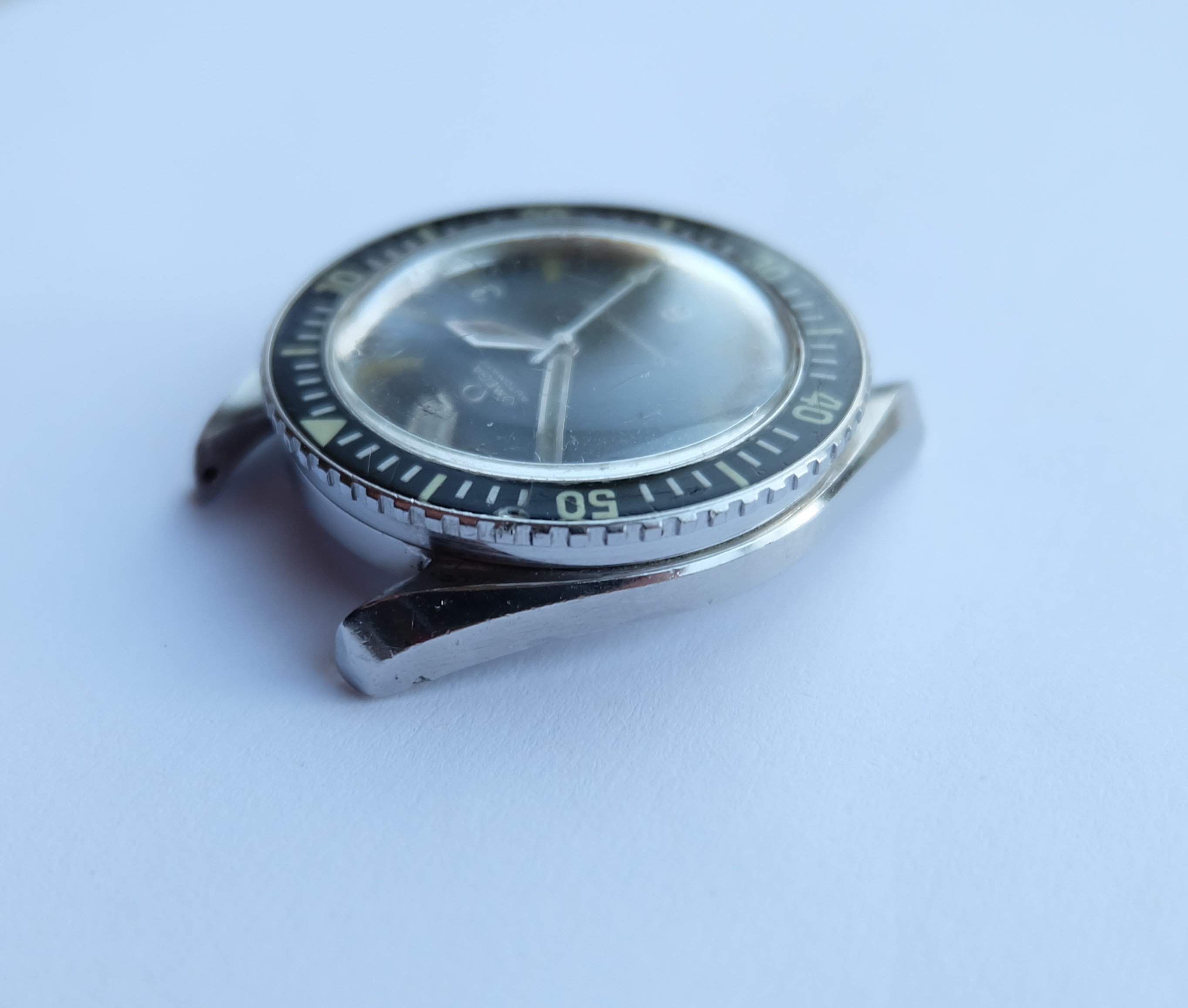 The bezel has aged to a pleasant colour and is the correct one for this age. It has no major cracks but does have plenty of minor marks and a small ding near the 51 min marker and no longer turns so probably needs a good clean underneath.