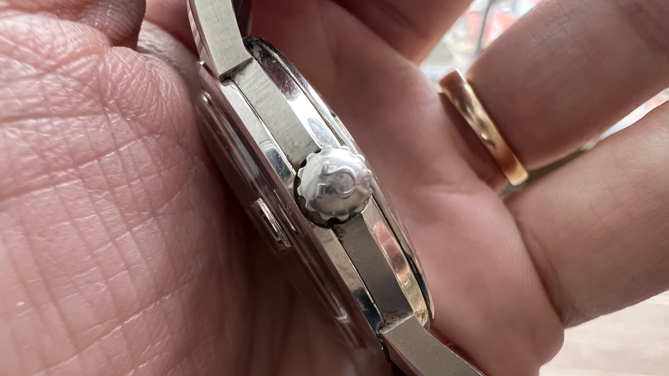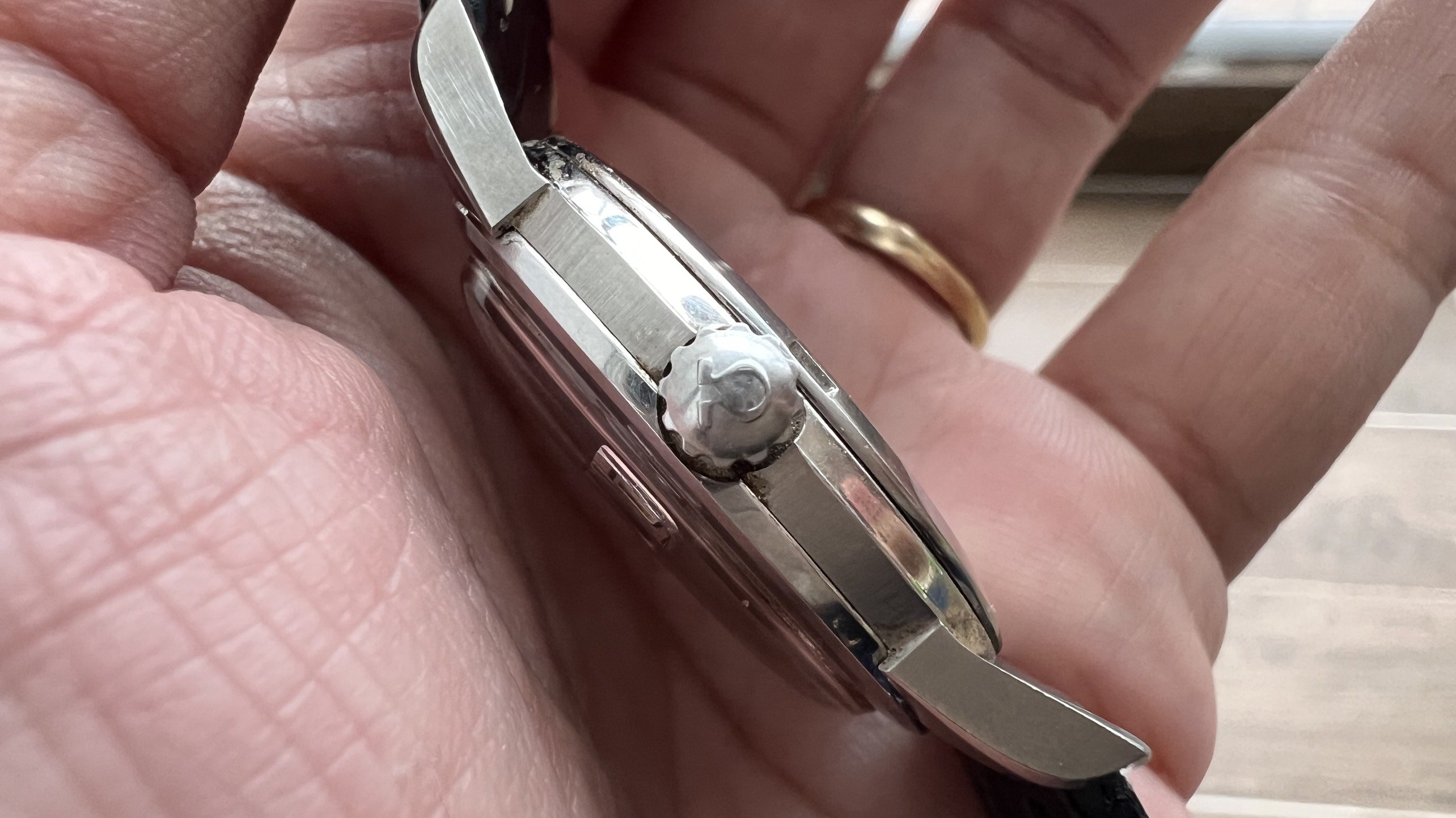 - Crown: Original and correct Omega crown.