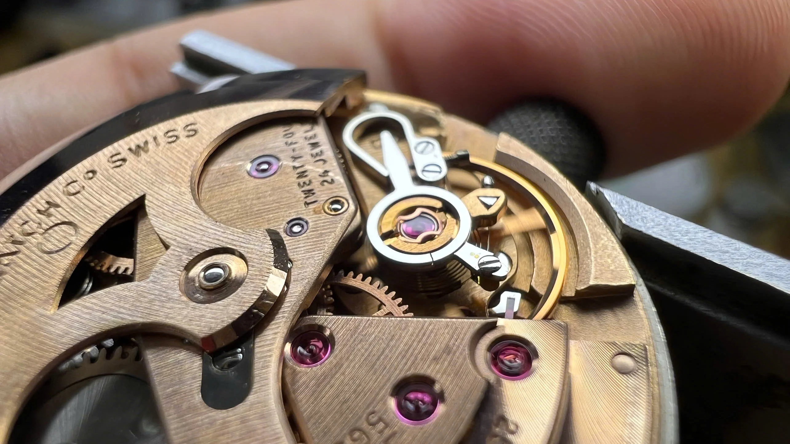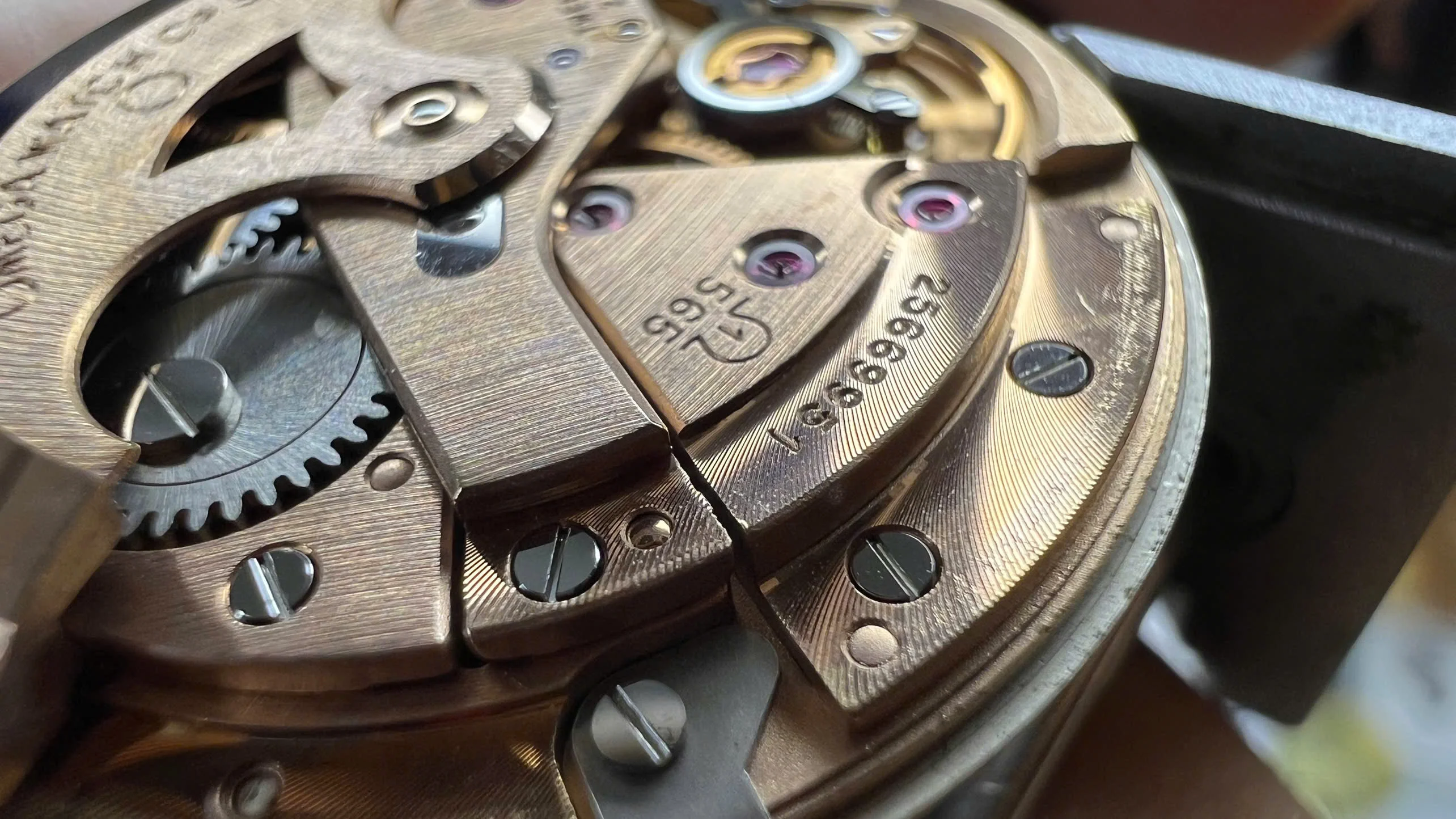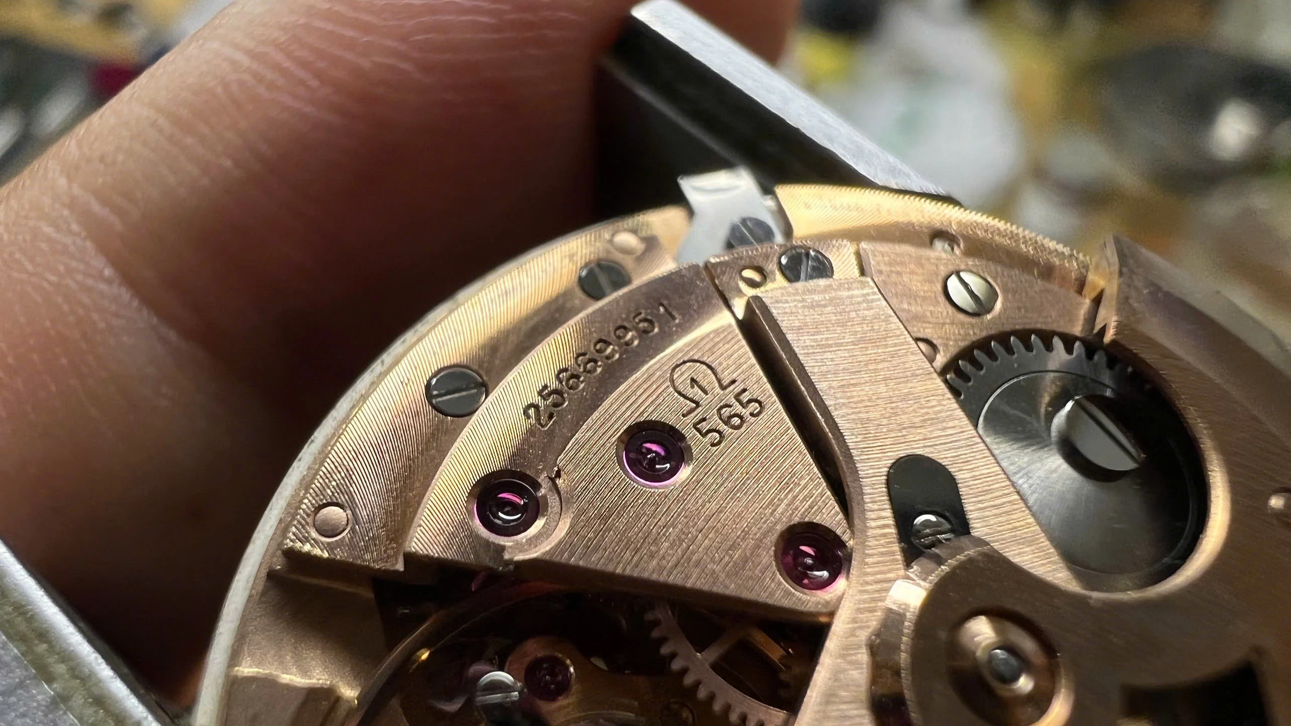 The signed plexiglass is present and clean. Powering it is Omega’s Cal. 565 with quickset date, running strongly after service.