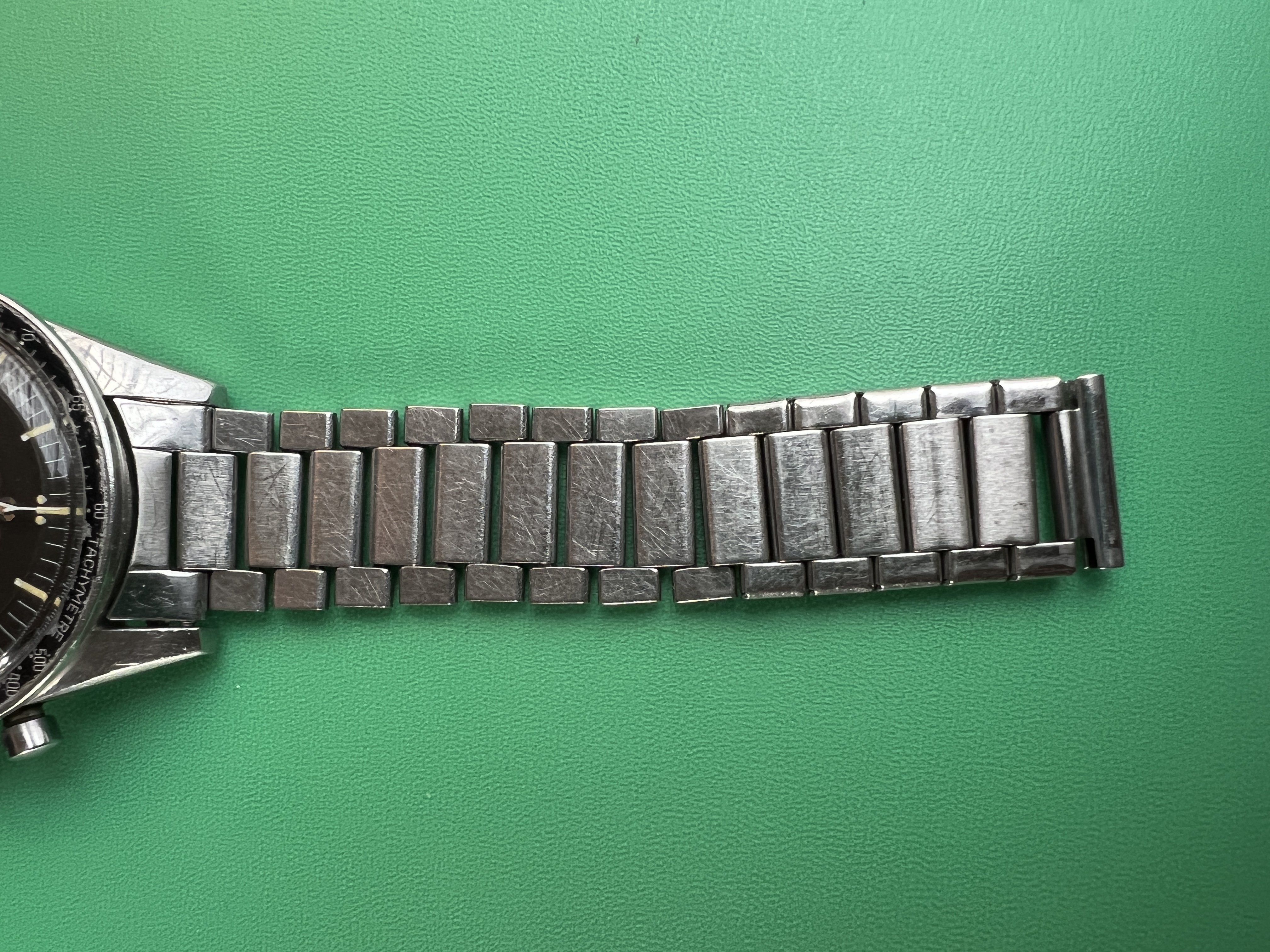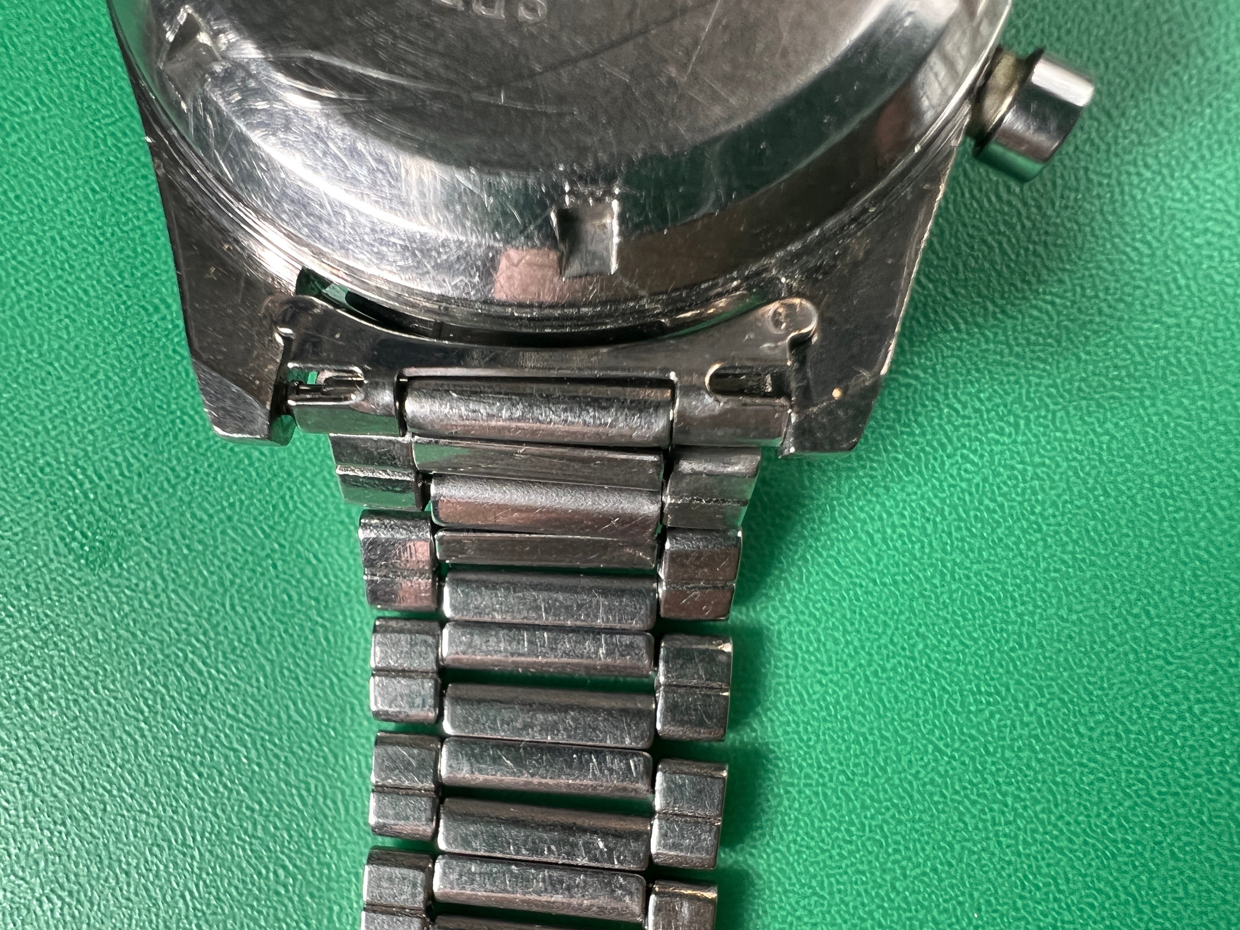 It is fitted with the very rare original flat link bracelet reference 1035/1501 with it's original 6 end links.