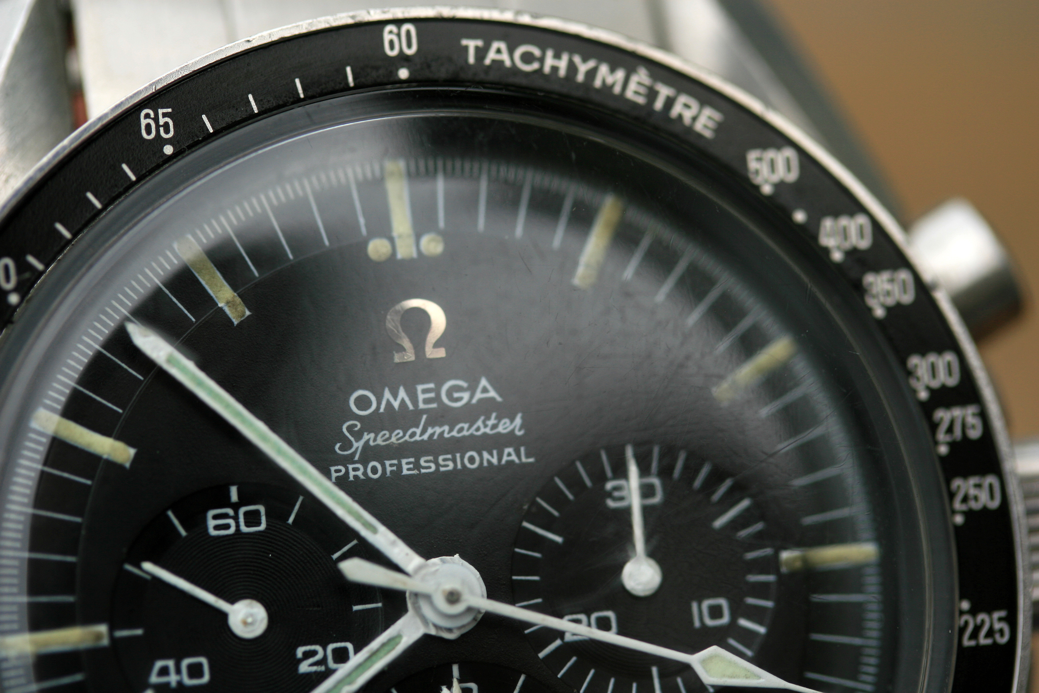Dial is excellent, applied logo, tritium, with great yellow patina. Hands have been repainted in past, but could be original. Crystal is Omega hesalite with logo in center.