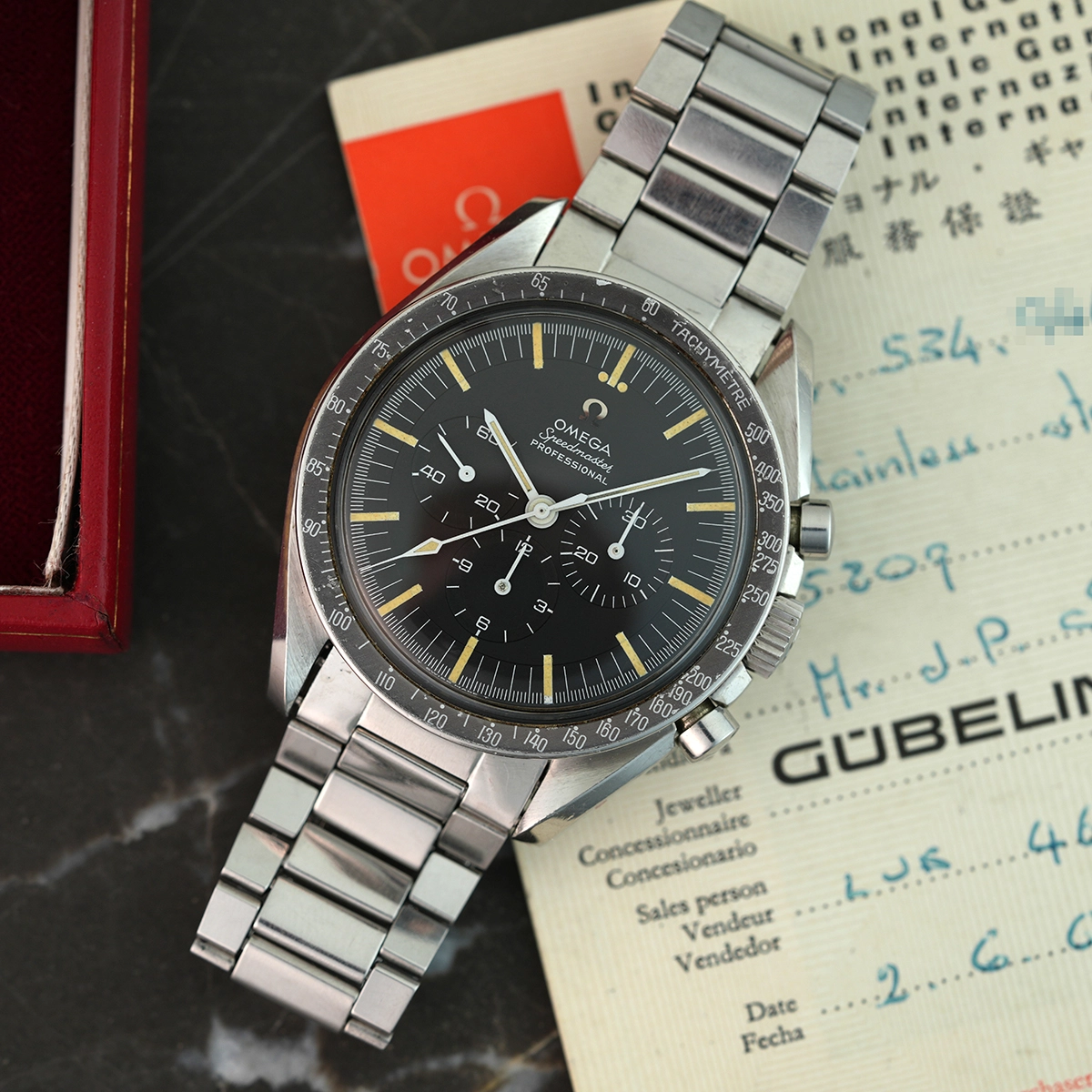 Full set box & papers Omega Speedmaster Professional refernce 105.012-66 HF retailed by GUBELIN.