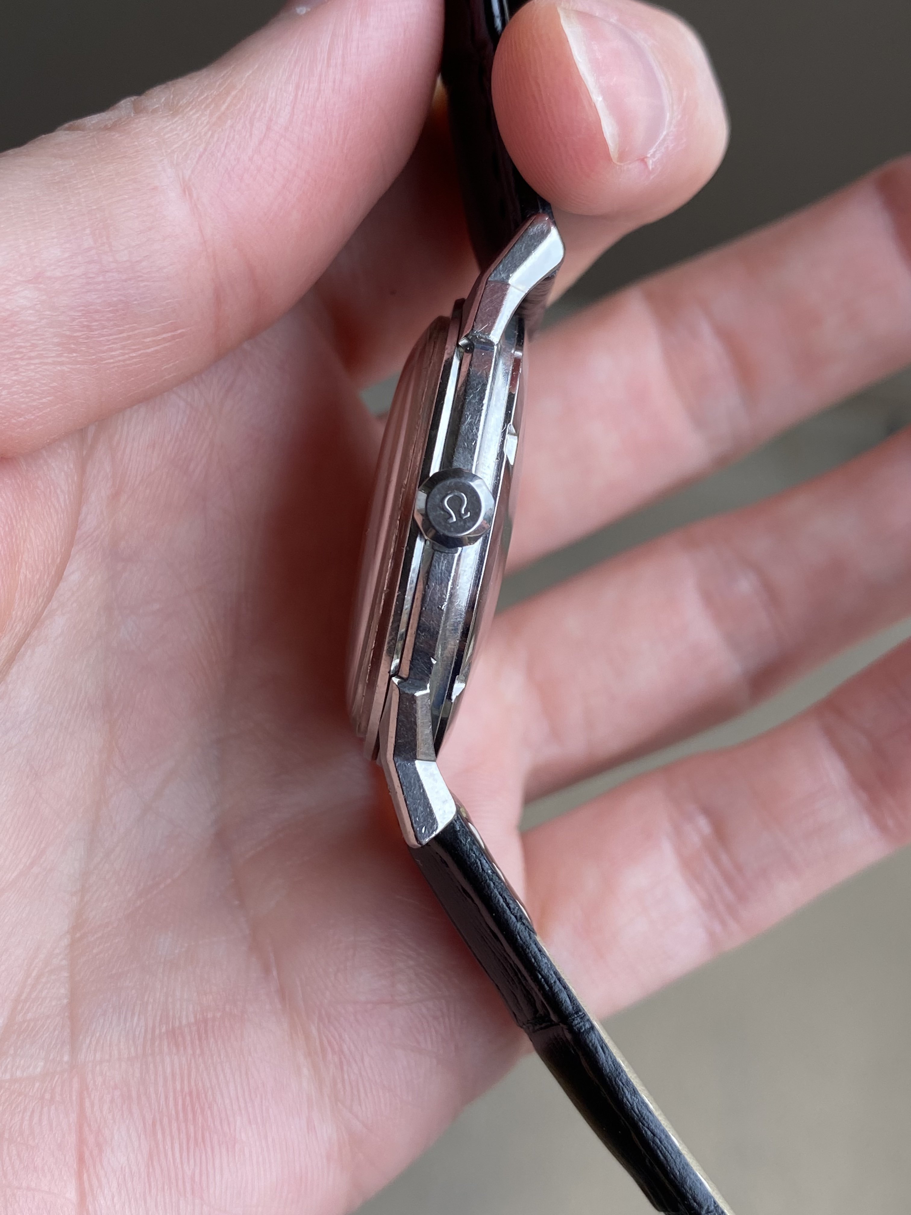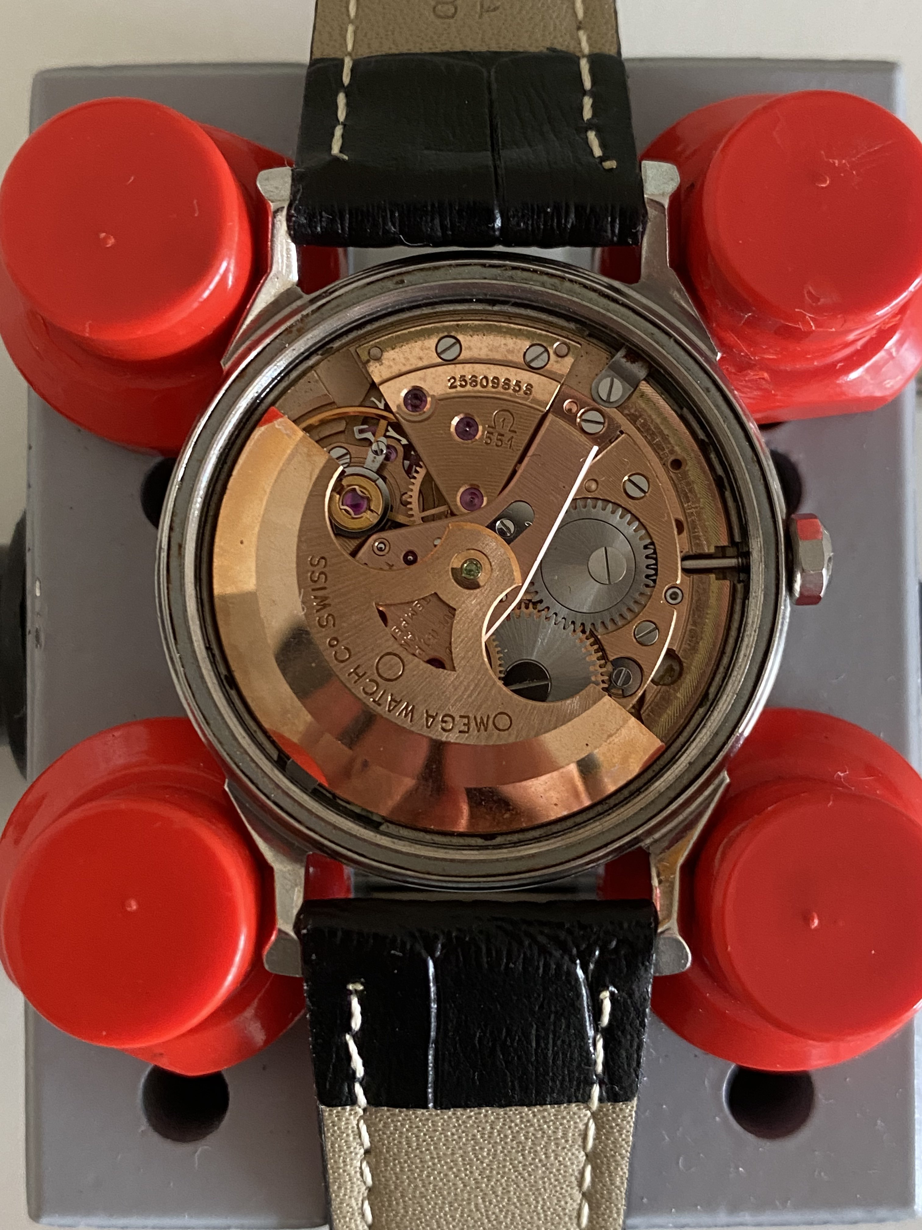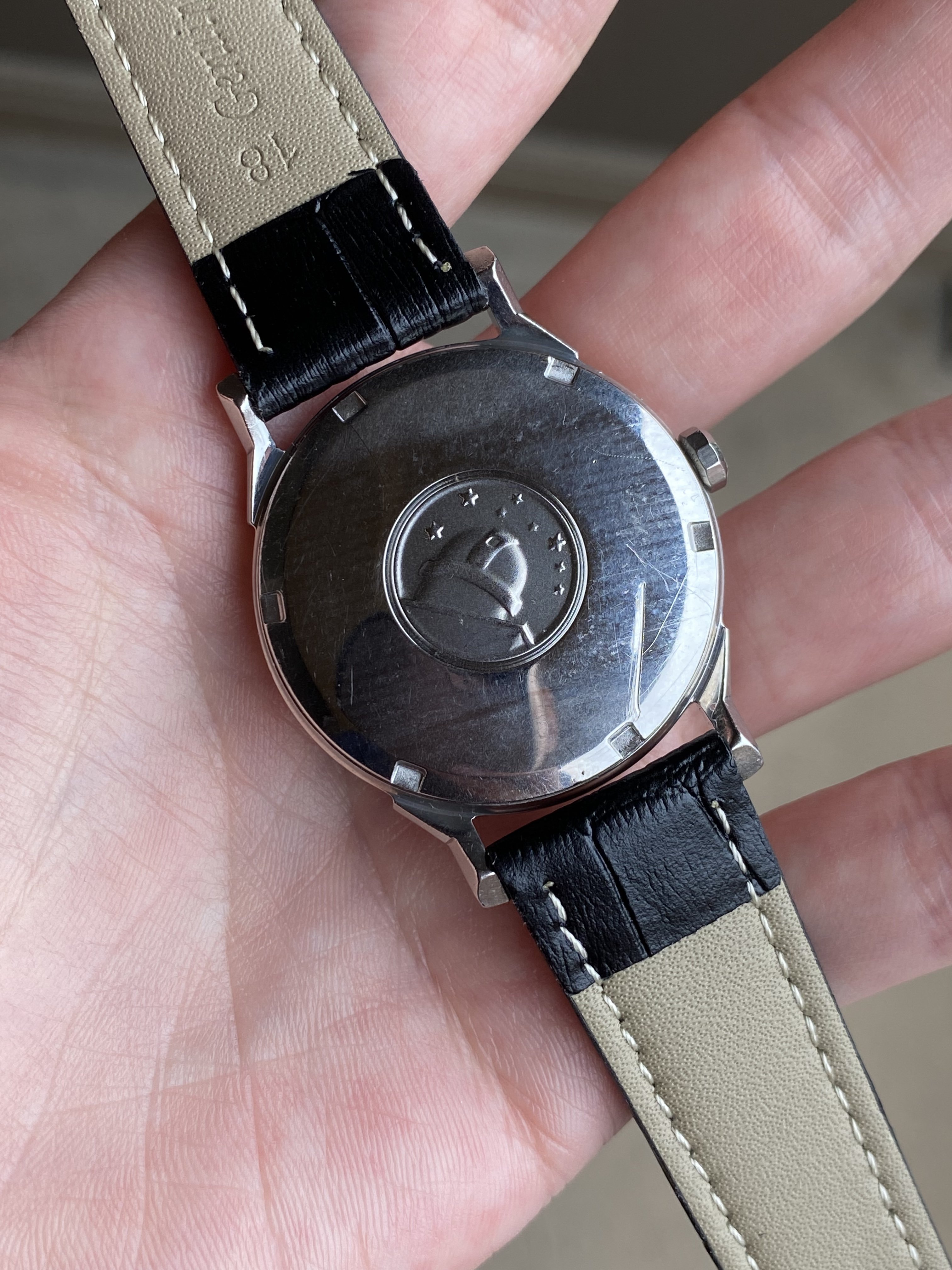 Case: Original 34.5mm 167.005 case is in overall nice condition and is unpolished with sharp bevels on the lugs and a nice medallion on the caseback. However, there is one significant scratch on the caseback from being opened improperly.