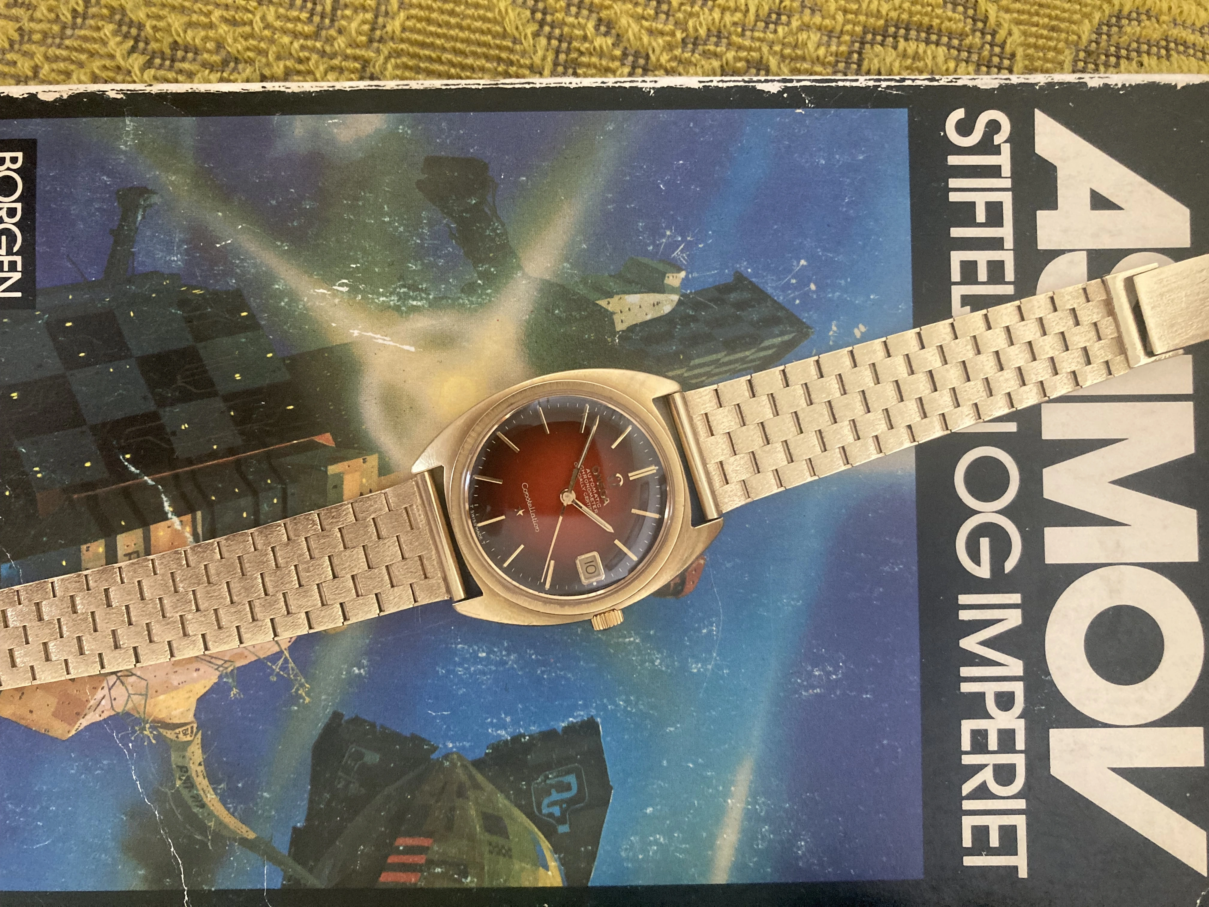 I am in the lucky position that I have inherited a beautiful Omega Constellation with red dial, Gold bracelet, and in original box w papers.