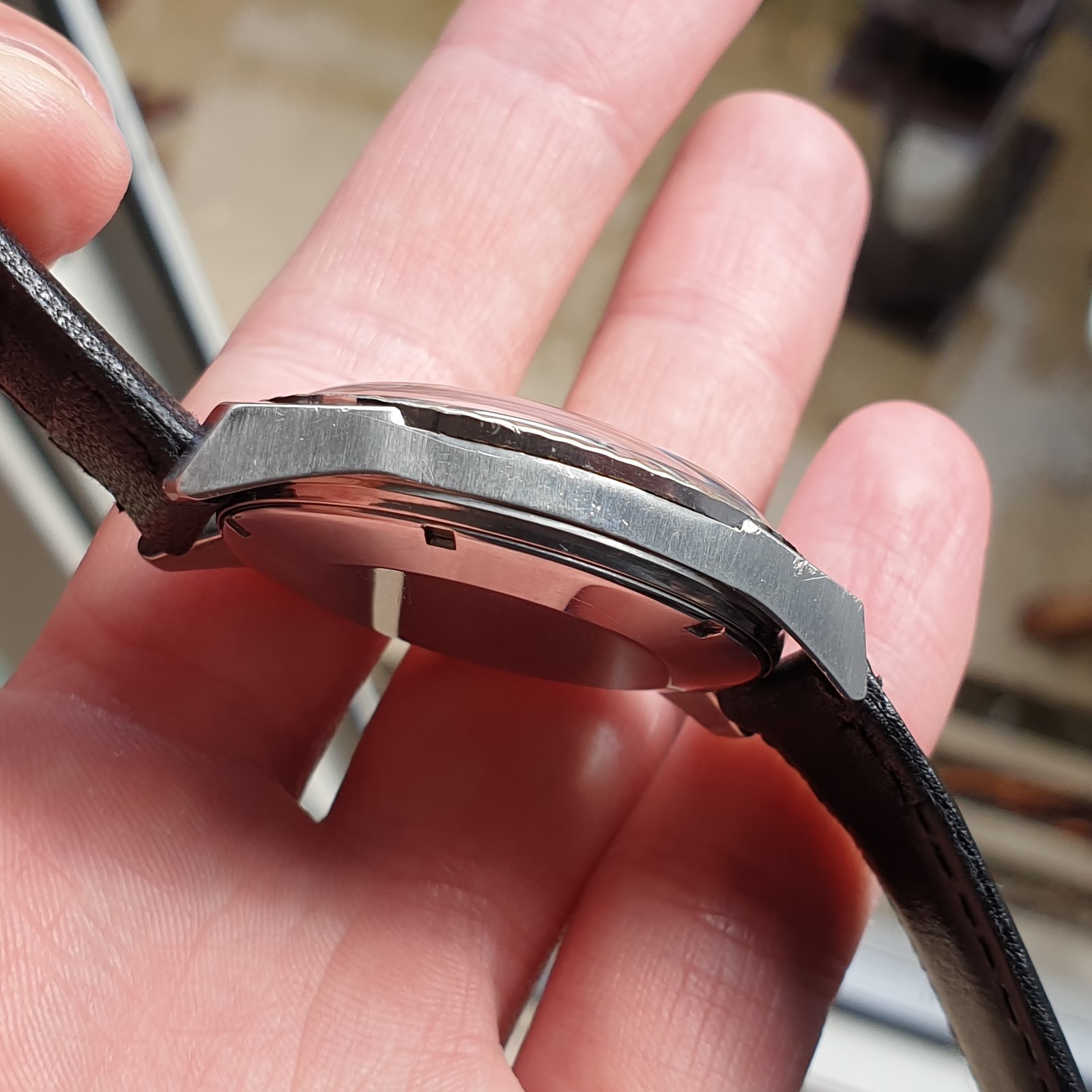 The case shows some wear but the dial well makes up for it, in my opinion! The markers are fat and 3D and catch the light wonderfully.
