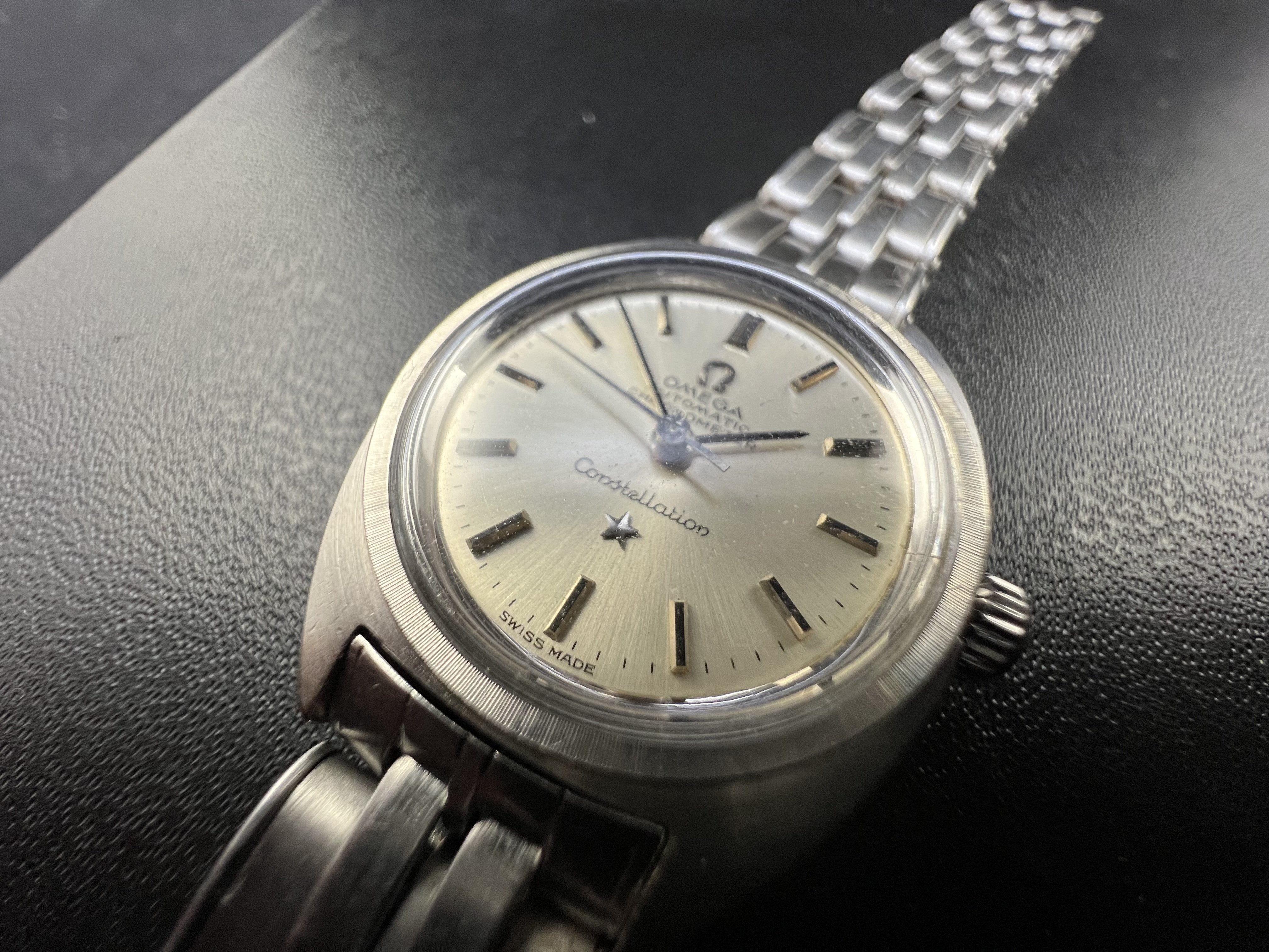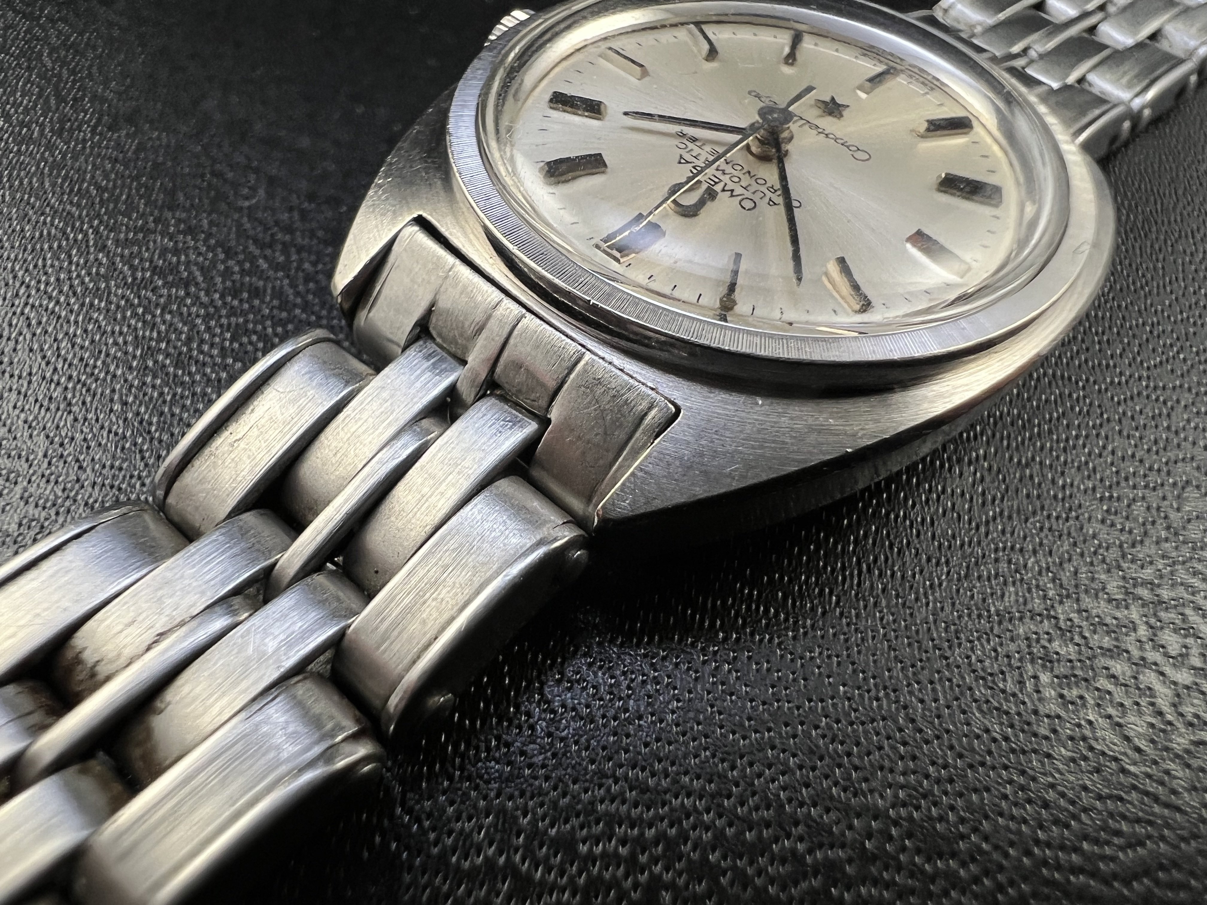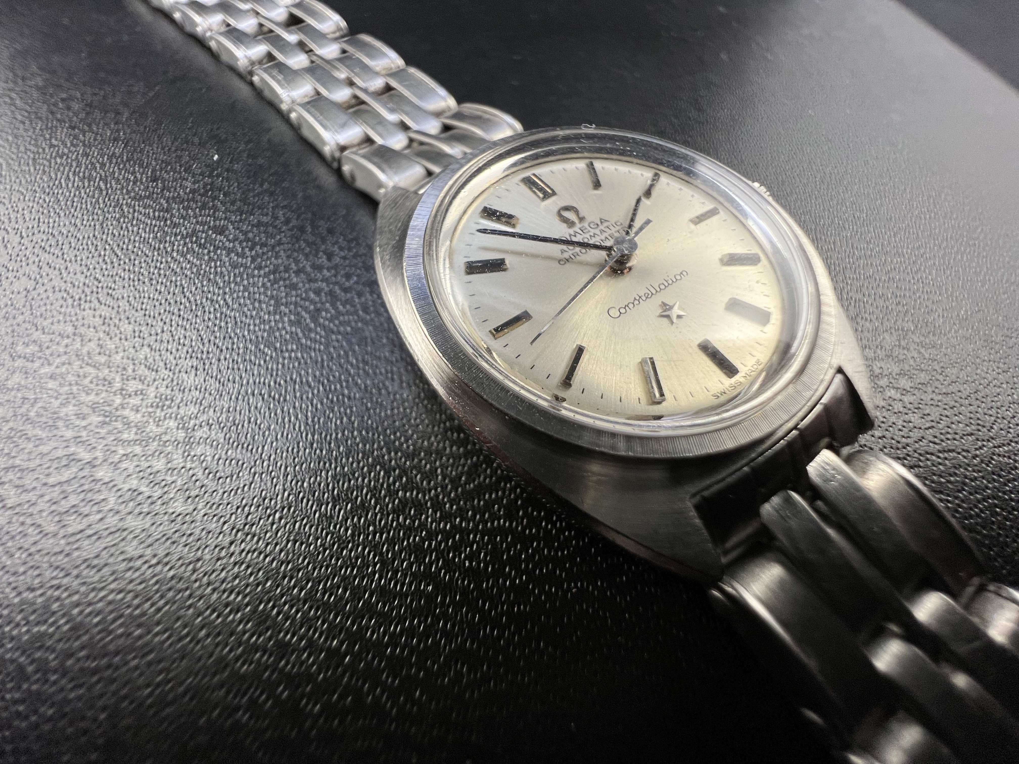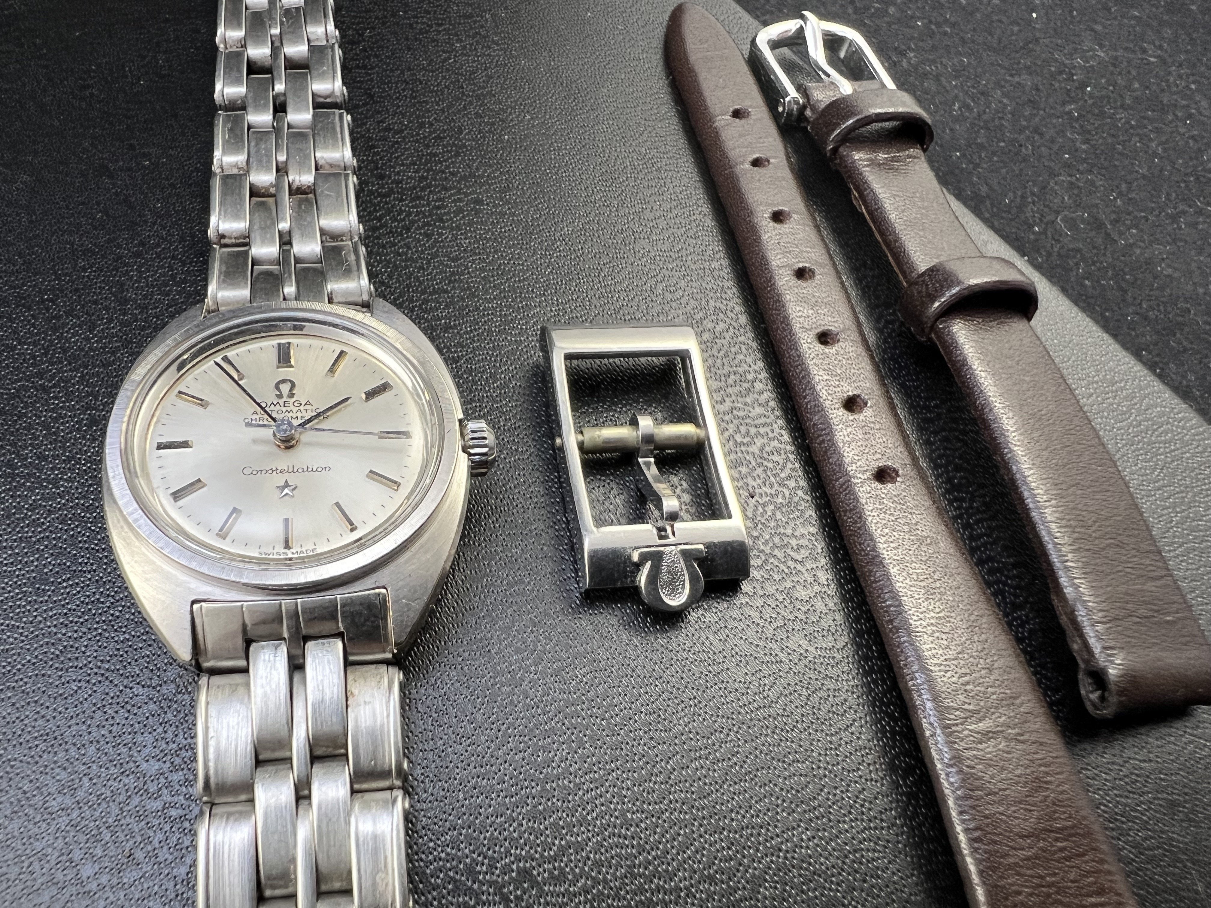 ·Beautiful watch, comes with the steel buckle and bracelet, and a leather strap in case the 16.5cm link to link steel one doesn't fit. The bracelet has flex links, so it theoretically could fit a 16,5cm+ wrist, but I think it's more suited at below 16cm wrists for a comfortable fit. Watch is also raw, only timegraphed, not serviced. Doesn't come with any guarantees.