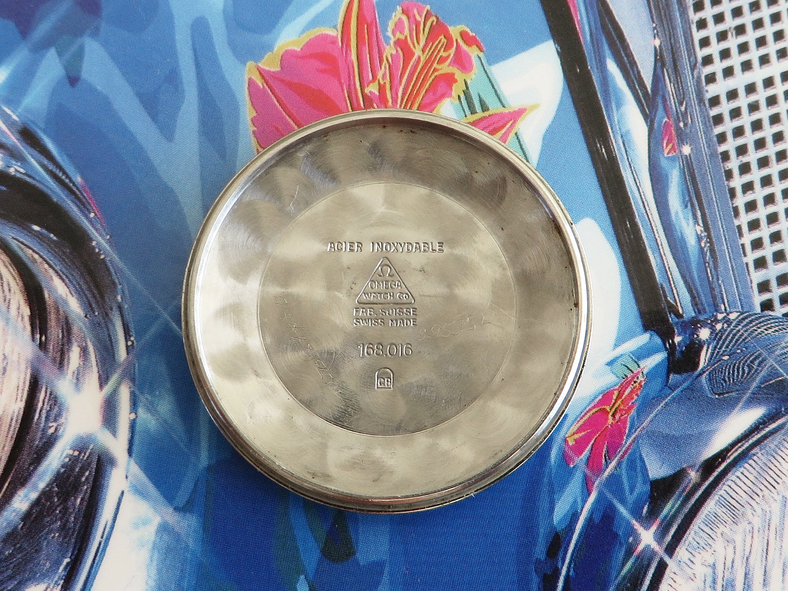 All stainless steel screw back case with straight lugs, signed crown and crisp observatory on the back. Appears to have been lightly polished or just gently worn but still excellent.