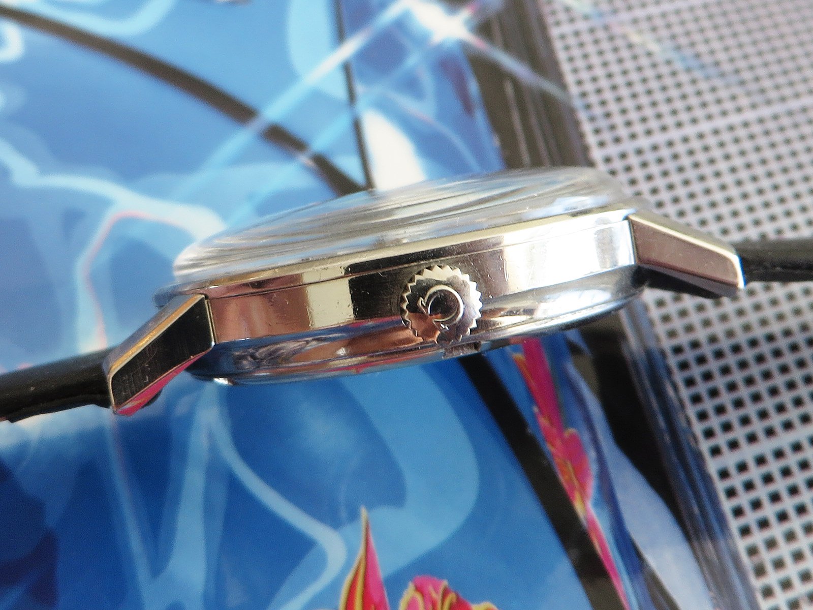 ··Vintage Omega AficionadoExcellent original lightly brushed silver dial with applied black accented bar figures, Omega symbol, script and star with the much less common and more distinctive original black accented dauphin hands. These were usually fitted with stick hands.