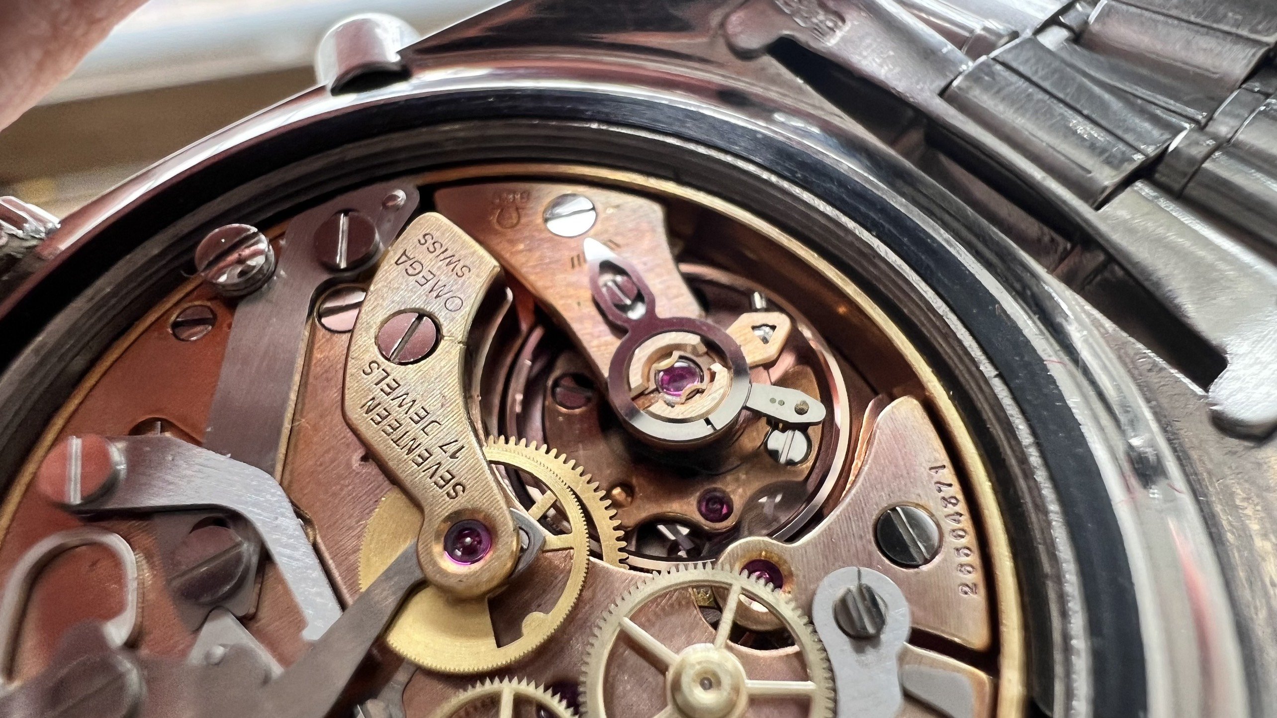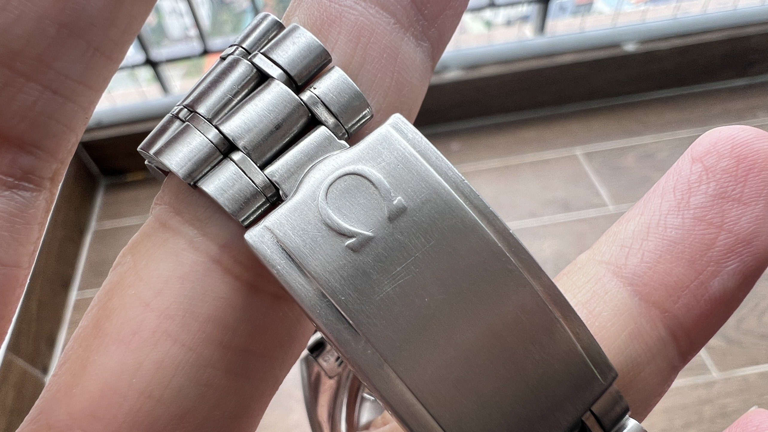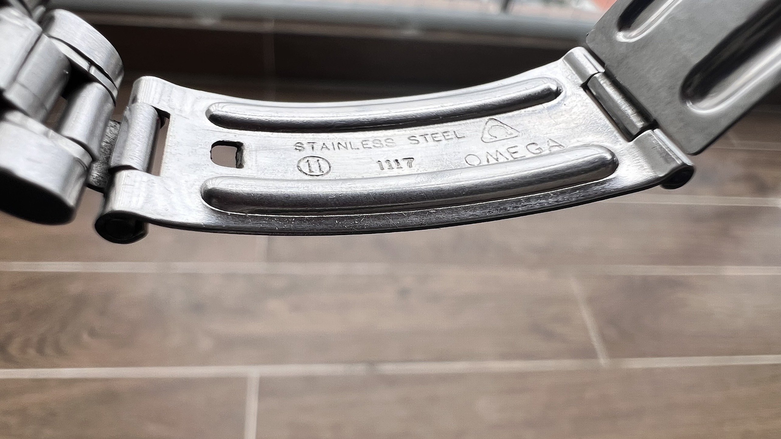 - Bracelet: The Omega bracelet No. 1117 with 549 end links. It fits my 7" wrist loosely, and there is still room available for micro-adjusting.