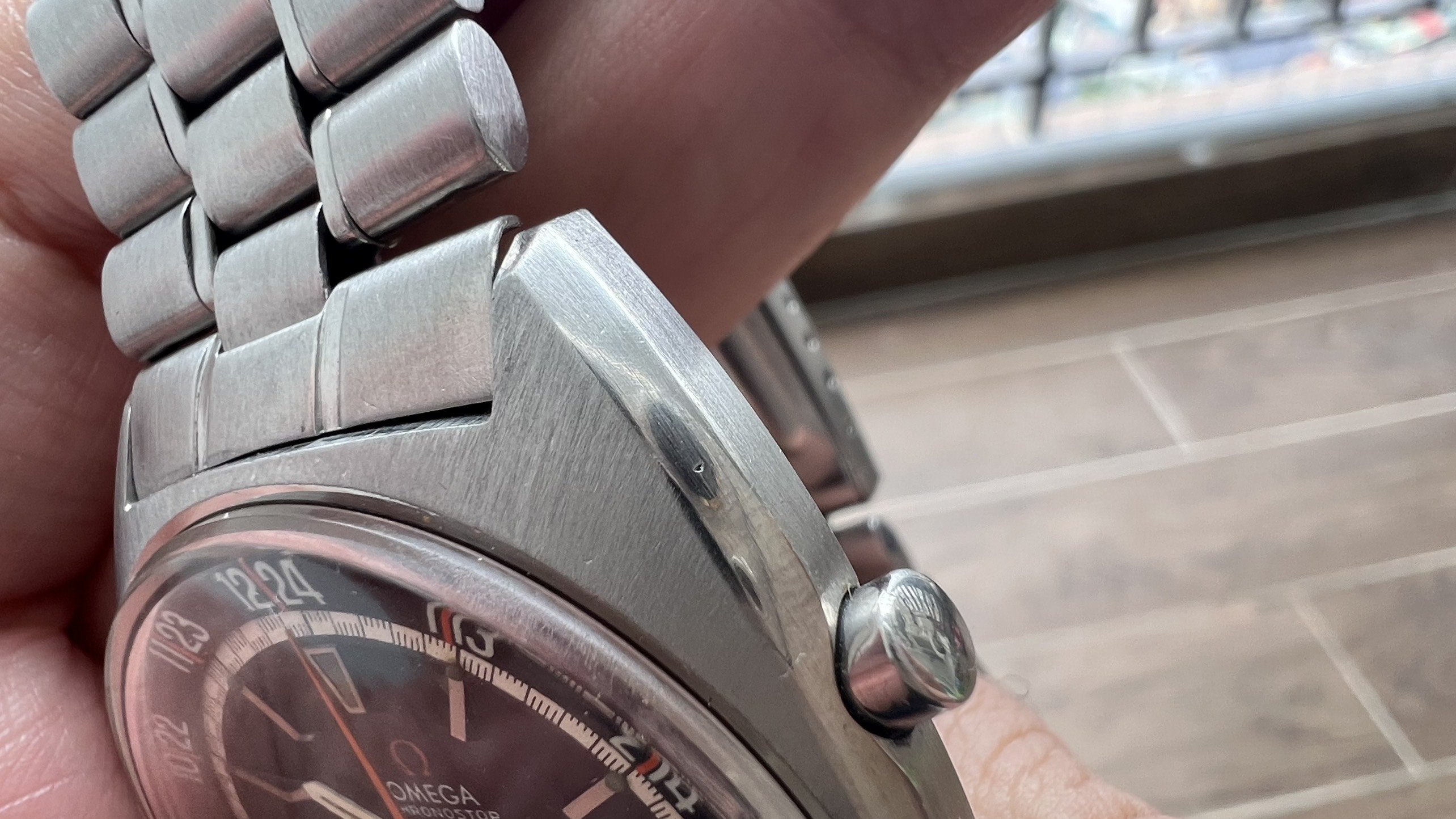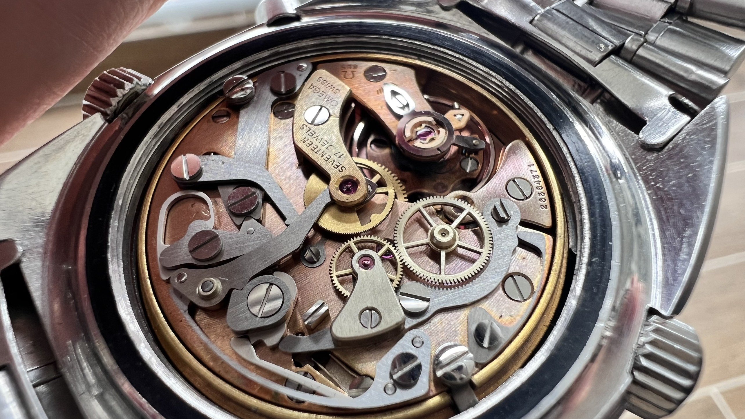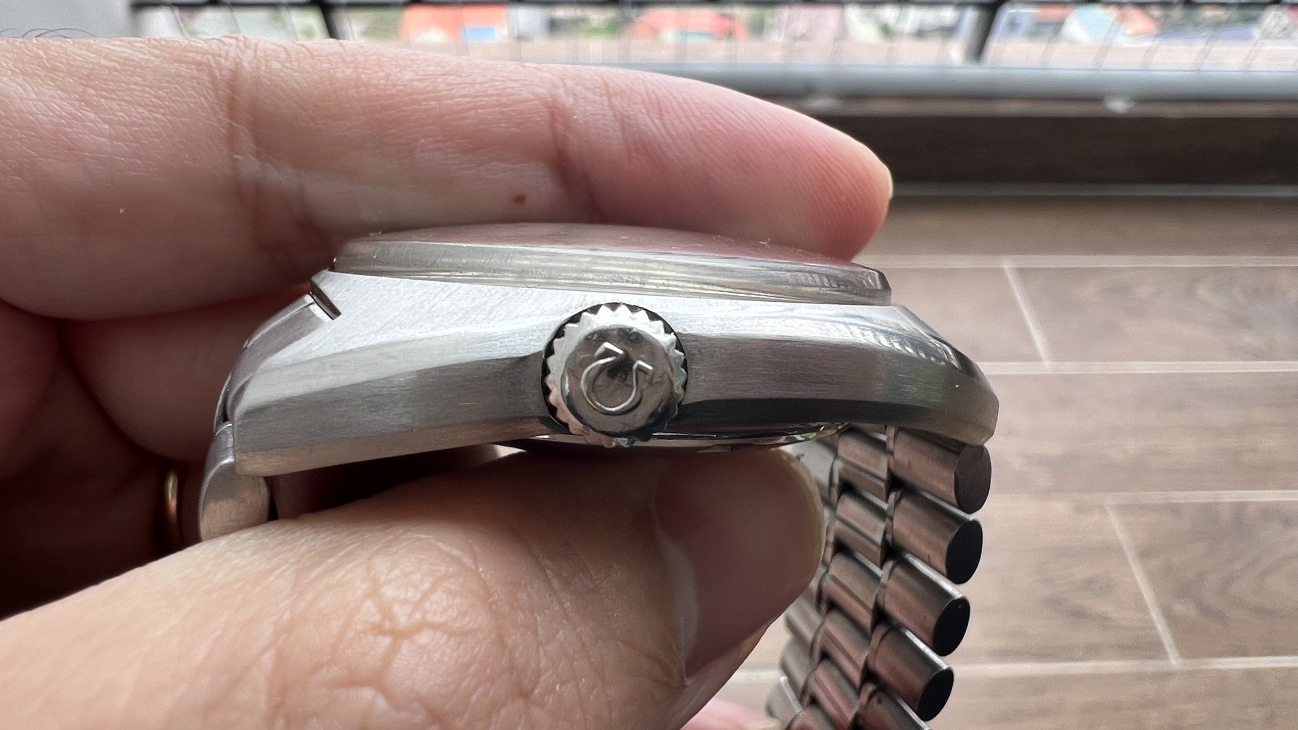 - Bracelet: The Omega bracelet No. 1117 with 549 end links. It fits my 7" wrist loosely, and there is still room available for micro-adjusting.