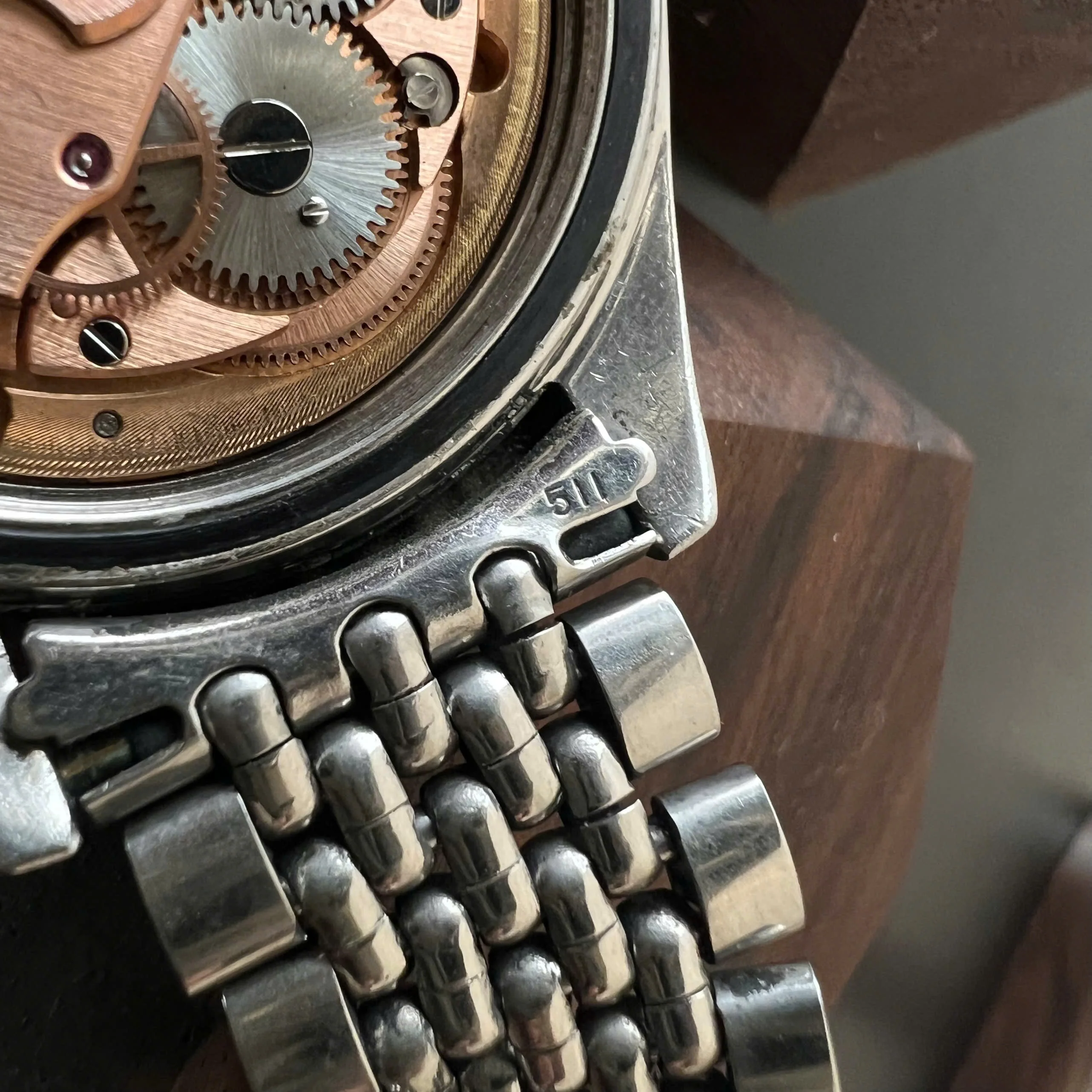 Dial: Original dial in great condition, with maybe some minor aging spots visible under a microscope but invisible to the naked eye. The dial is silver color with sunburst effect. Prints, hands, and hour markers are all good.
