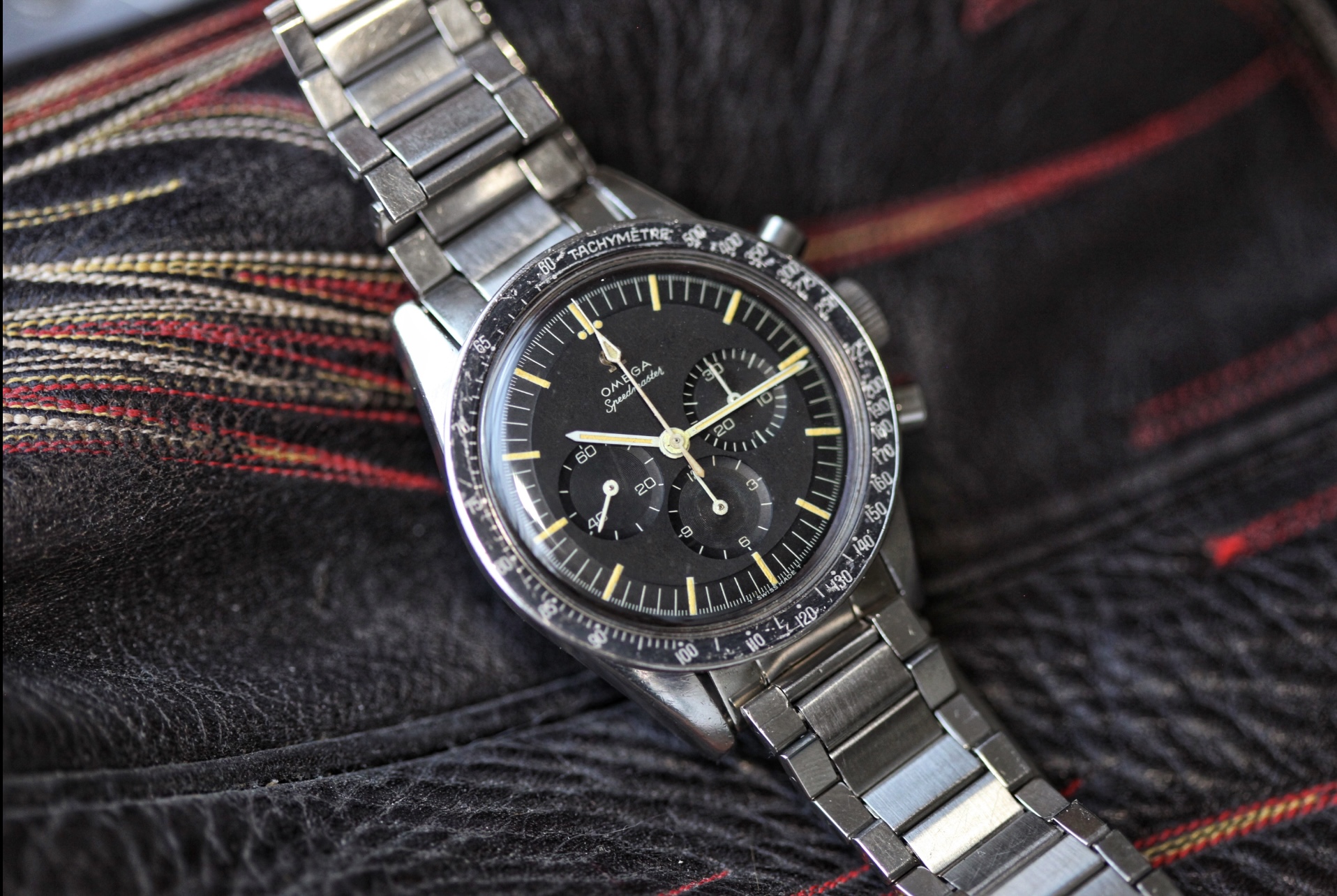 The dial is in very good condition though the lume plots were relumed by Mr. Freese. The hands have also been relumed with the exception of the drop chrono hand which is a NOS replacement with its original tritium still intact. The hour and minute hands had some paint loss at the centre which was repainted by Mr. Freese. The small chrono hands also seem to have been repainted at some point but this was done prior to my ownership.