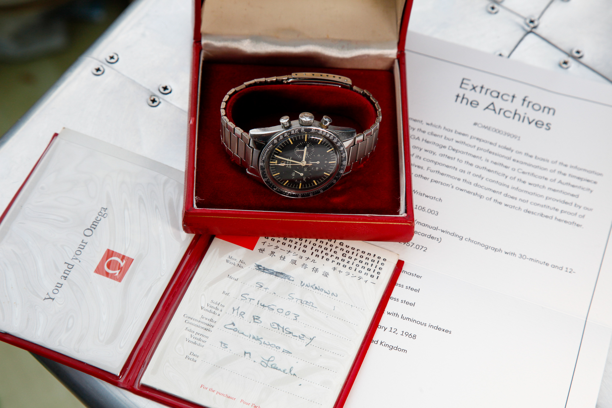 These papers came with the watch when it was purchased. Unfortunately the original salesperson did not complete the movement number nor the date. Interestingly it does refer to the watch as a 145.003 which is the correct reference number as Omega switched to the Mapics system in mid 1967 though the case reference remained the same.
