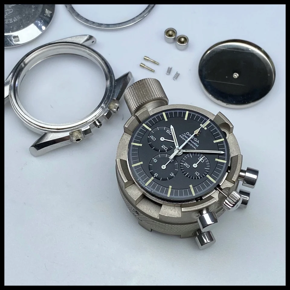 , so I've decided its time to part with a watch in my collection and continue on with the project to completion with no regrets. I'm offering up this little beauty, which I acquired many years ago here in Las Vegas from an older gentlemen, it was an honest watch that had some easily addressed minor "issues" (wrong crown, hesalite was a goner, and chrono hand was off), thankfully, I had a period correct crown, and I sent the watch to Adam Lewis over at Lewis Watch Co, and he did a marvelous job servicing and gently restoring the watch, as you can see in these pictures, some of the pics are from Adam during service. The dial was in fantastic condition, the case was quite good. That was in November 2020. It's sat in my watch box since that time, I've probably worn it once or twice in the last 4 years.