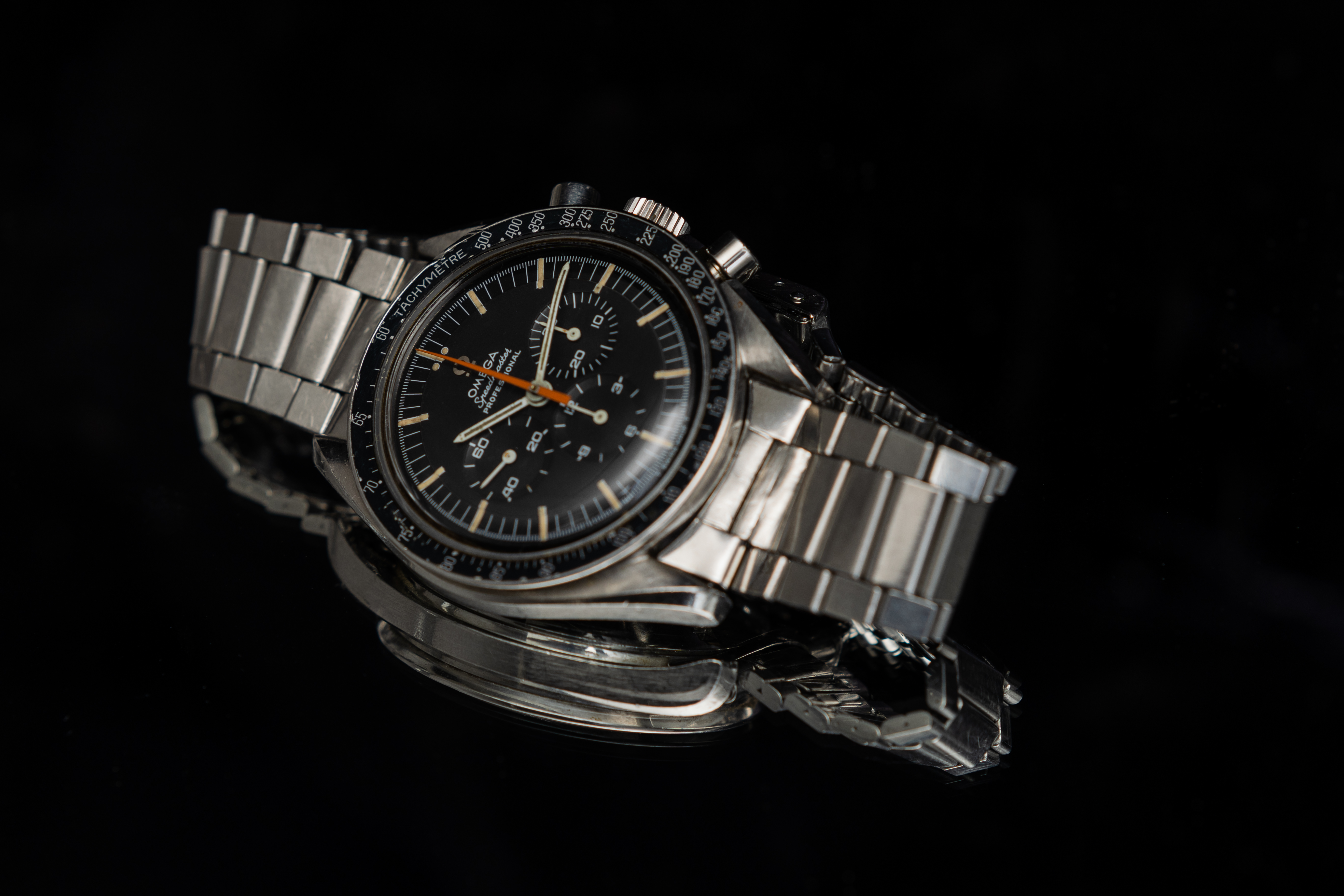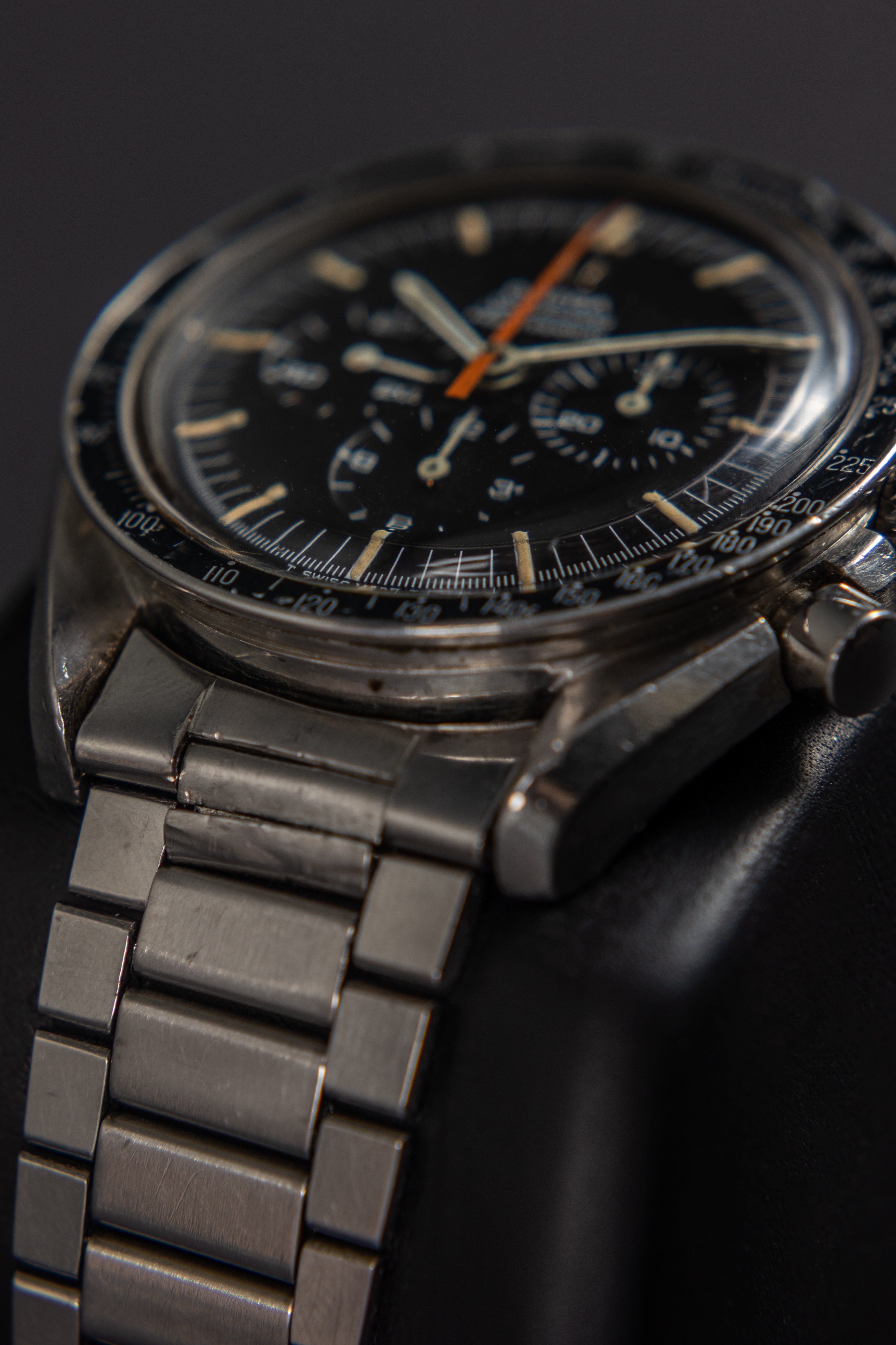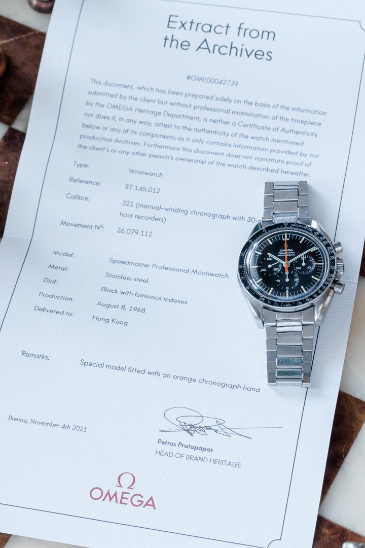 ·For sale or trade is this single owner Omega Speedmaster Ultraman which I received from the original owner here in Newfoundland. The watch was purchased overseas in 1968 and handed down from father to son. I applied for the extract of the archives myself and it was delivered to me with the correct remark "special model fitted with orange chronograph hand". Everything checks out on this watch and the extract provides additional reassurance. This watch was in a drawer for many years and I had to clean the gunk from it when I received it from the owner. I am including a picture with the gunk still on the watch shortly after I received it (before giving it a light clean). Thankfully it ended up being in quite nice condition.