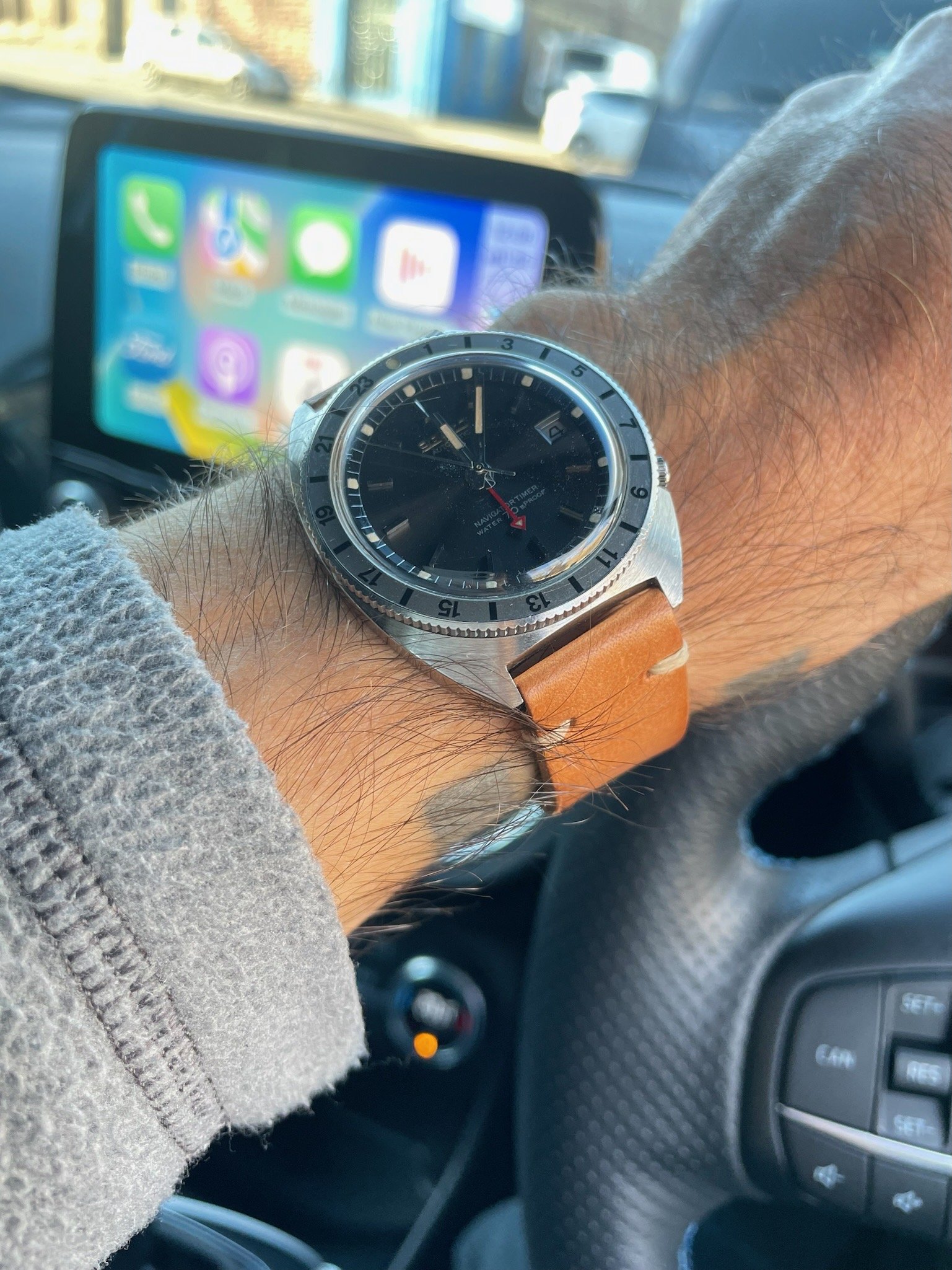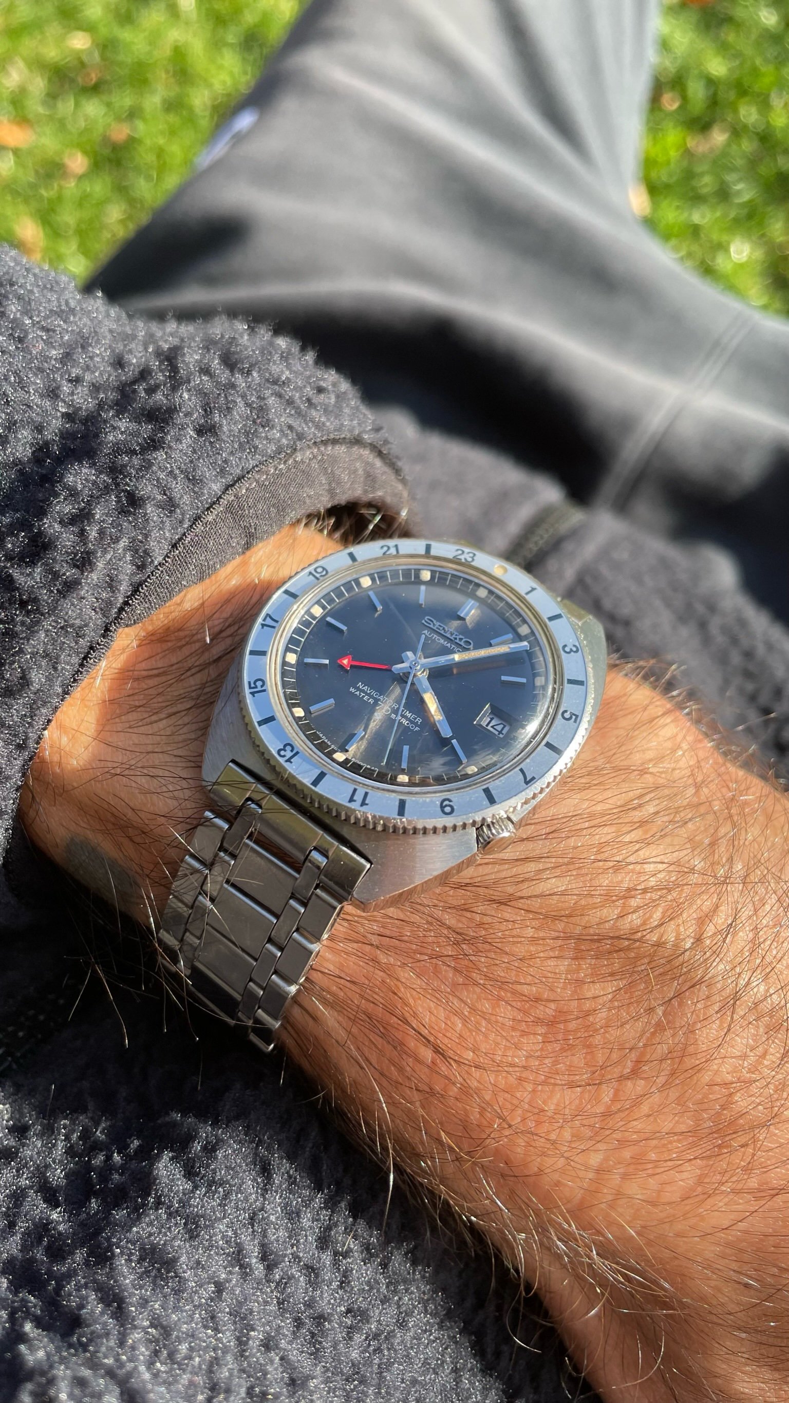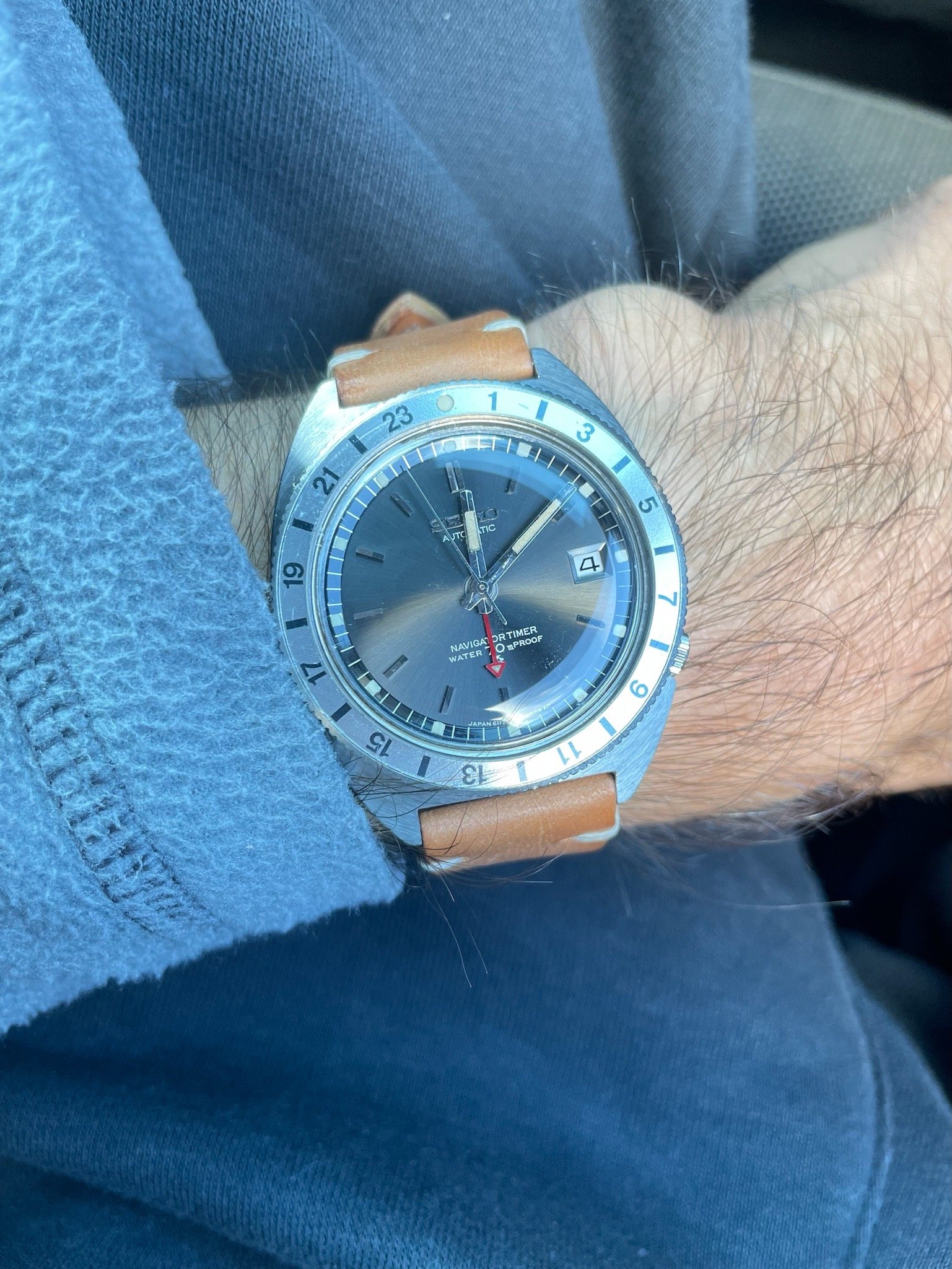 I purchased this watch from well known Seiko Watchmaker Guy Jeffrey around a year ago I think and it was serviced at the time. Needless to say it’s running perfectly with the crown operating exactly as it should. The bi directional friction bezel turns smoothly in both directions to adjust the time zone.