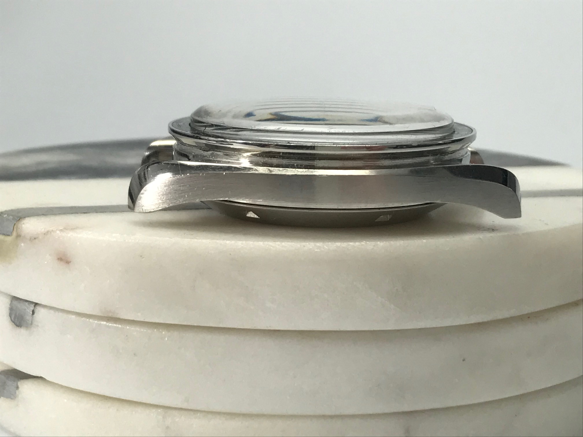 The step dial is also in excellent condition and the lume has a mild yellow-greenish hue, which I believe is quite common for these. Original hesalite crystal has the omega logo in the center.