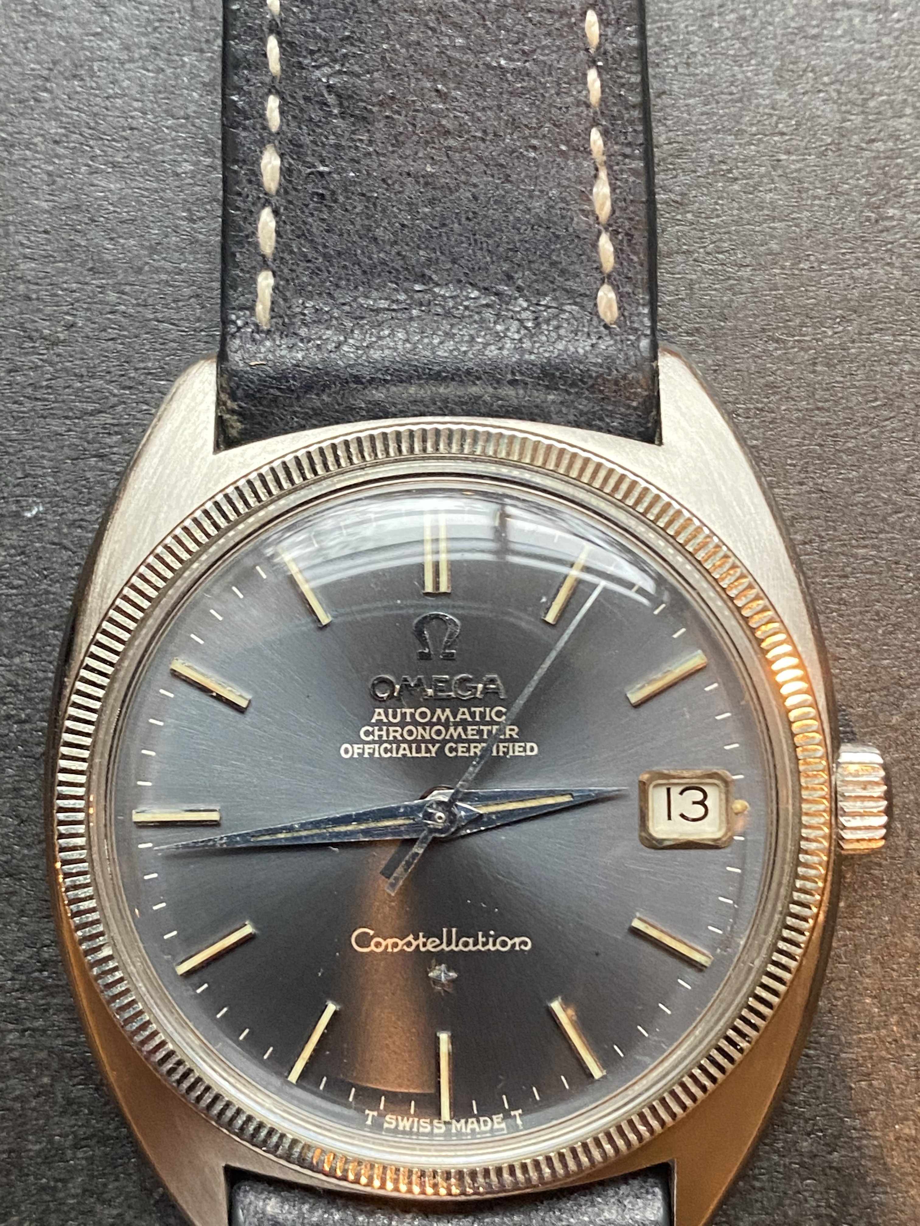 路Hey! This is my first Omega watch I have acquired and I am new to this forum. The watch I have is a reference 168.027 Omega Constellation Grey Dial with a White Gold Bezel from 1969. I love the look of this watch and have worn it almost every day since owning it for about 2 weeks. I was curious to think what everyone on here would think of the watch and if it is authentic or a Frankenwatch. Also, the watch had run very well and kept great time until the date change between the 11th and 12th of the month and then between the 12th and 13th when it decided to just stop working at around 9:00pm on both days while running well on my wrist for the whole day beforehand. I decided to adjust the time to feel the date change and it would work well except for between around 10:30 pm and 3 am between a few dates. Wondering what may have caused this discrepancy and also just wanting to get general feedback on the watch and it鈥檚 authenticity. I will include pictures of the watch below and it鈥檚 original brick bracelet (as it is currently on a very nice hodinkee leather strap). Thank you!