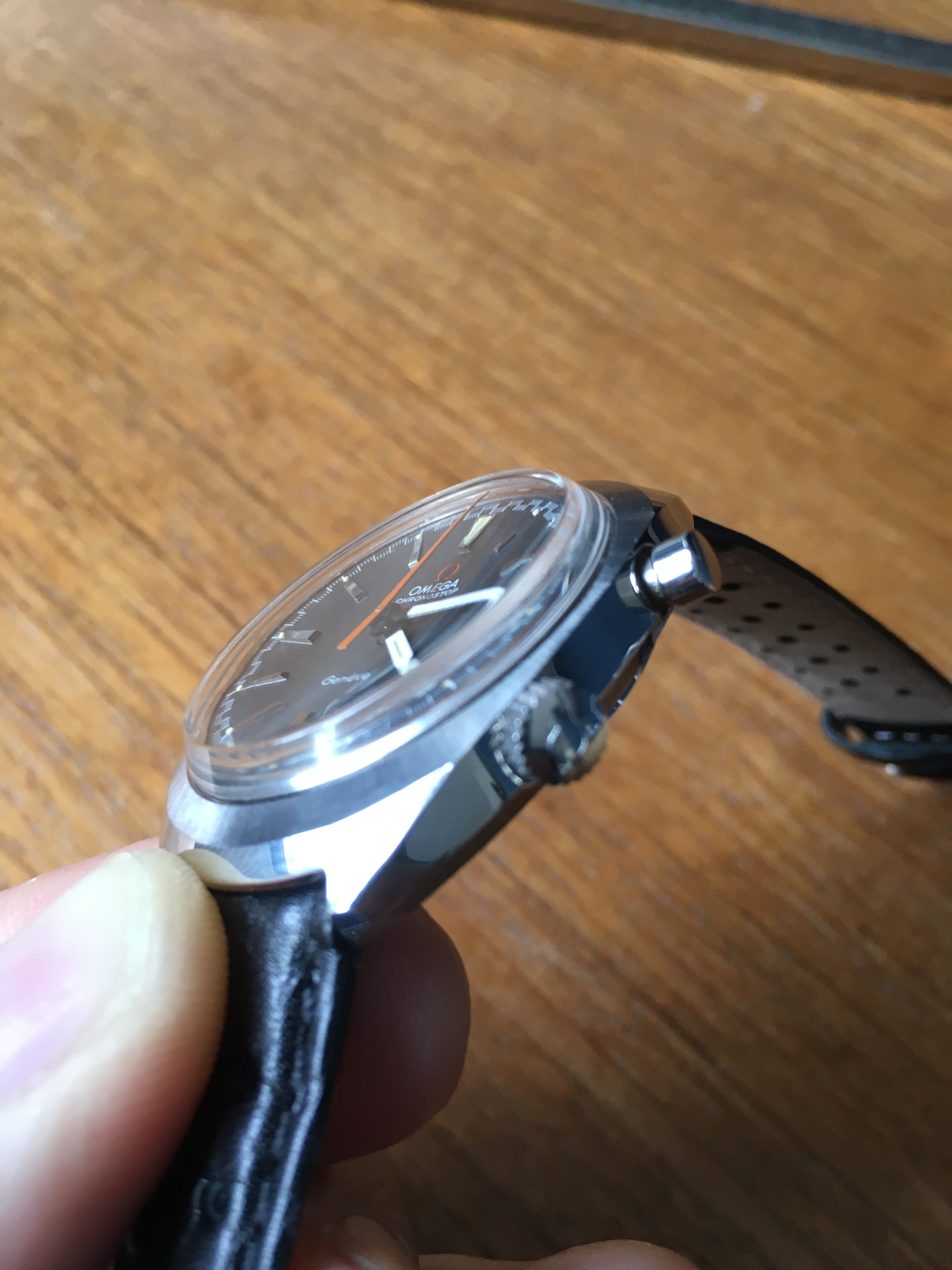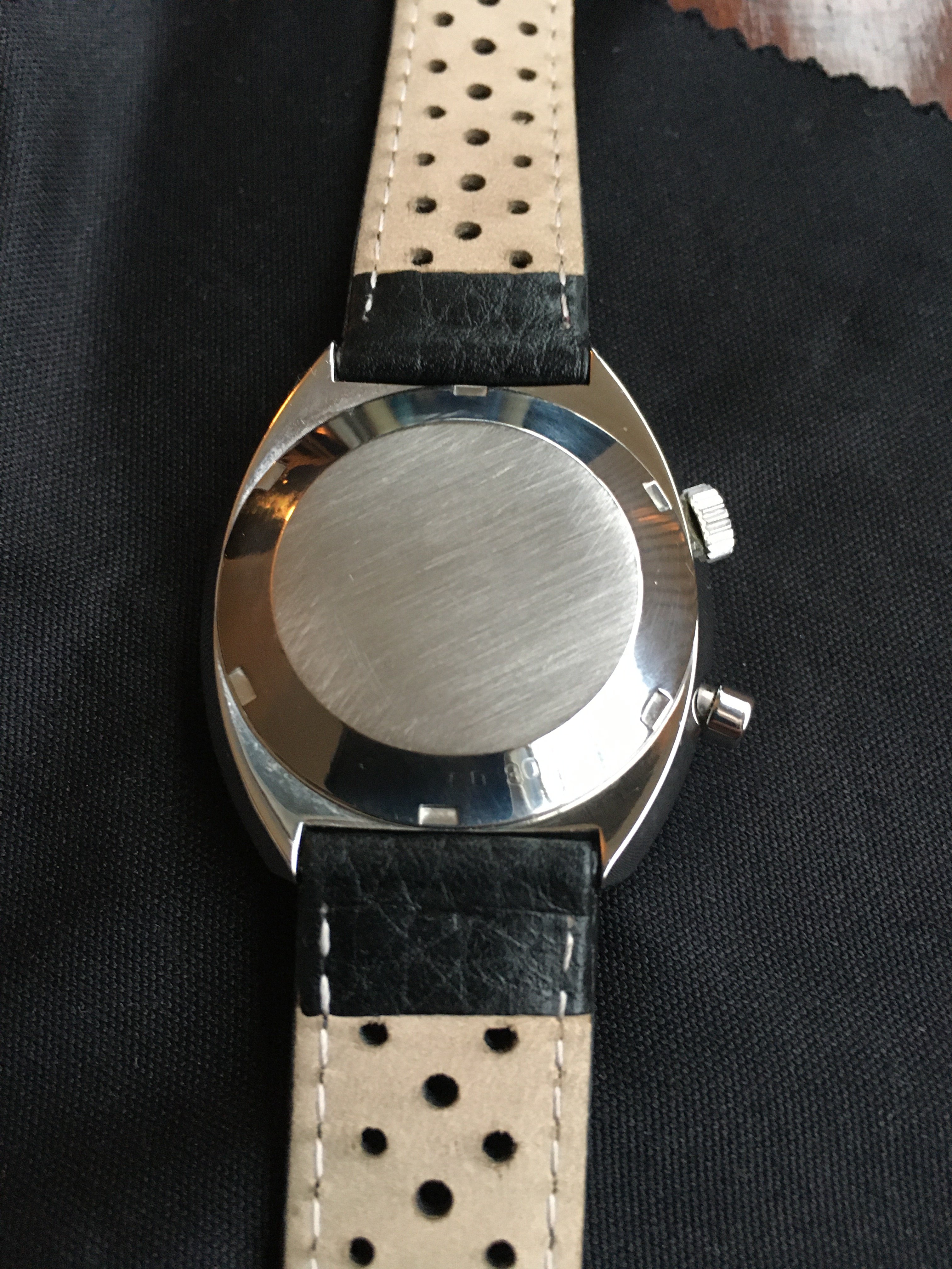 Although it doesn’t have its original bracelet or papers etc, I am very pleased with it. The condition is better than I could have hoped. It has had a few marks lightly removed from the polished case sides, and a previous owner had refinished the back case, making the waterproof etching quite faint, but I was told all this pre purchase. The edges of the case are sharp, the etched crystal is in nice condition, and it has the original brushed finish (as far as I can tell)