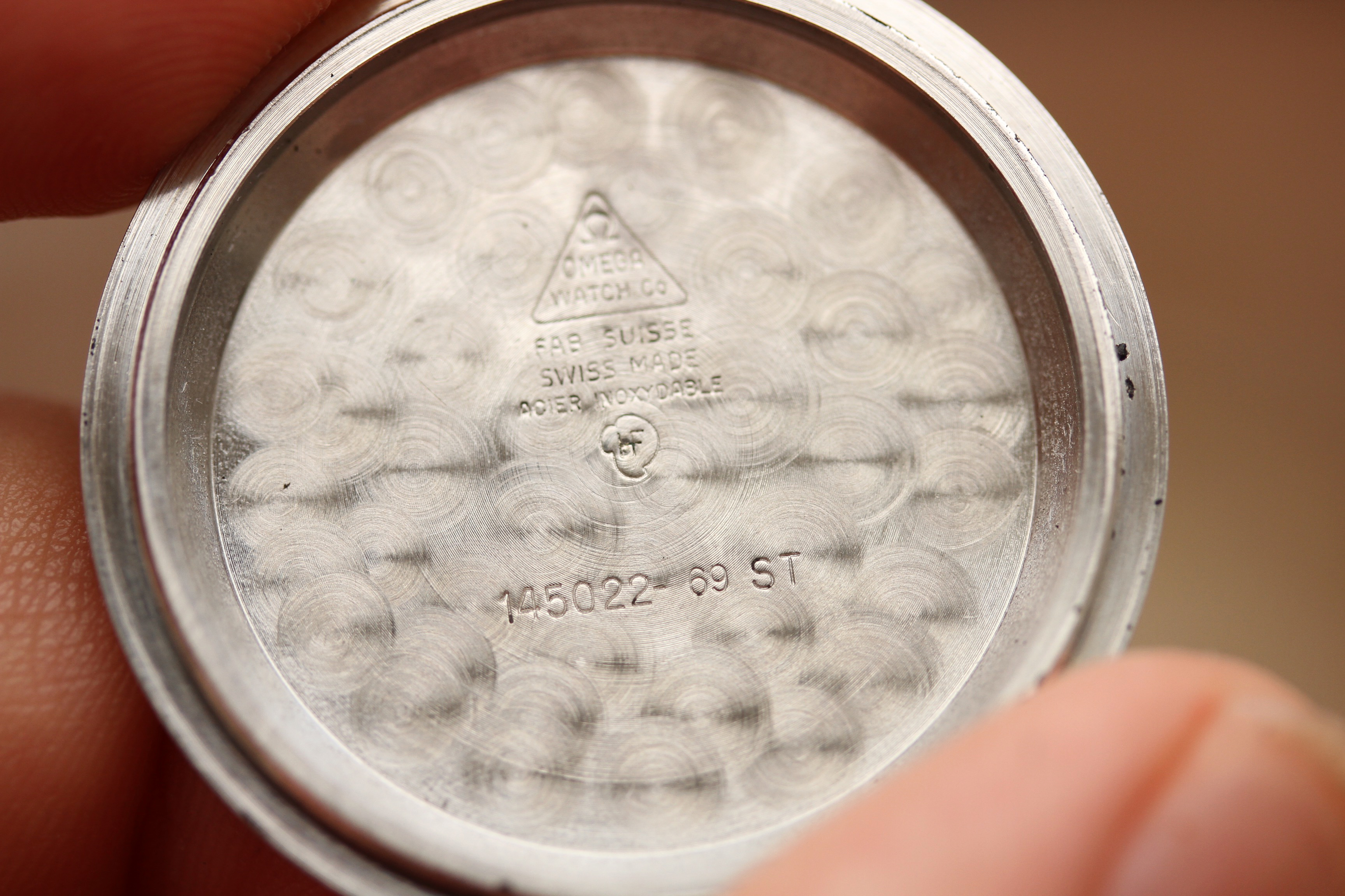 Caseback is in excellent condition. Few scratches around lock, but the logo is very crisp and still has original circular finish. Inside is correctly stamped 145.022-69
