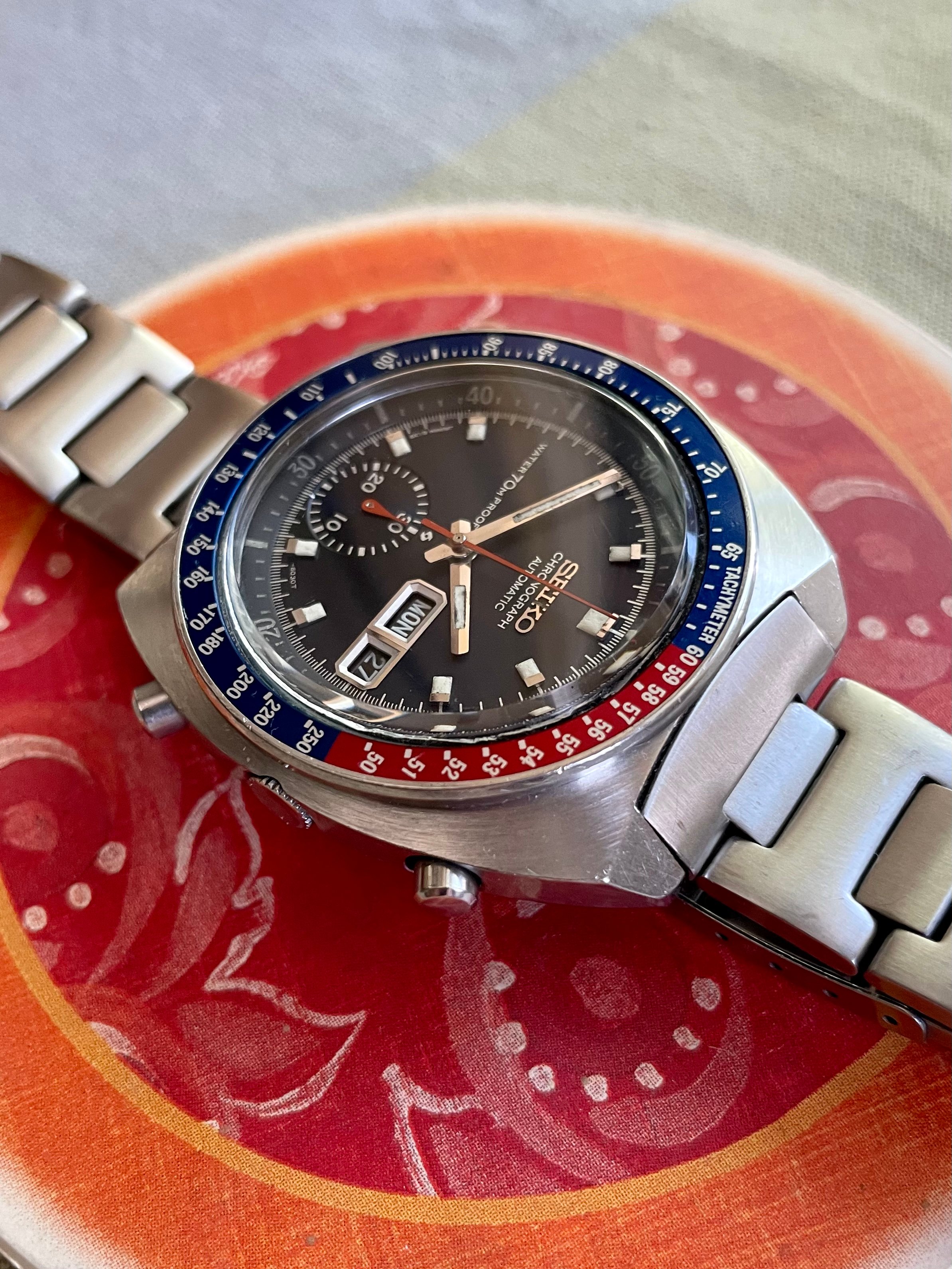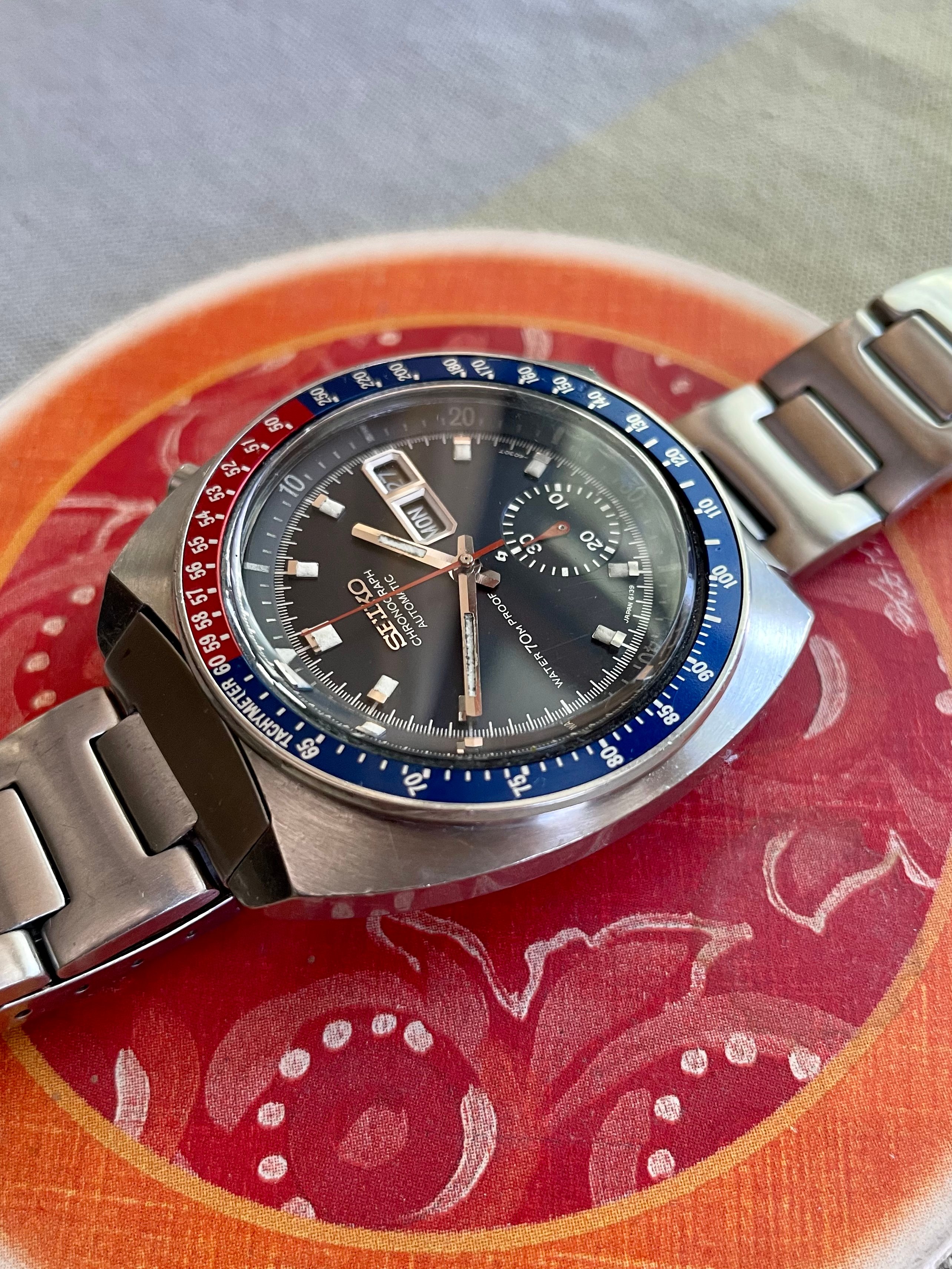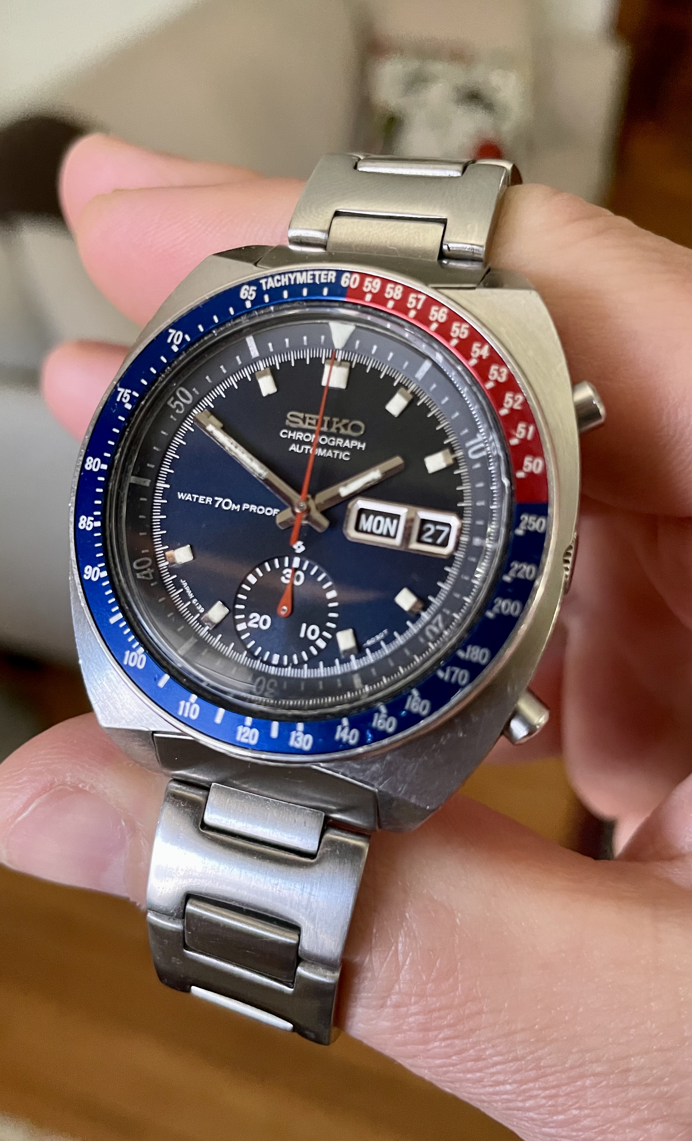 For sale today is my 1969 Seiko 6139-6000. It’s an early and rare example of what’s now referred to as a Blue “Pogue” (I use those quote marks liberally) 😀 These are often put together with fake/cobbled together parts, but this one is (with the exception of the crystal), and to the best of my knowledge, entirely original. I purchased this watch from Hub City Vintage and it was serviced by them. Here’s the link: https://www.hubcityvintage.com/arch...9-6000-automatic-chronograph-blue-pogue-proof
