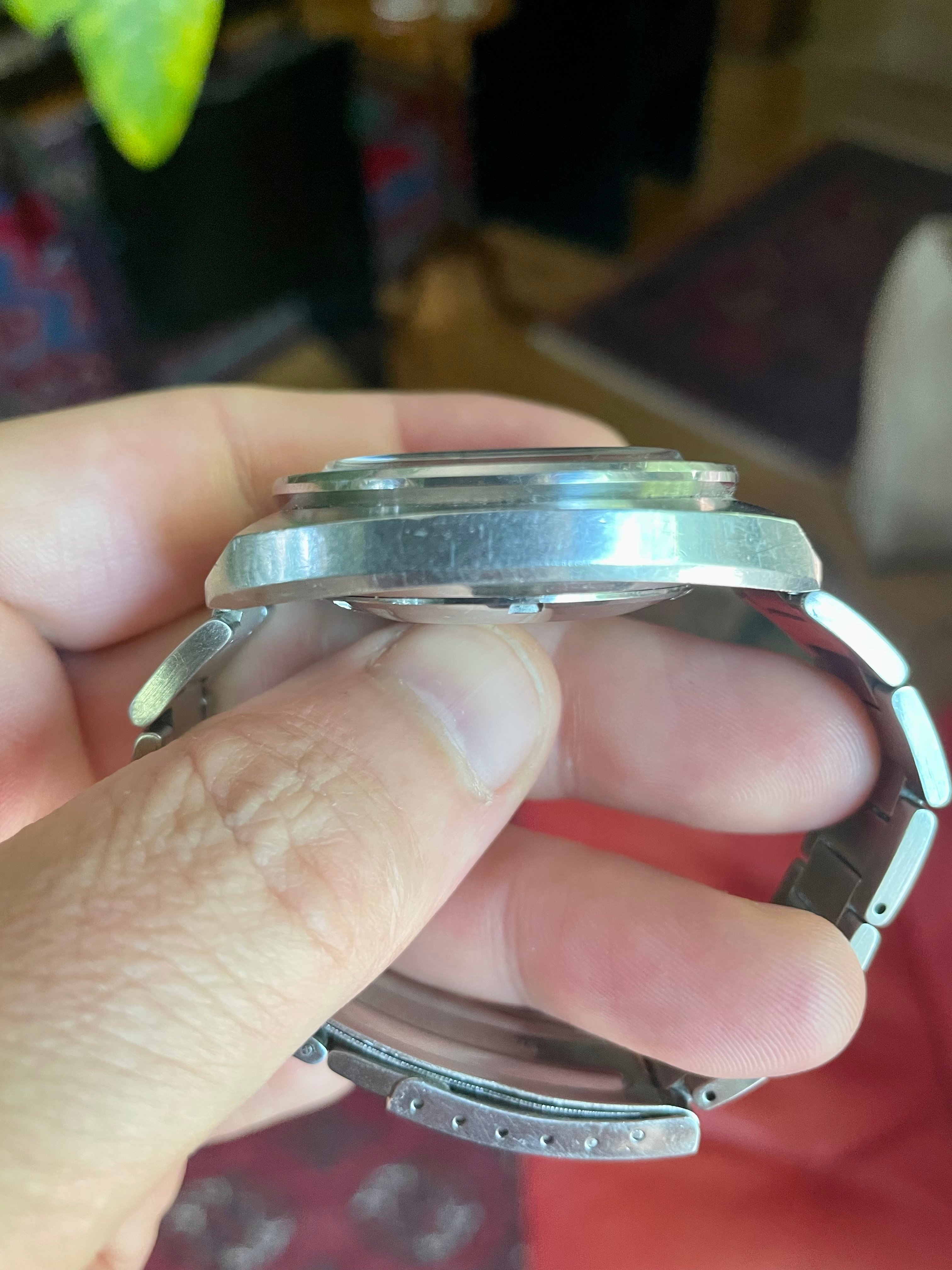 The bezel shows some minor signs of wear, but it’s retained it’s original coloring and is, I stress again, original to the watch. The same can be said of the inner bezel (though it shows a little more oxidation).