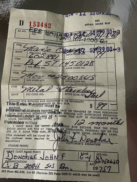 My parents neighbor was over and said “you know, I have an Omega I bought for $99 in 1969… I have all the paperwork, maybe Mike can help me with it”…