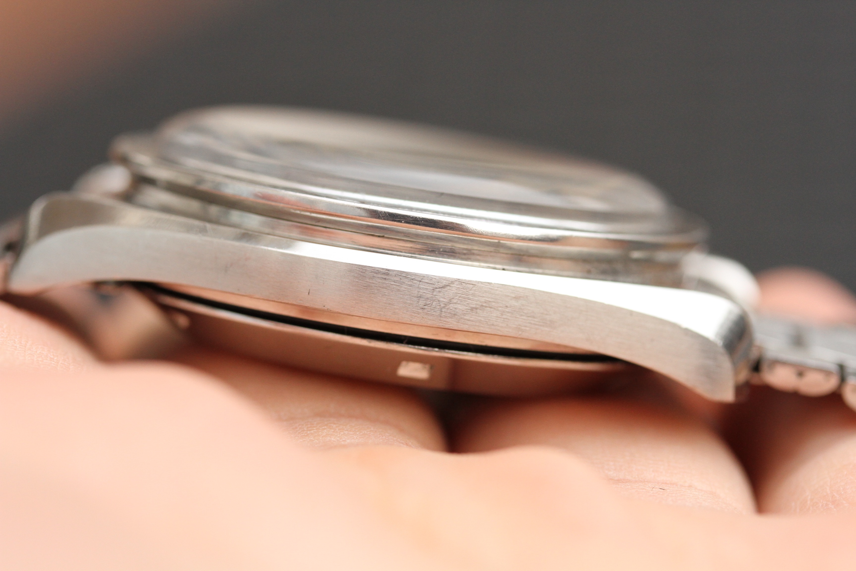 Excellent vintage condition case is free or any major dings or dents. The case shows signs of past polishing, but the edges are very defined and crisp. No corrosion or pitting. Appears to have original finish.