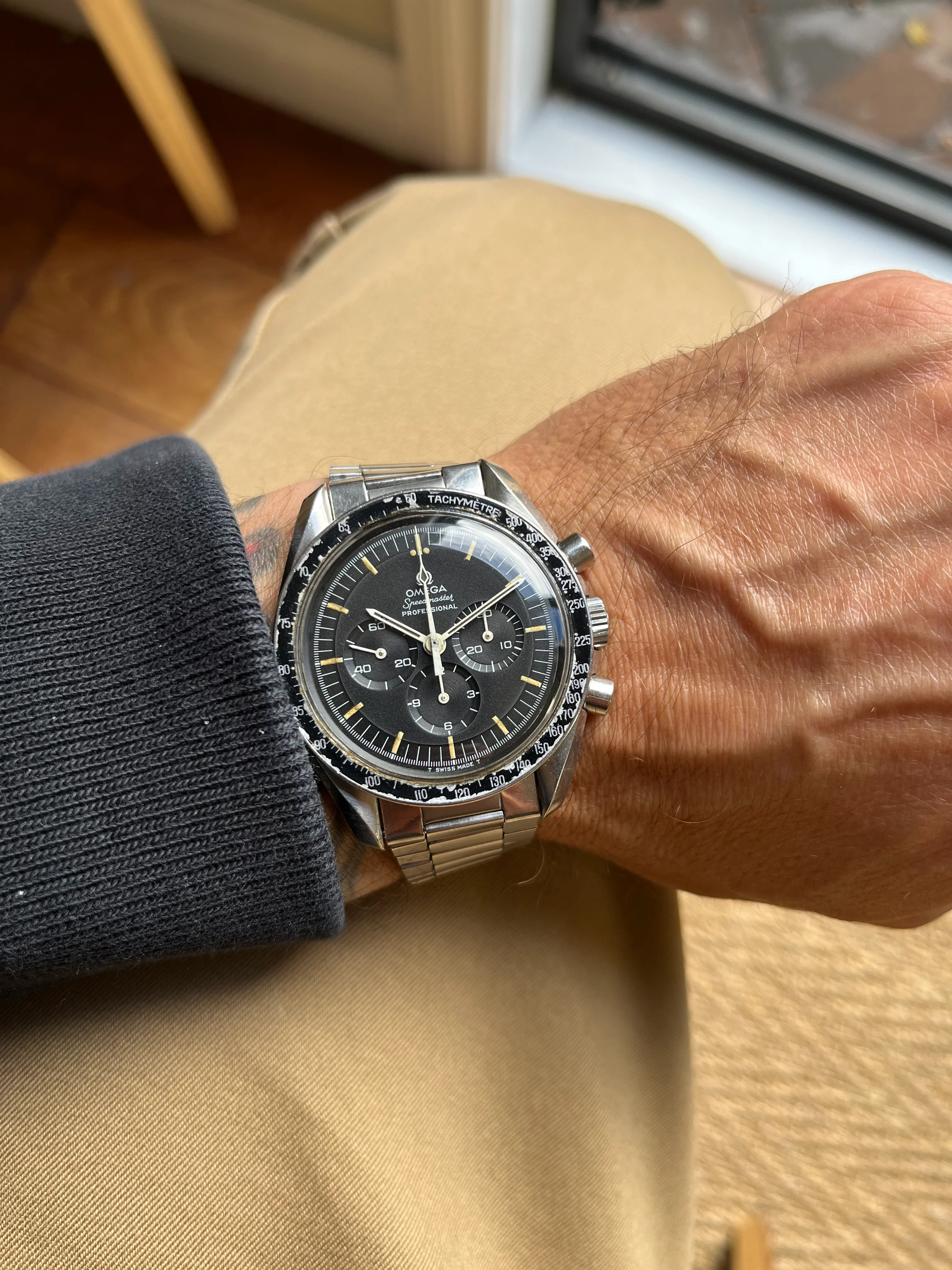 -I bought this watch from a prominent UK collector who has a reputation for finding fantastic one owner Speedmasters and having them serviced by a well-known watchmaker prior to sale. The story behind this particular watch is that the original owner bought it for himself after his tour of duty to celebrate having survived Vietnam.