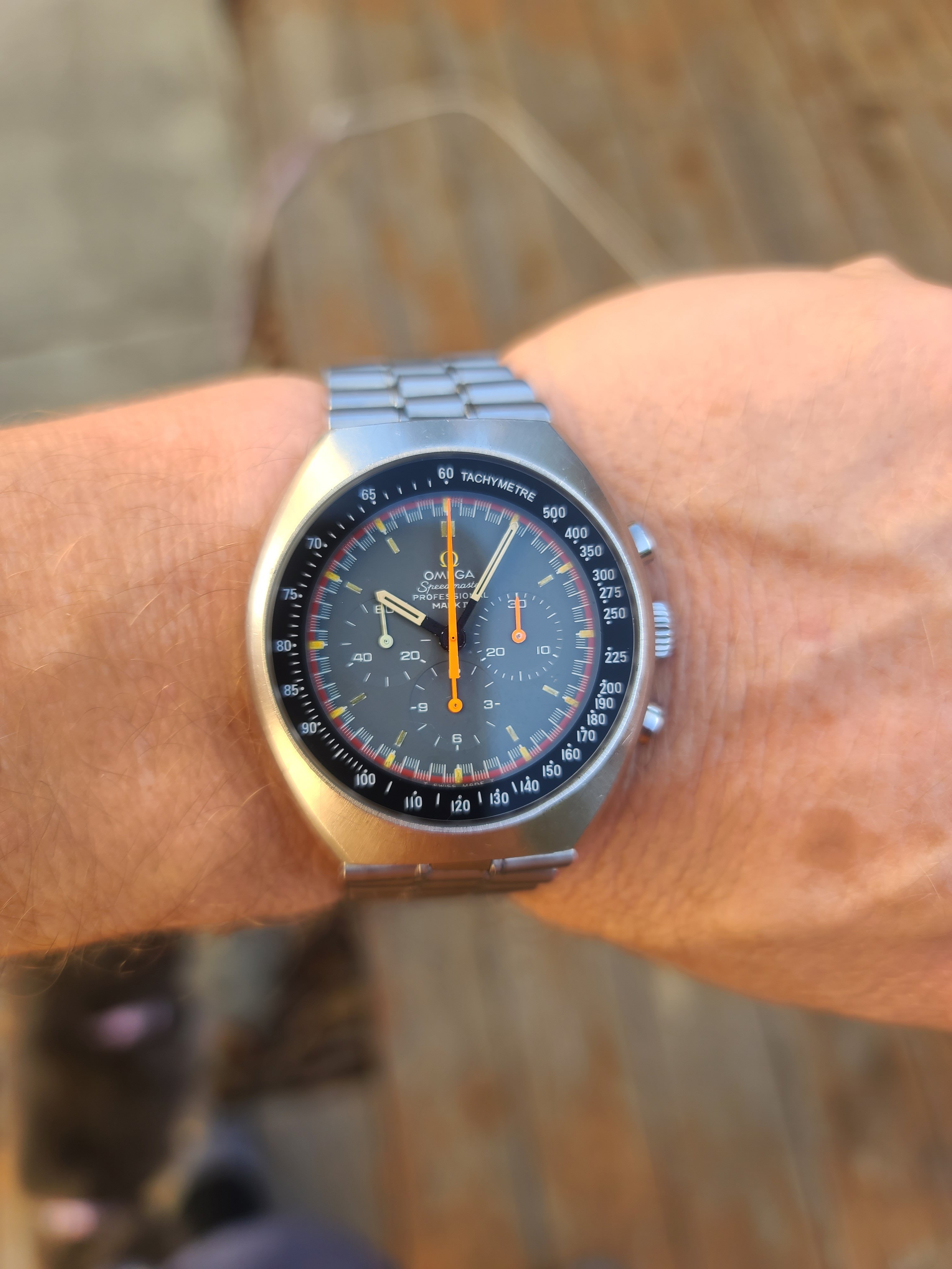 ·I already had a plain MK II from 1969 but i always wanted the mkii with the racing dial. This is my 30th vintage omega and i have to say, one of my favorites. It is in excellent shape with normal wear but nothing major. The amazing thing about this,watch is the movement. I have had it for 4 days and it has been running non stop while wearing it and it has been spot on accurate and did not gain or lost even a second. I had actually never seen than in a mechanical movement, especially one that is 53 years old. This is a testament to the durability of omega movements.