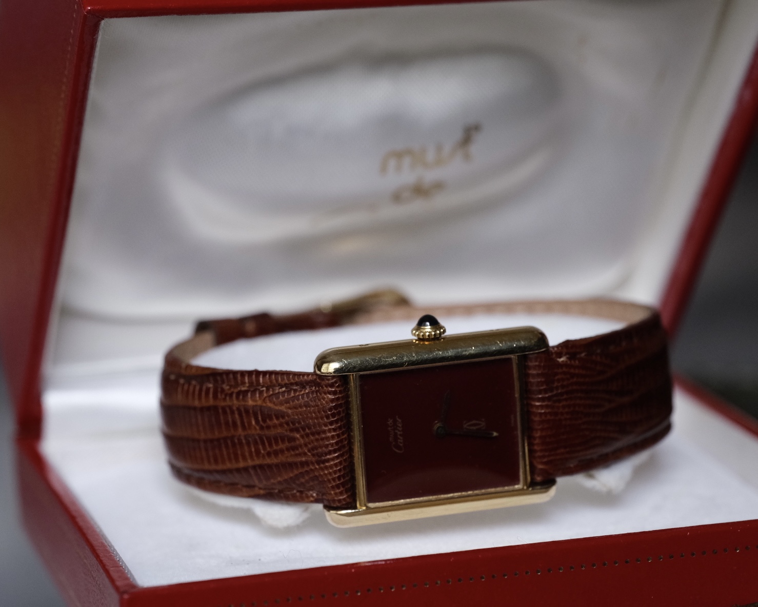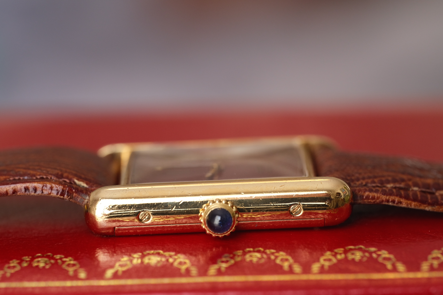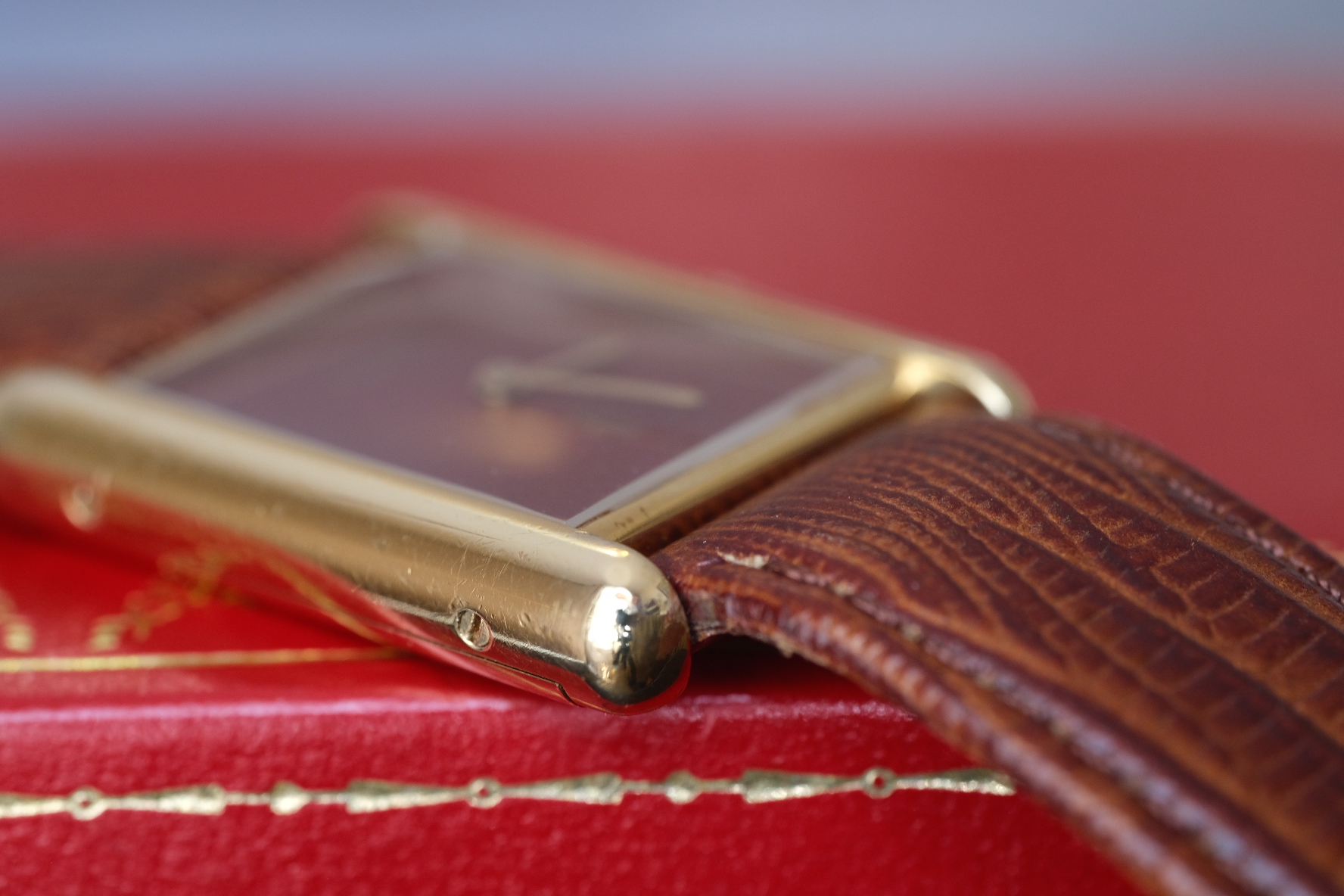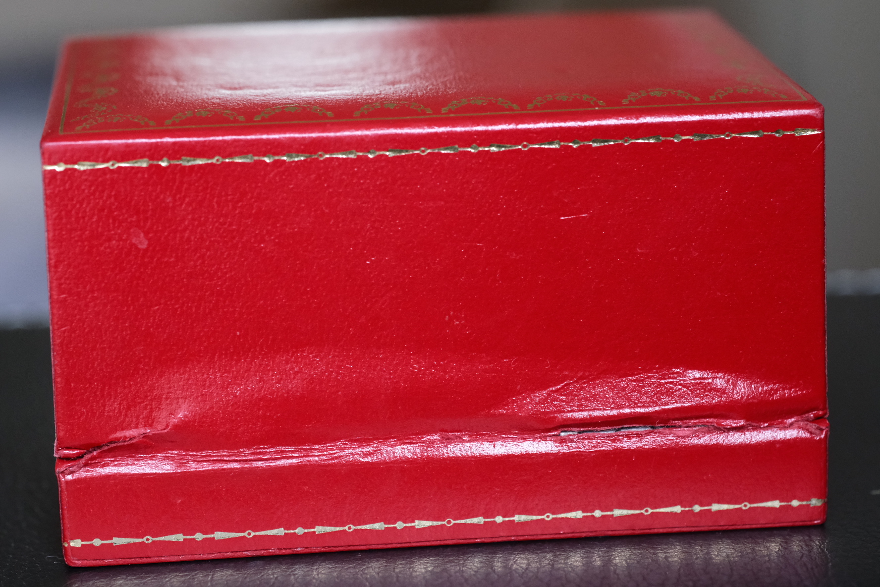 ACCESSORIES: Watch comes with a period correct Cartier box. As can be seen the hinge at the back has damage, but still opens and closes and it’s great to have to complete the set, and for display/storage as well.