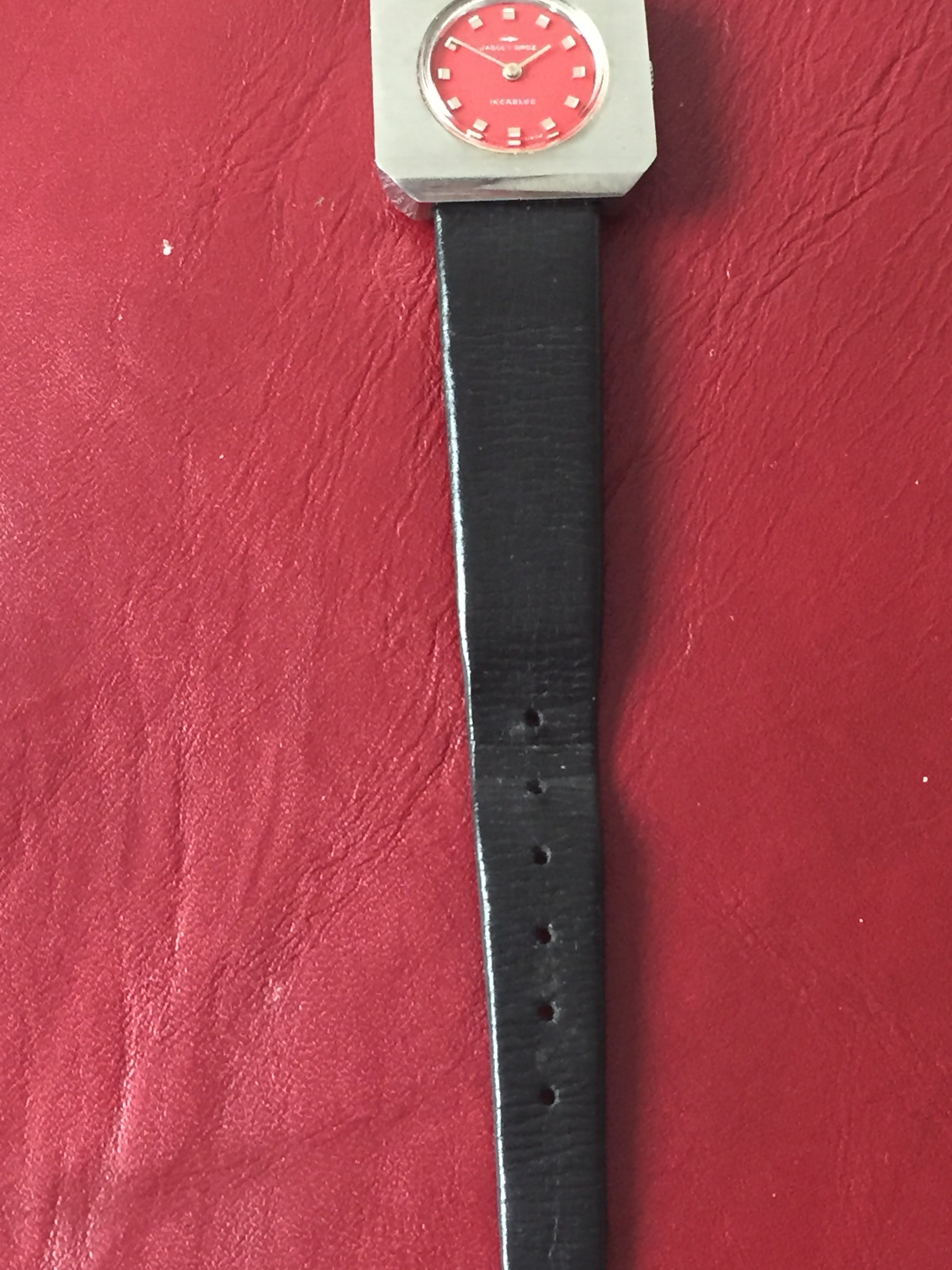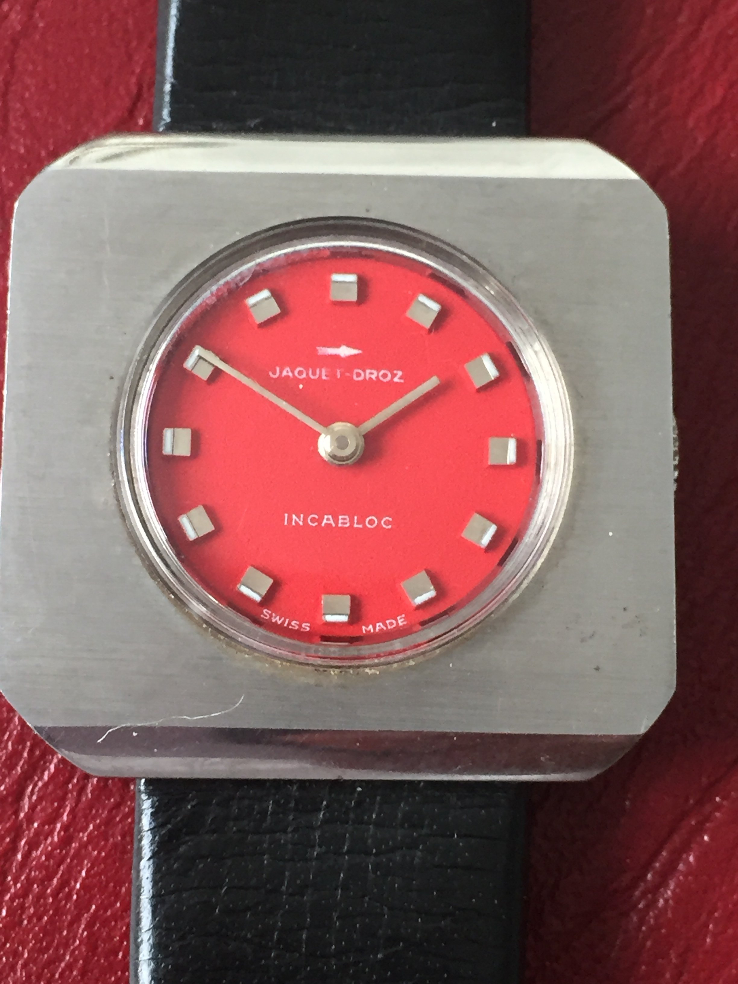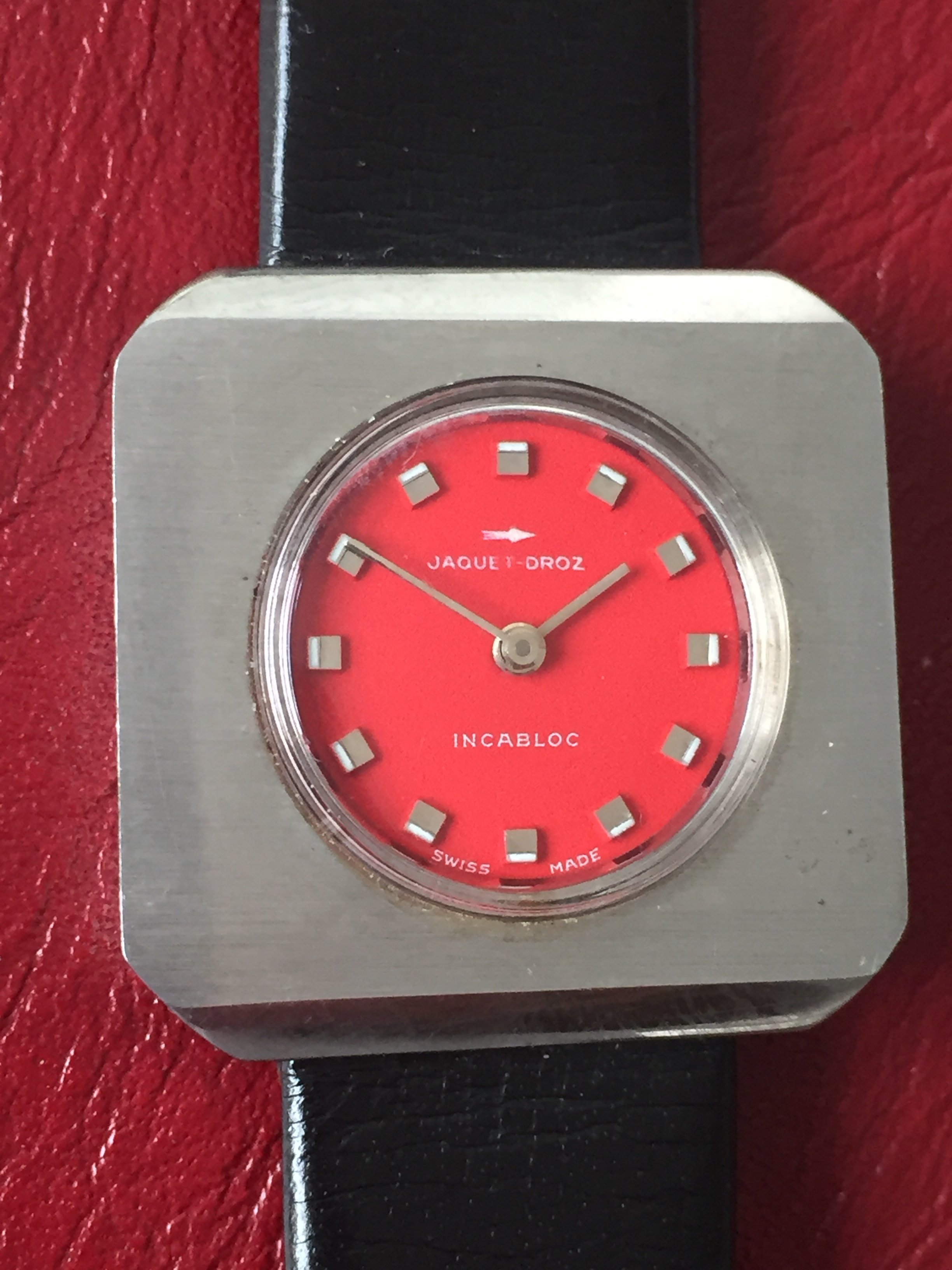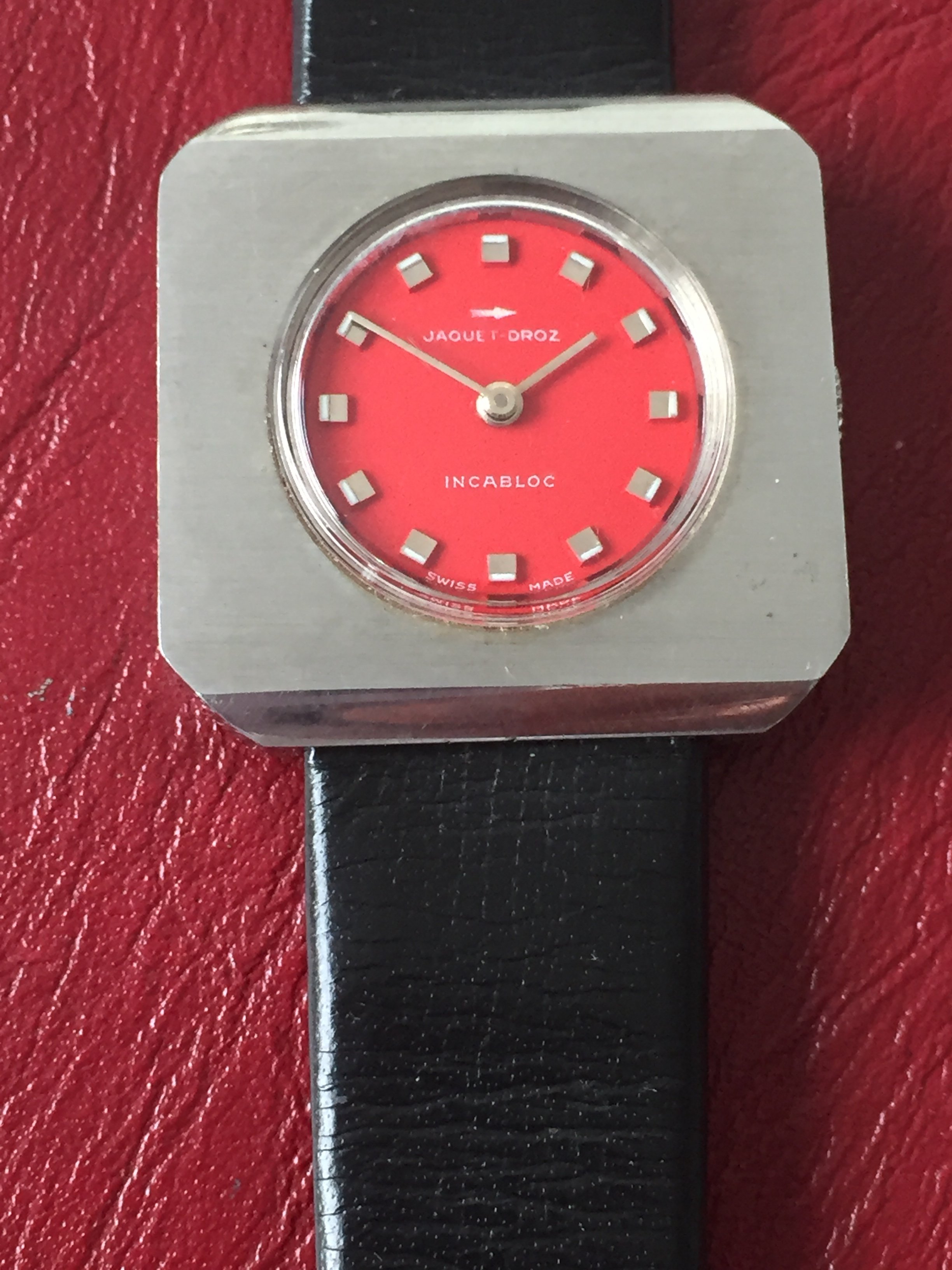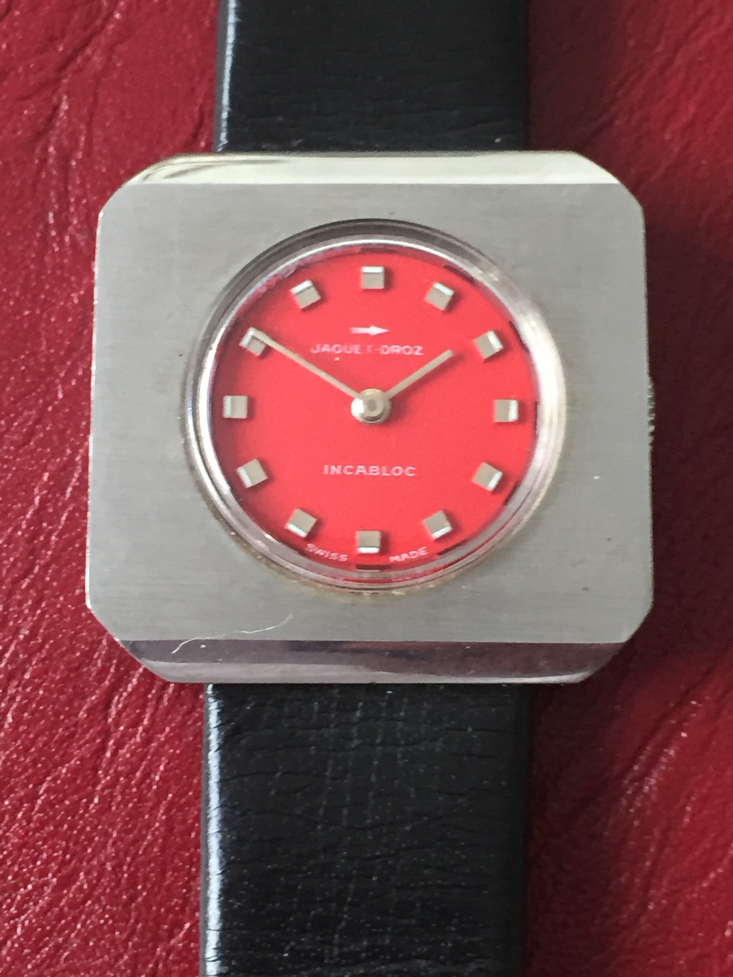 1970's Chunky Funky Cool Jaquet Droz Woman's Watch + Leather Strap