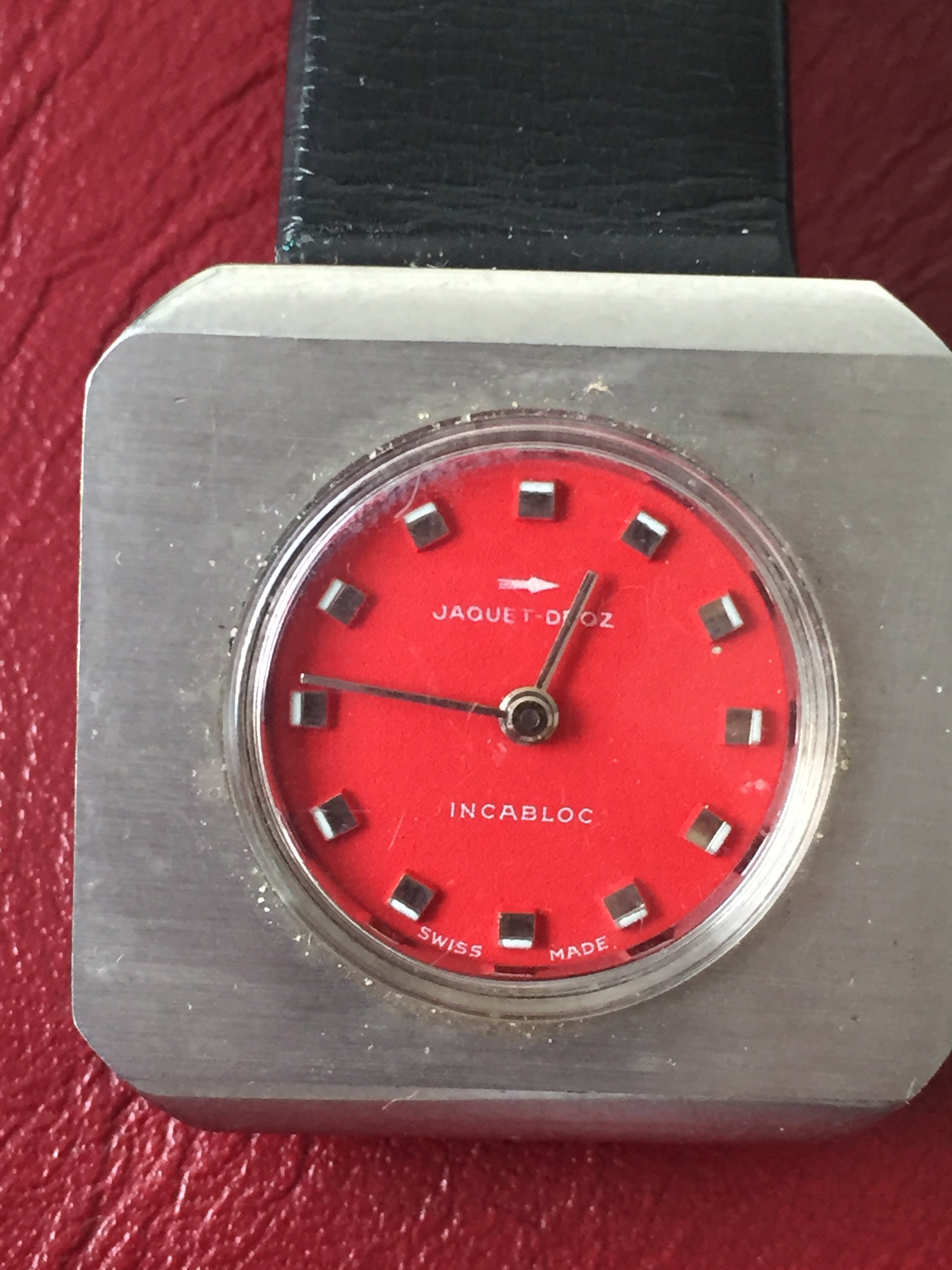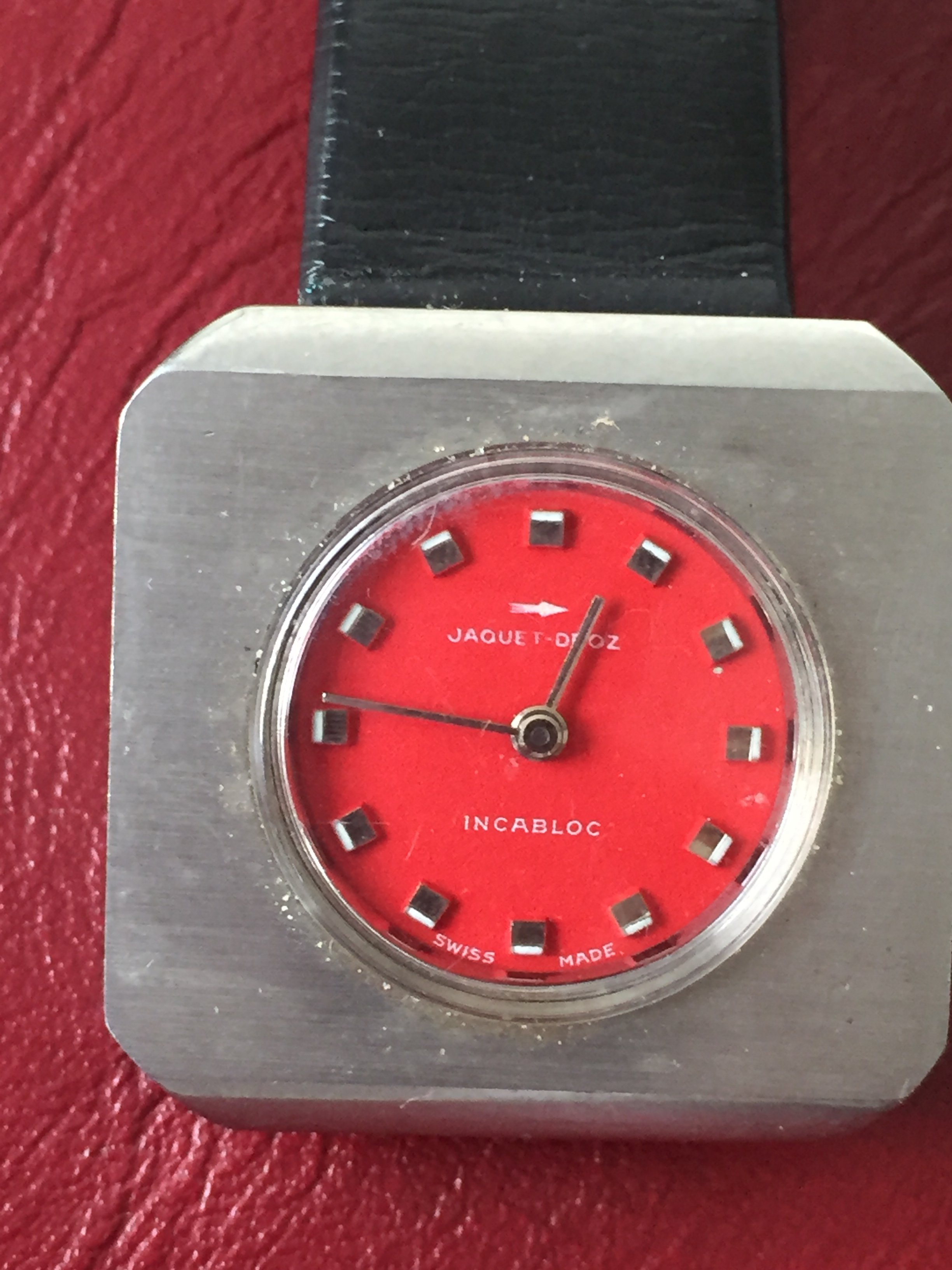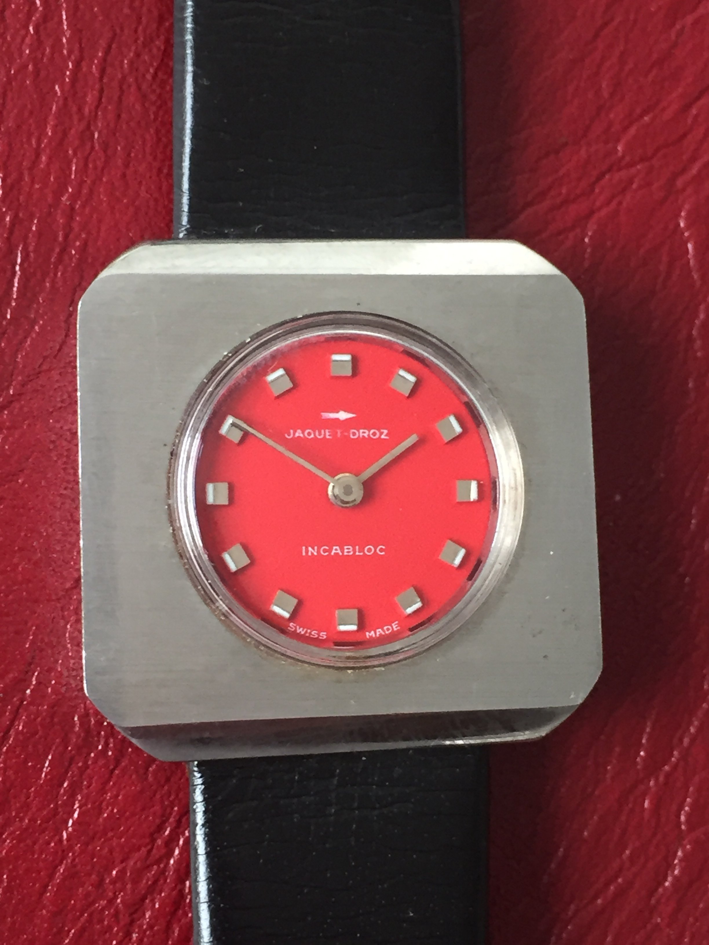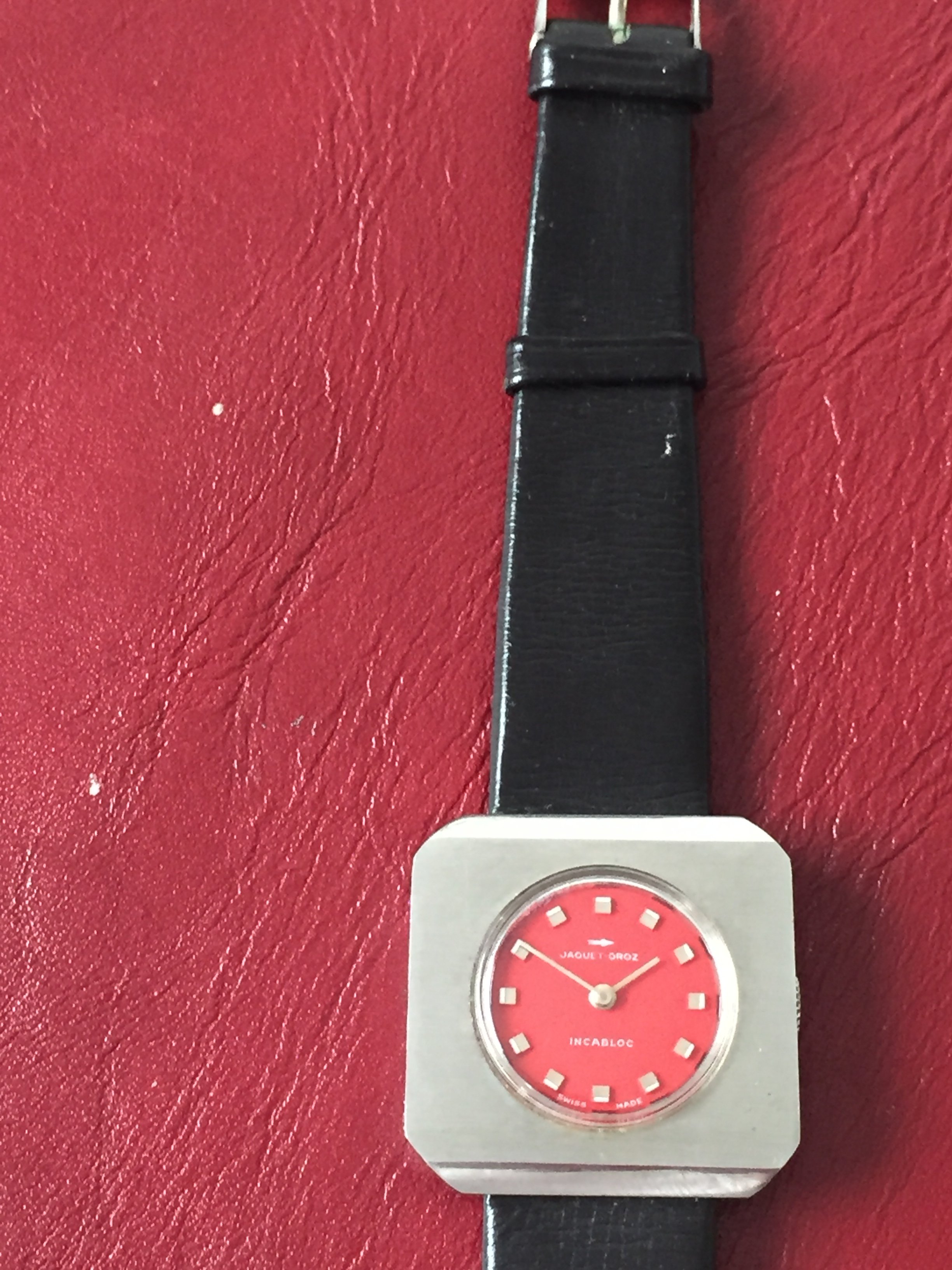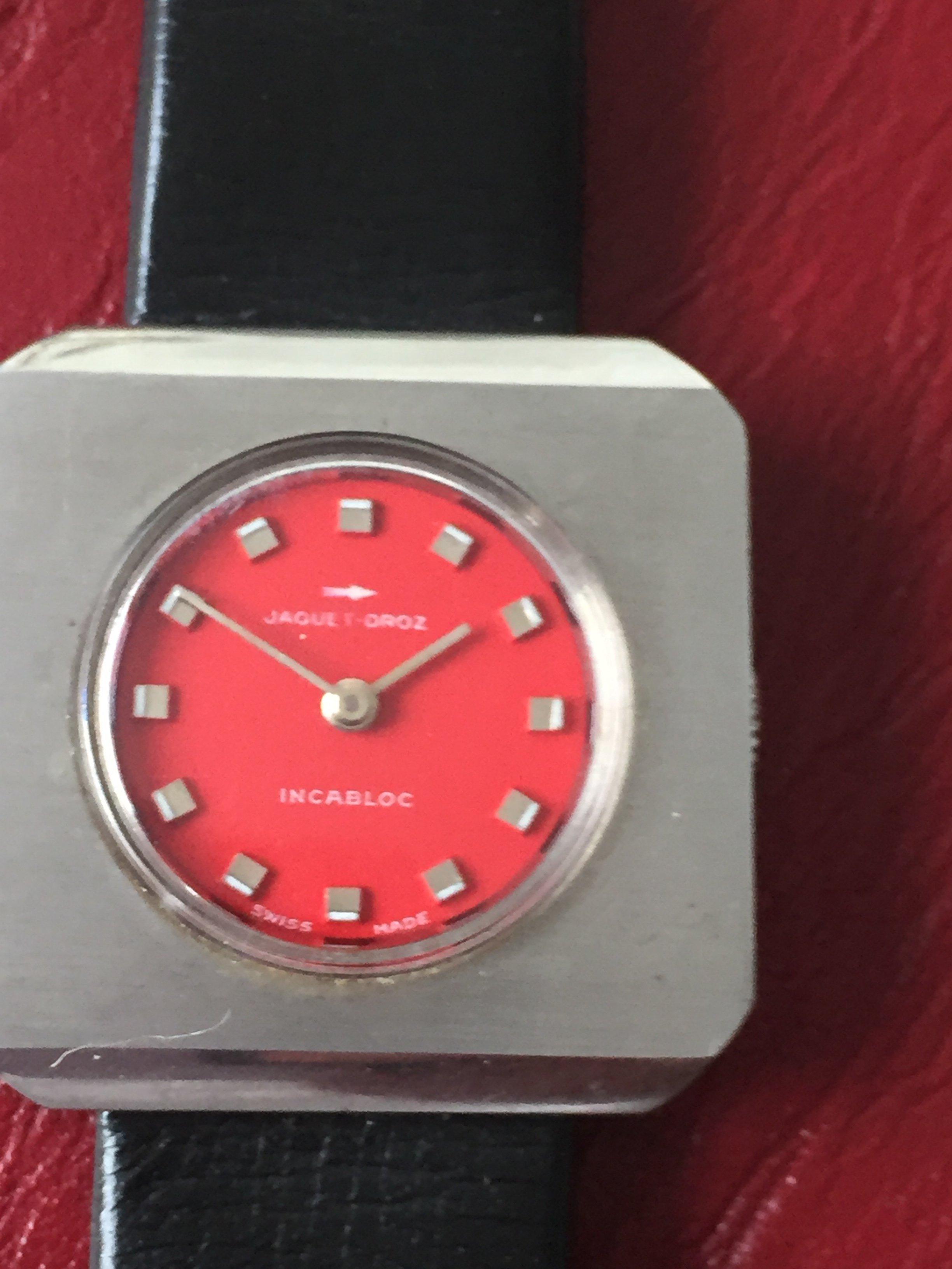 1970's Chunky Funky Cool Jaquet Droz Woman's Watch + Leather Strap