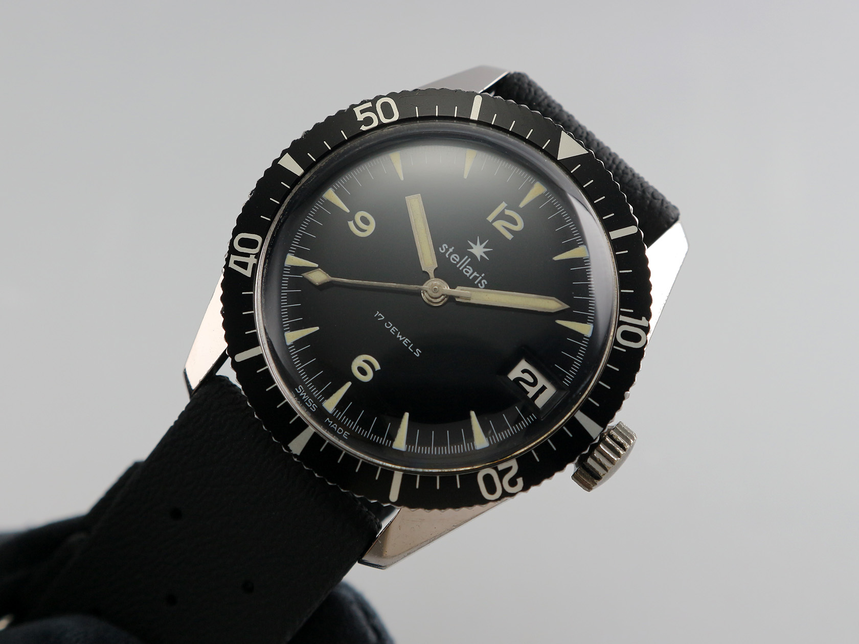 ·Up for sale today is a very nice Stellaris hand-winding watch. The black dial is in excellent condition with Tritium indices and hand set. The case is chrome plated bezel with ss back is still in good condition. It measures 36.2mm wide without crown and 41.5mm lug to lug, lug width is 20mm. Service history unknown but still running strong.