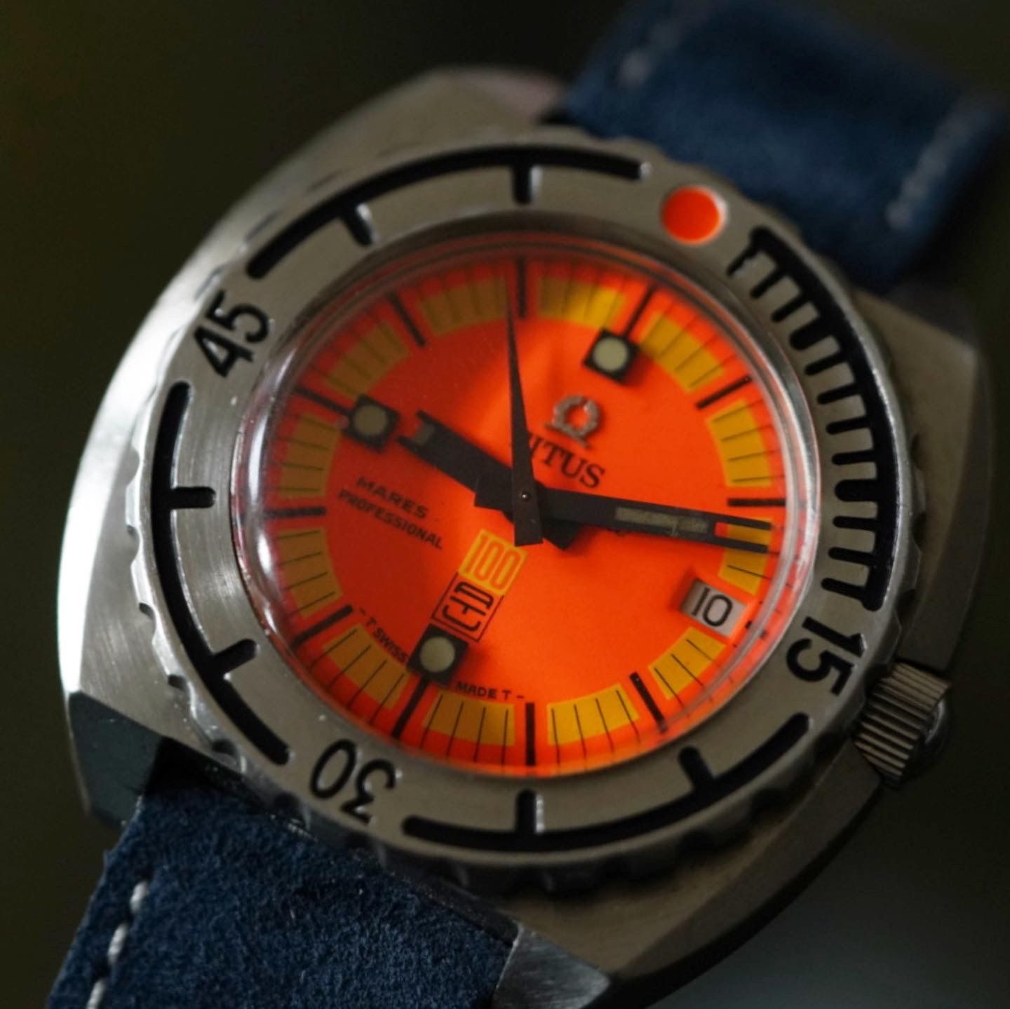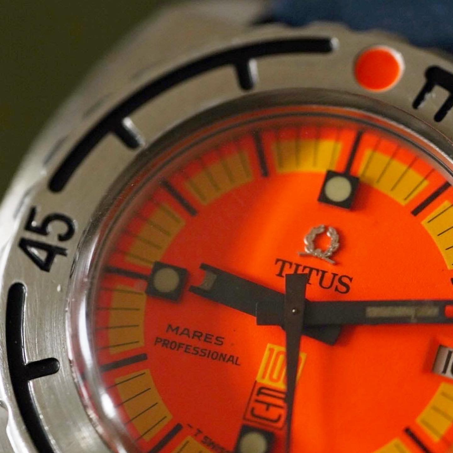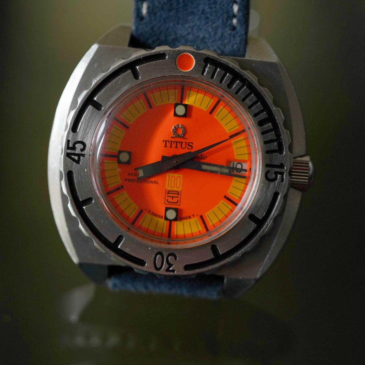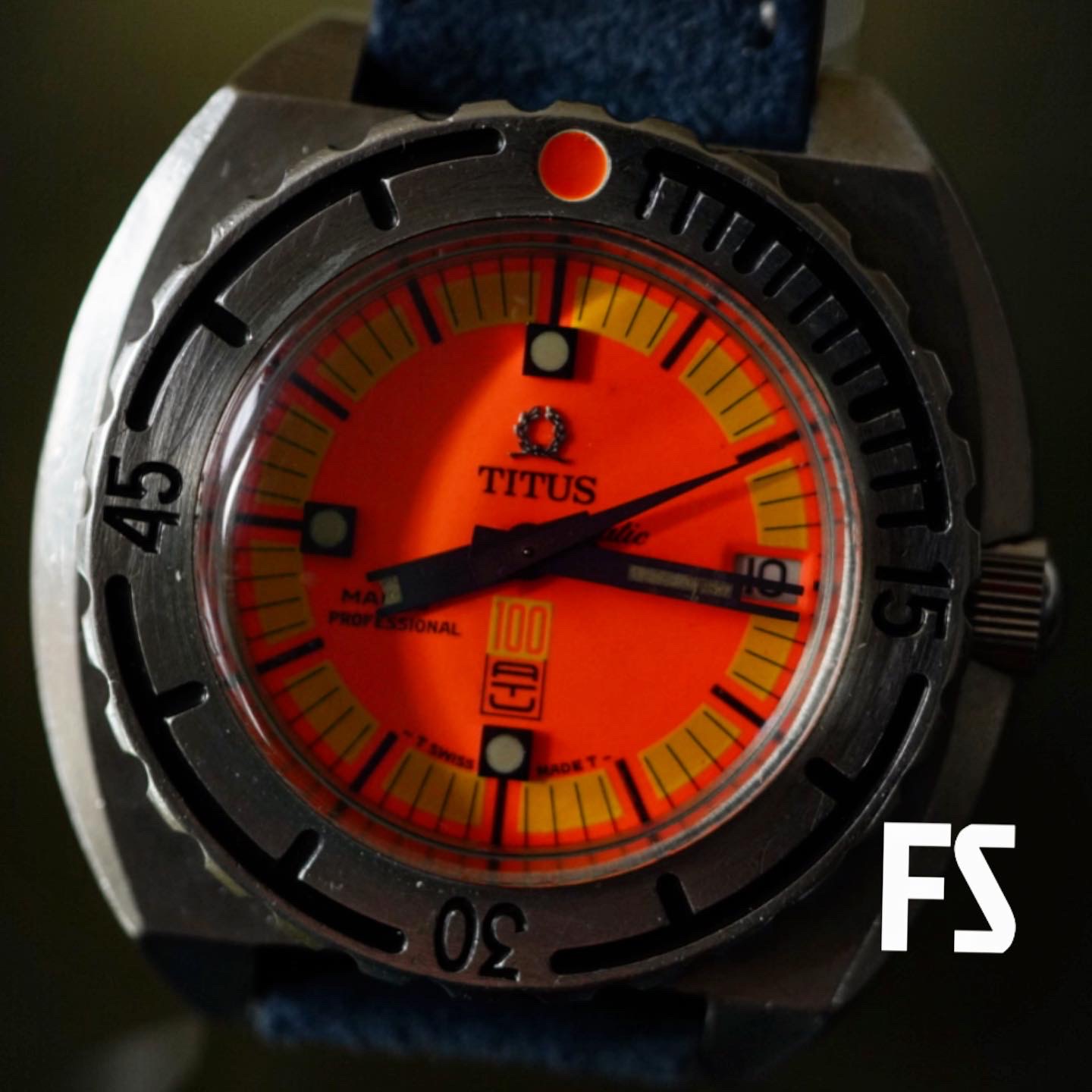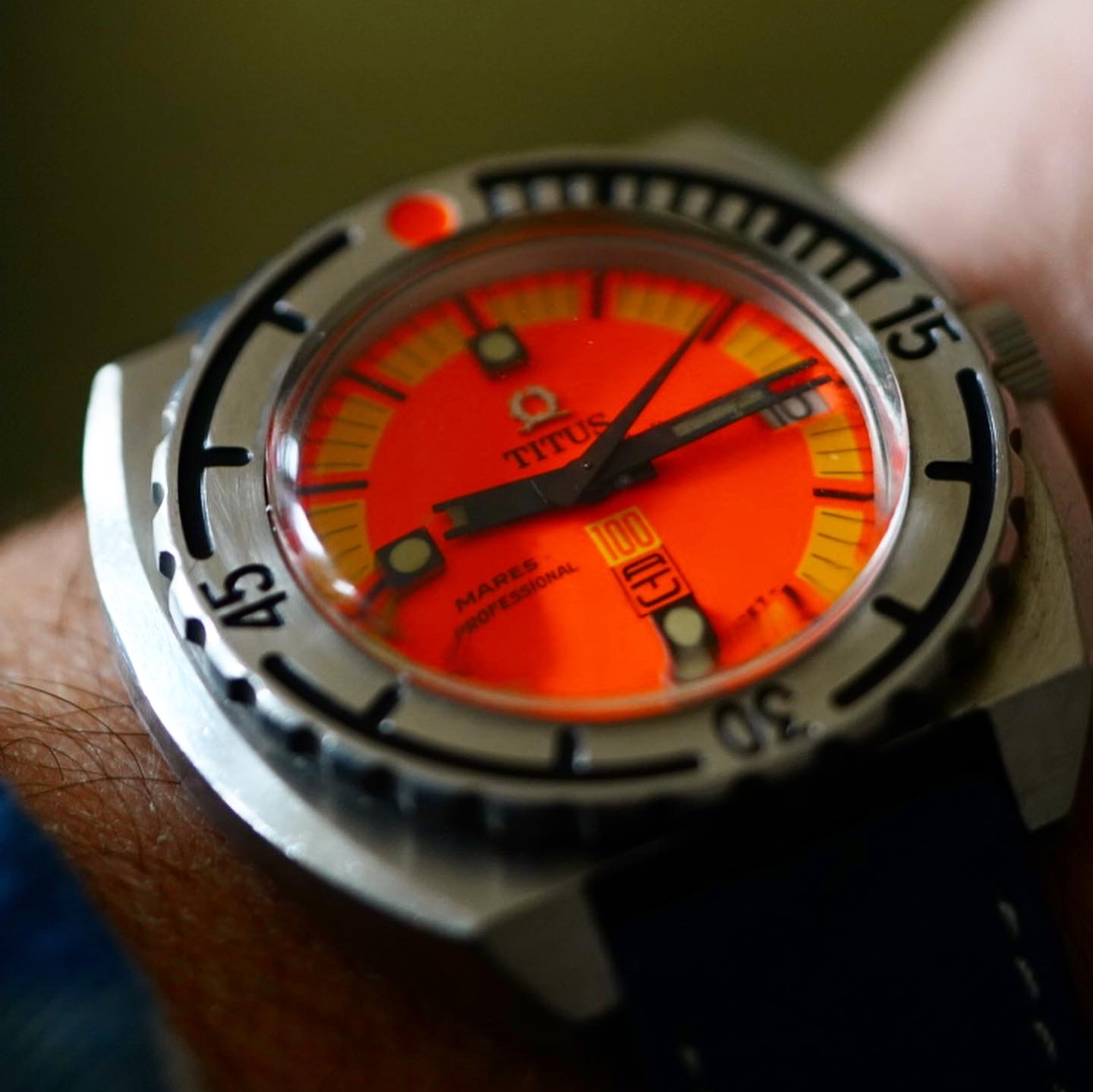 Selling mood. FOR SALE One of the best dive tool I have ever owned. Total guilt-free watch worn, not worn-out! The most vivid dial your eyes can handle. 1970s Titus Mares. These mares were the first commercial watch to reach 1000ft.