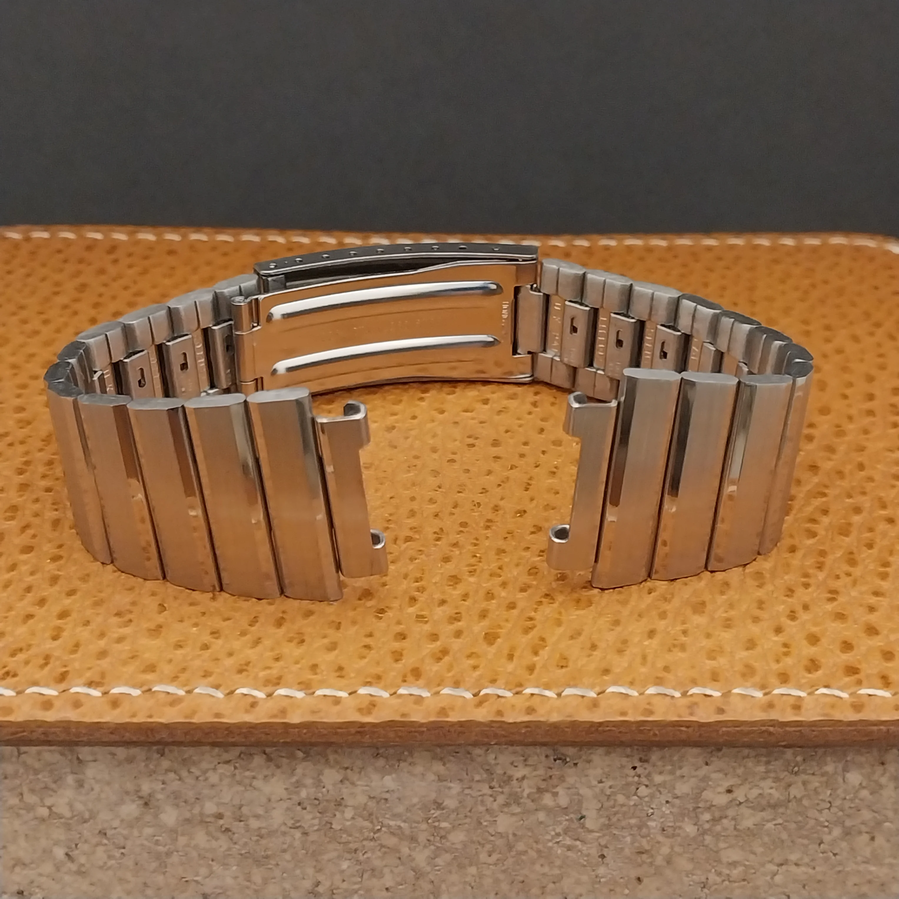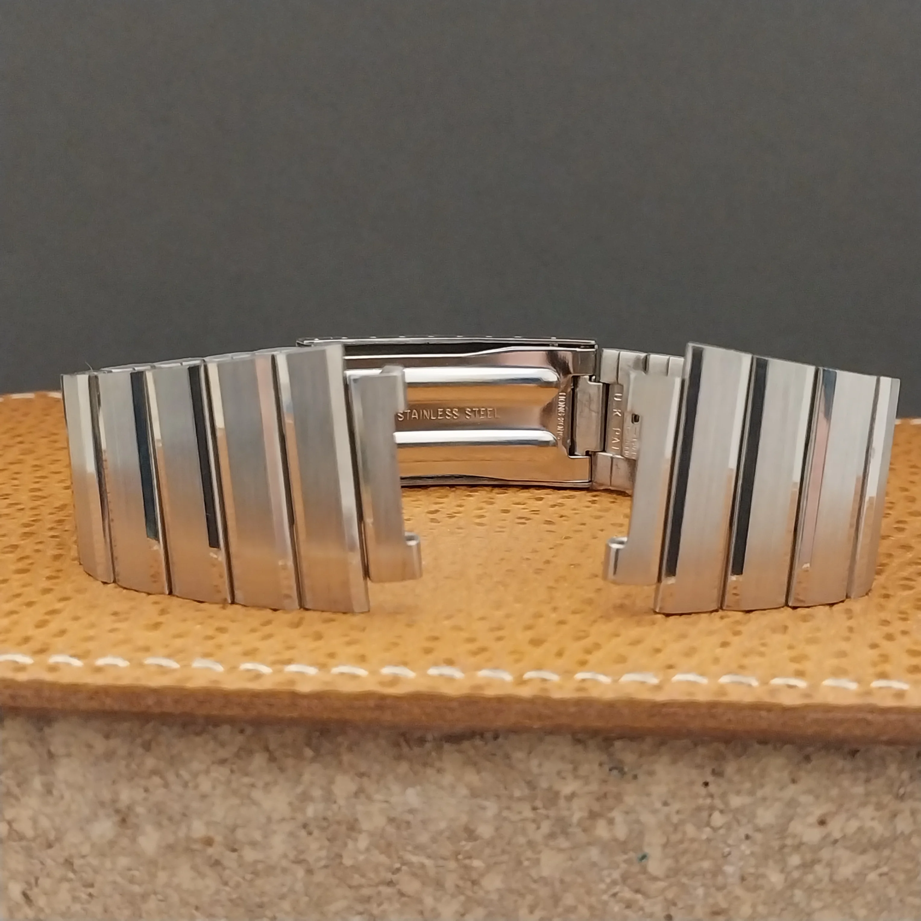 ·NOS unused 1970s-1980s old-stock brushed stainless steel watch bracelet.