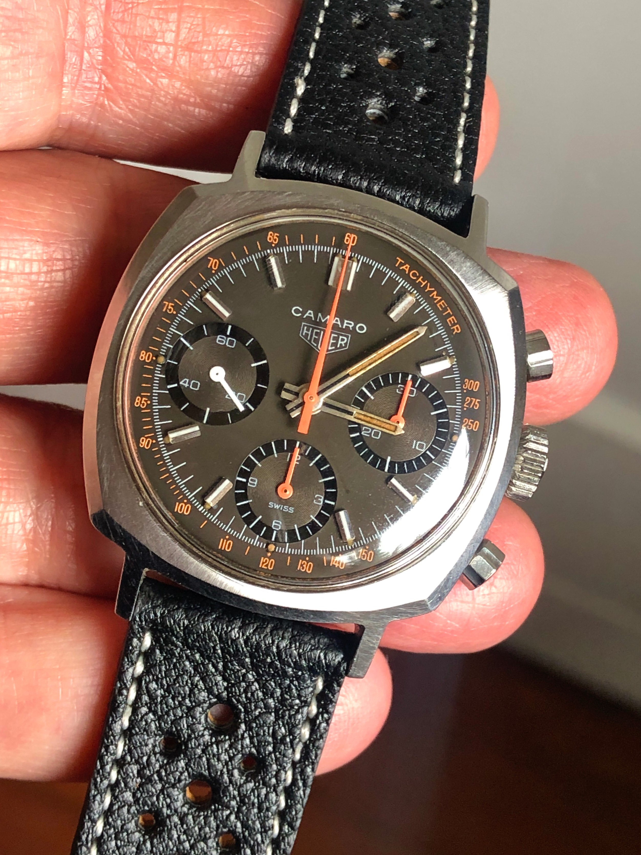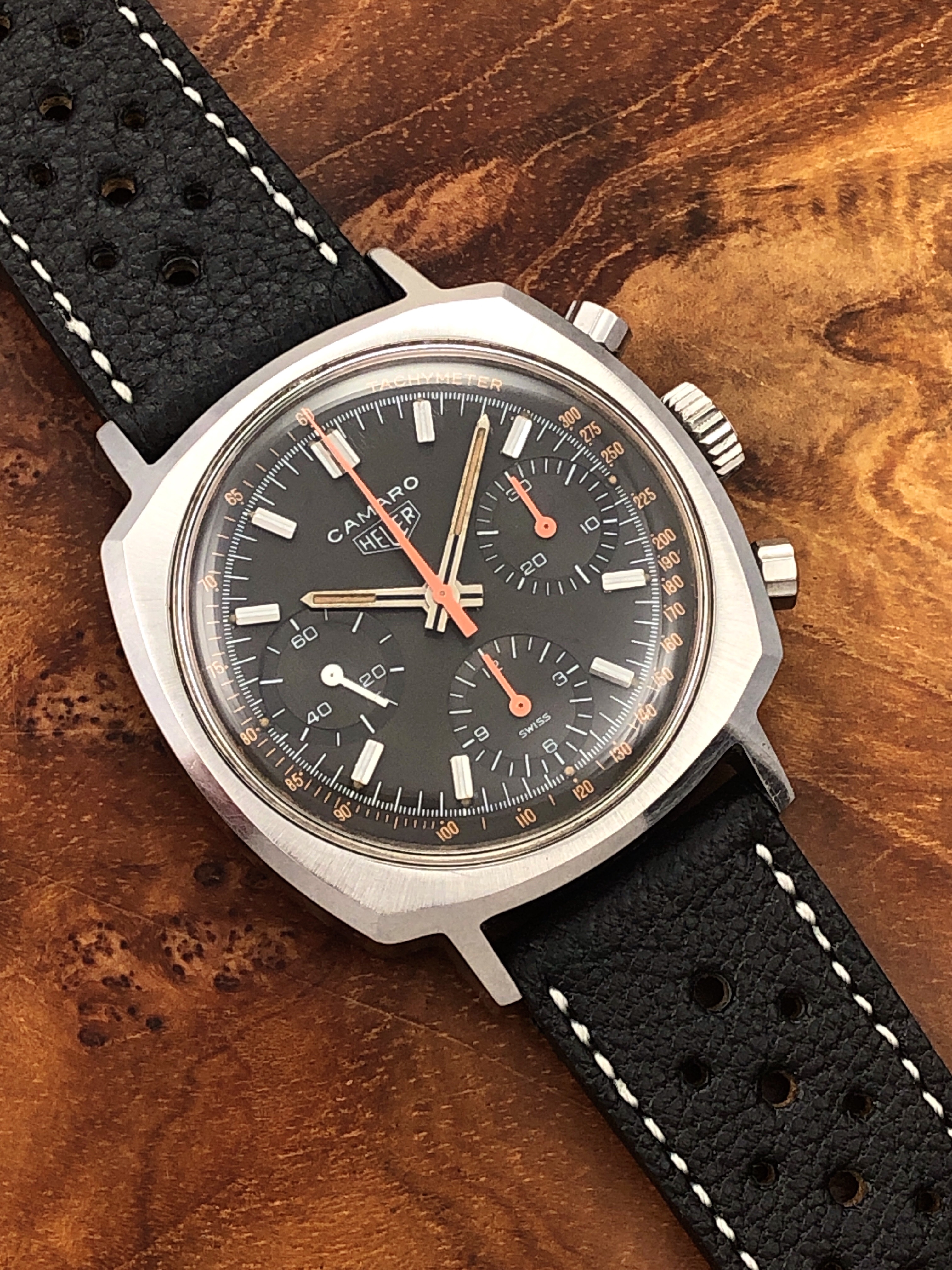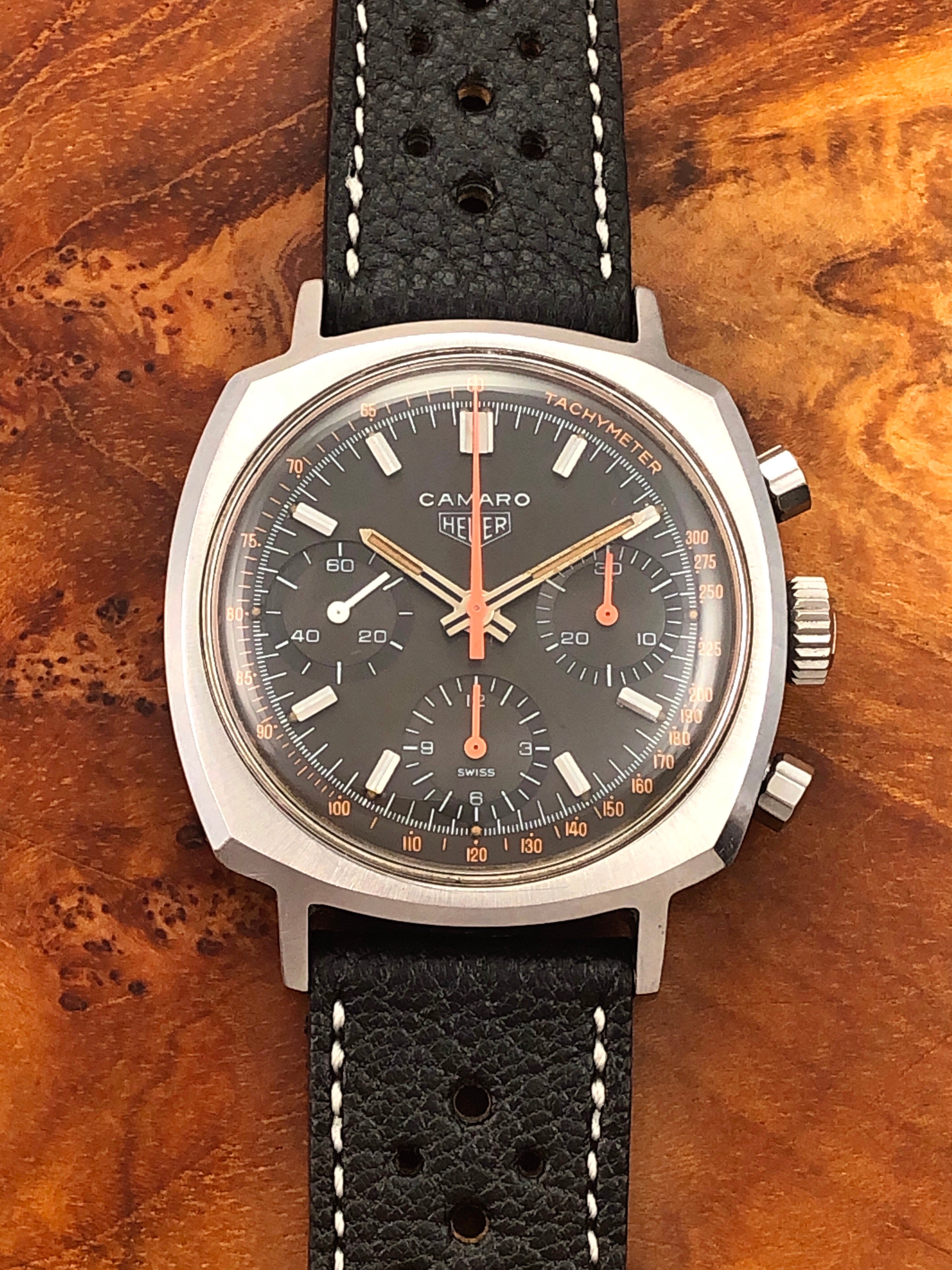 I’m selling a 1971 Heuer Camaro 73643 with an exotic brown dial, here are the details: