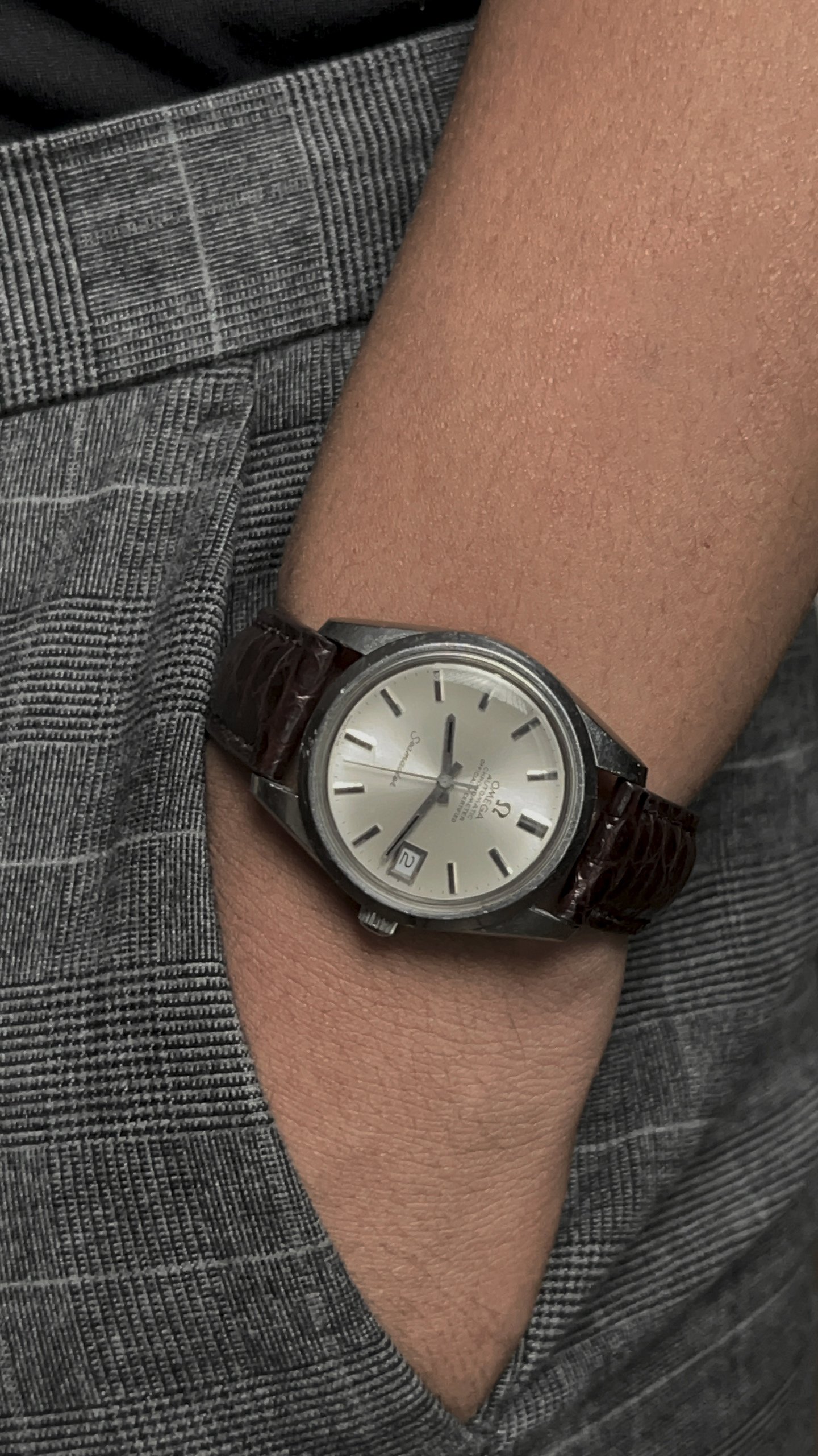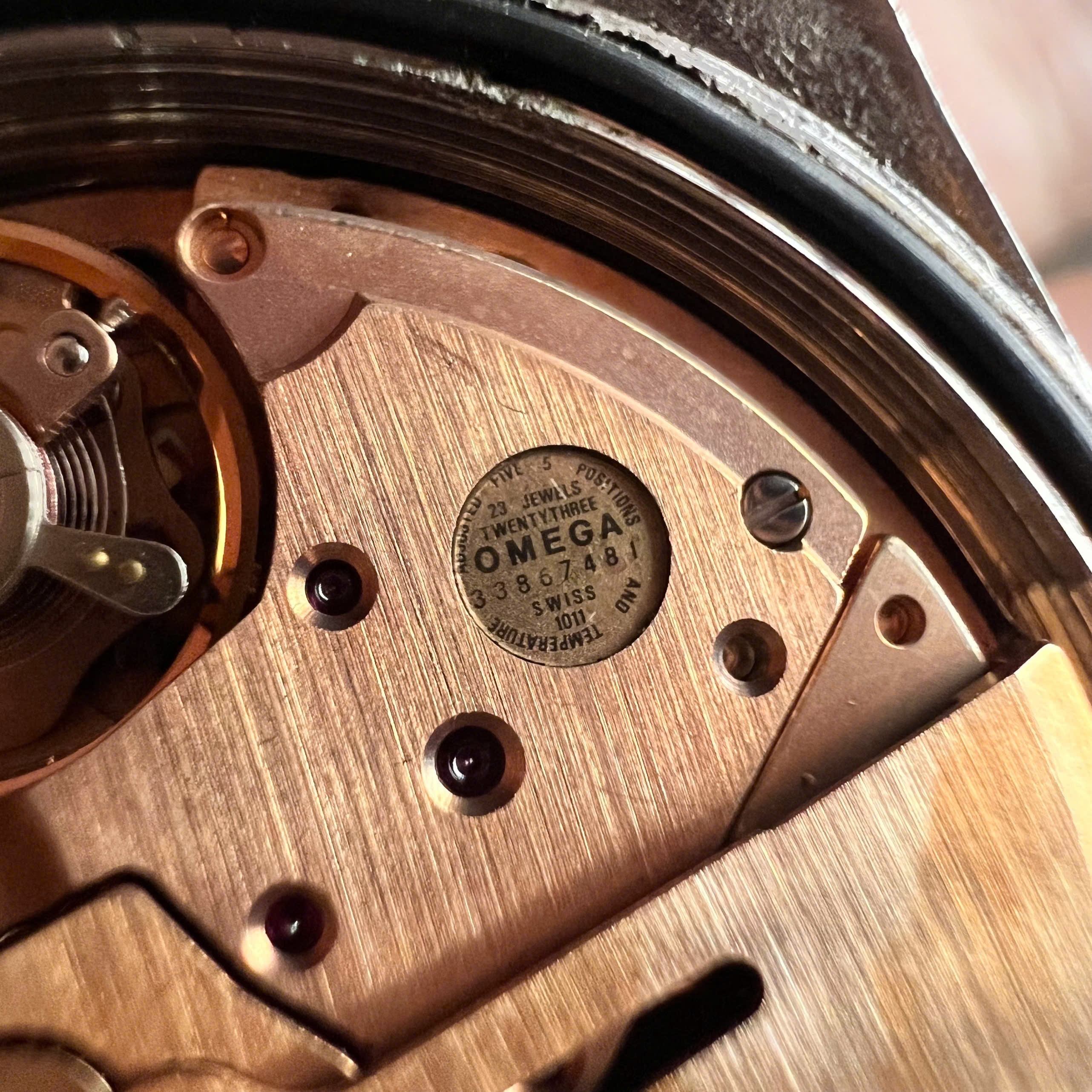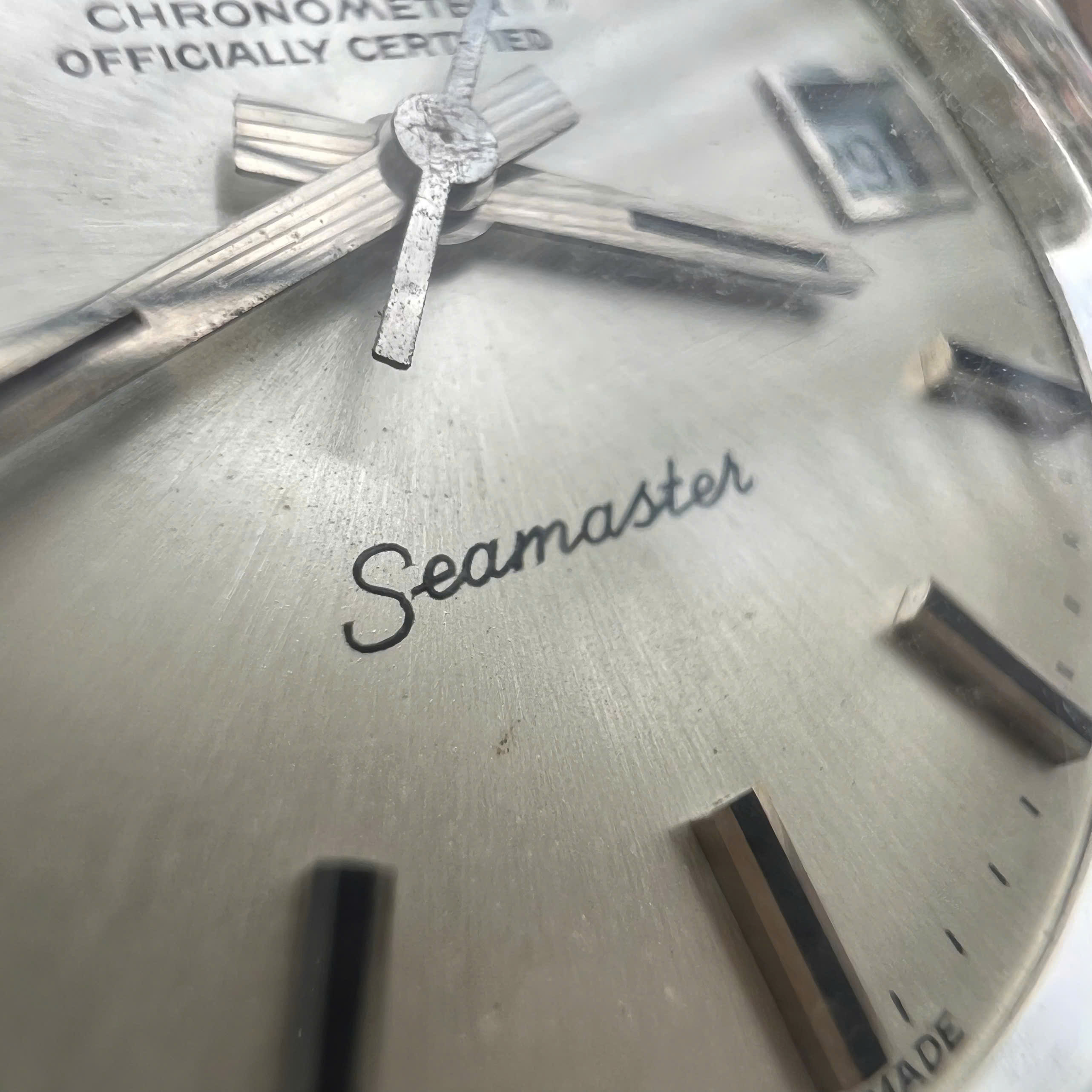 - Movement: Omega Cal. 1011 chronometer grade, it's running, winding smoothly, working quickset date, date jump, hacking seconds, all checked. Unknown service history and untested for accuracy. The serial is in 33mils range, dated the watch to aprox 1971.