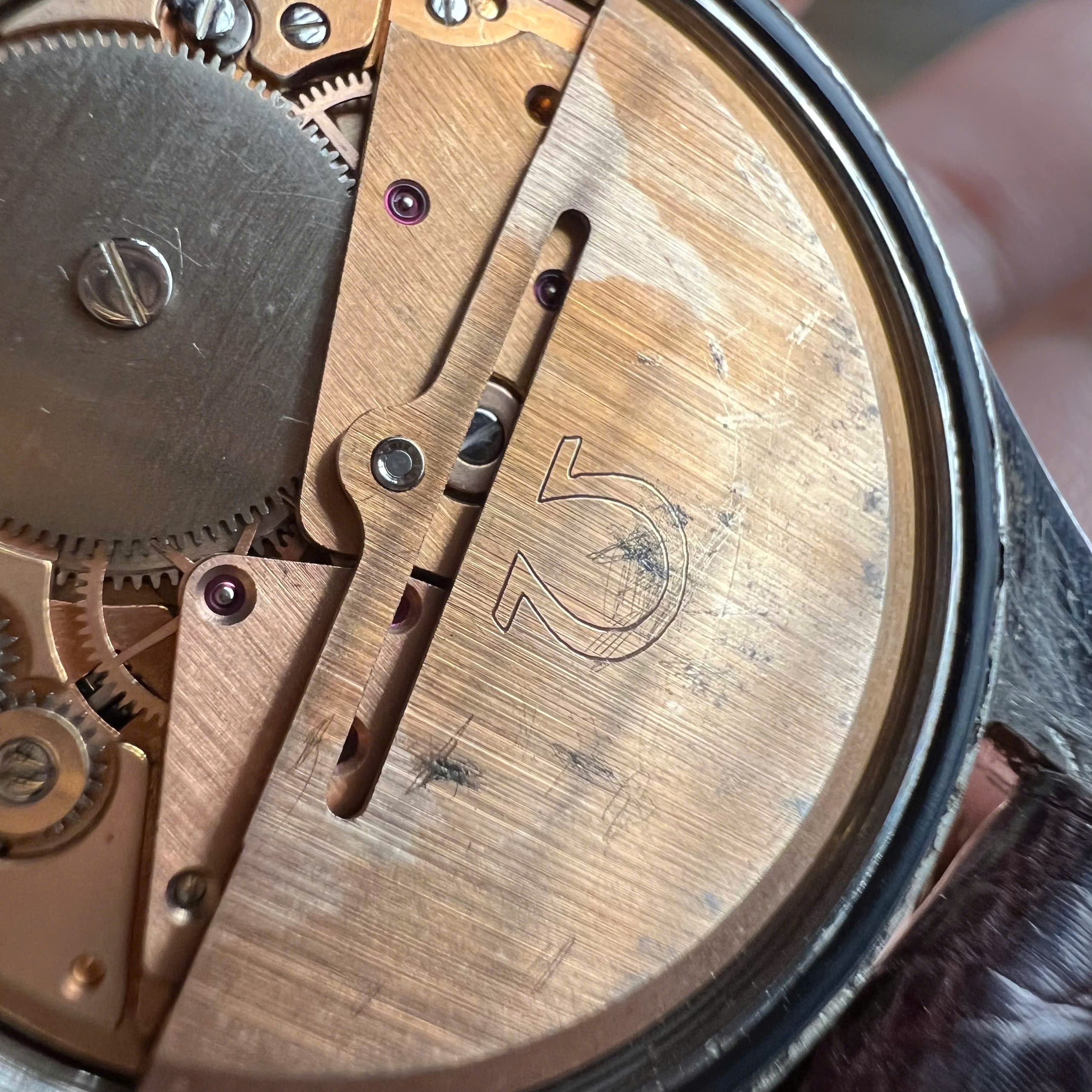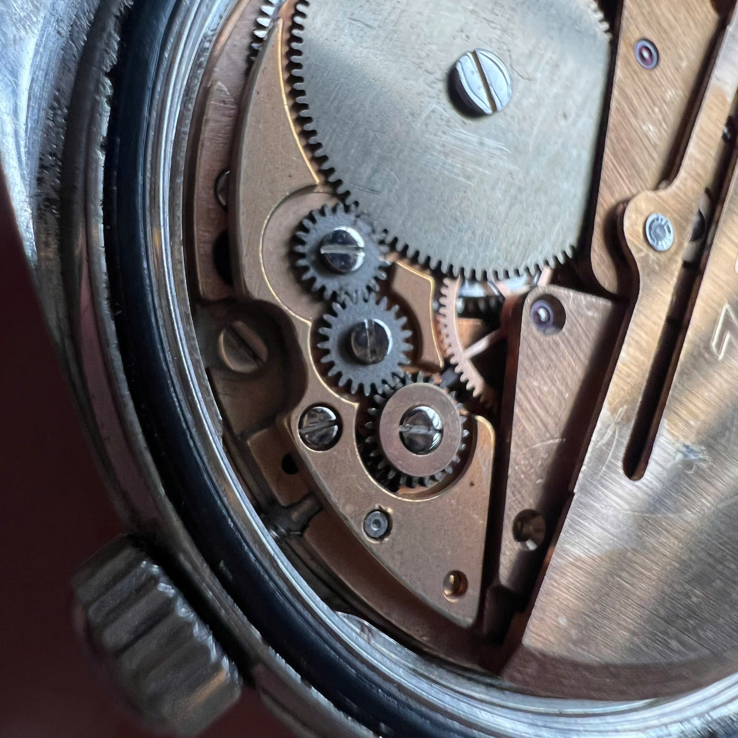 - Dial: Original sunburst dial in good condition. Correct set of wide baton hands in good condition, second hand is slightly rusted.