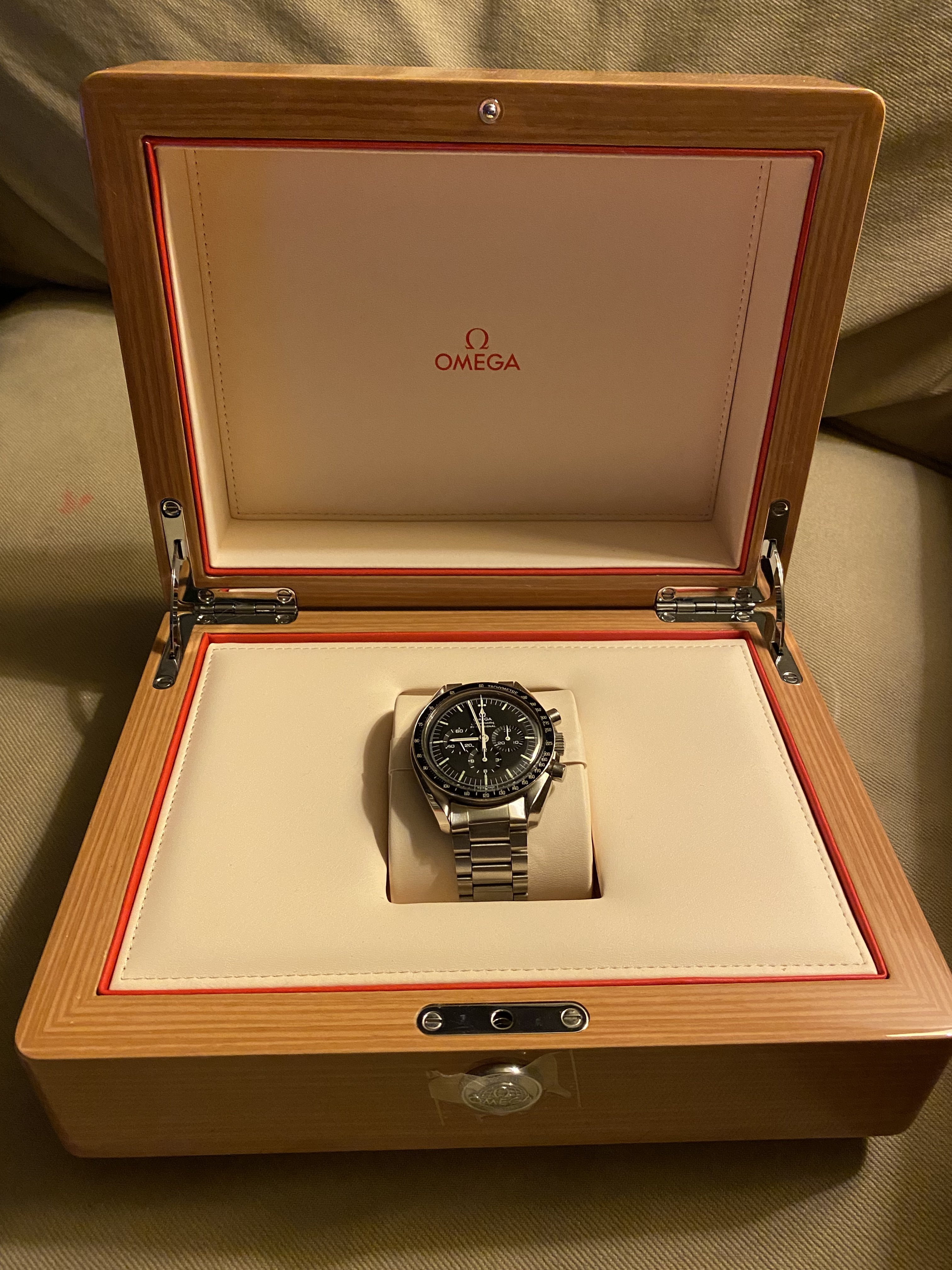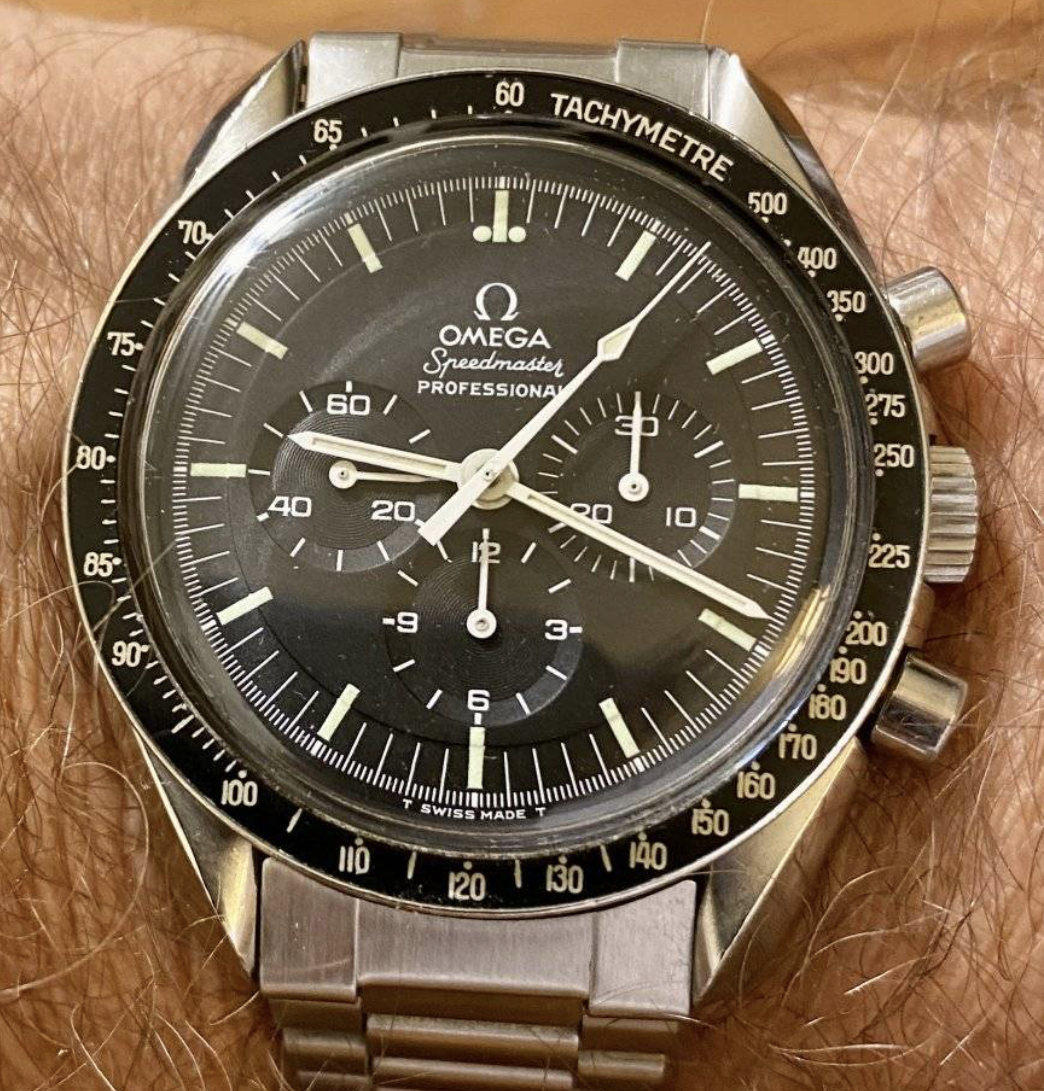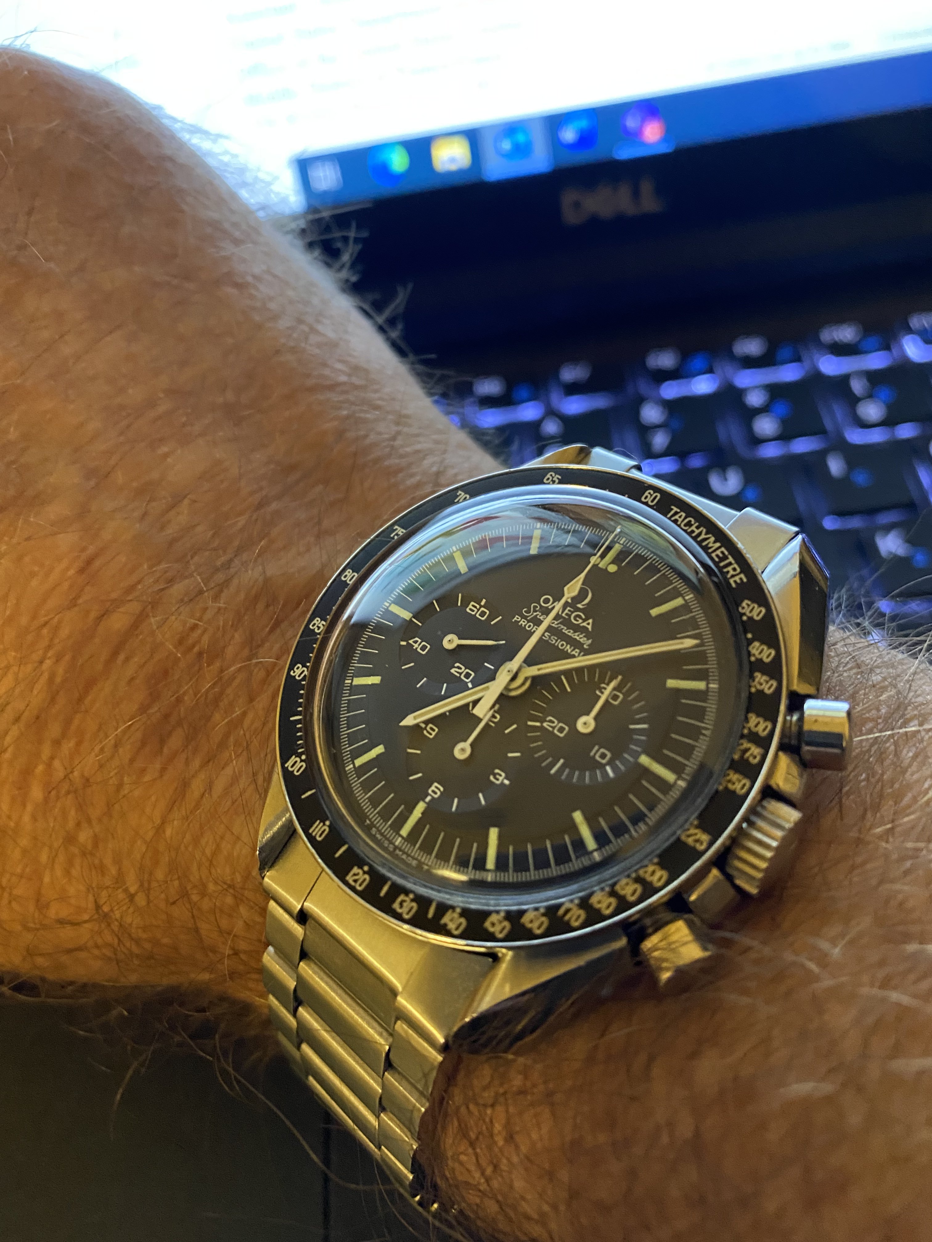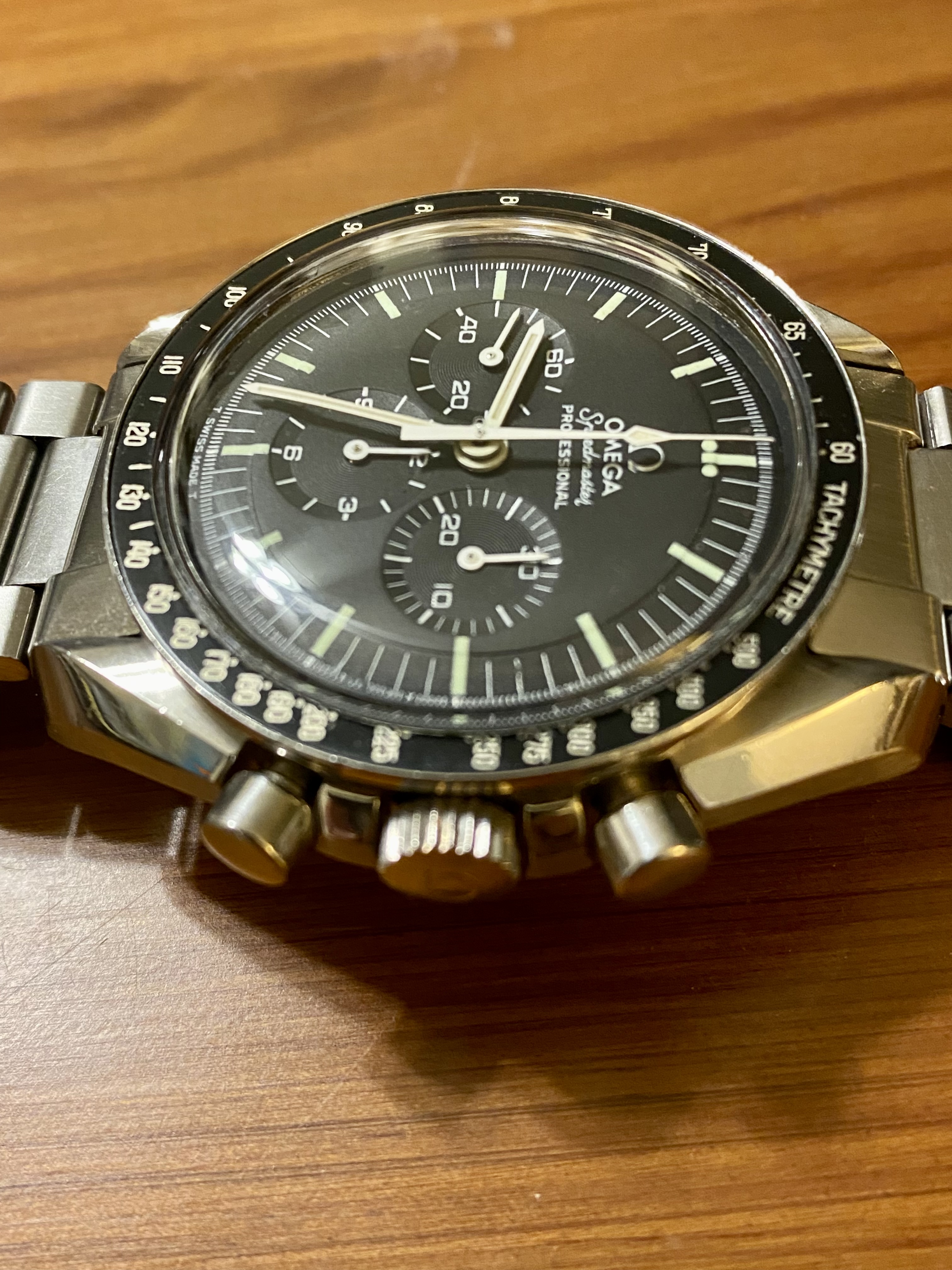 ·Good day all. Up for sale is my 1971 Speedmaster Professional. I acquired this watch in March of 2021 from one of my watchmakers. To my knowledge, it is fully original with the exception of the Omega 1175/640 flat link bracelet which I added after purchase and which is correct for this reference (the watch came with an incorrect 1171-1 service bracelet when I bought it, so the 1175/640 is a significant upgrade). I will let the photos speak for themselves, but this is the nicest example of a 1971 Speedy that I have ever seen. The case is unpolished with just a few minor scratches. The bezel is perfect as are the tritium dial and handset. Although I do not have service records, I can represent that the watch was serviced immediately prior to my purchasing it and is still under warranty through March of 2023. I can supply the warranty card. It winds up smoothly, runs well within specifications, and all chronograph functions work as they should. I am selling it only because I recently acquired a 1969 Speedmaster Straight Writing and I really don’t need two Speedies in my collection. The price is $6,000 USD. I value the watch head at $5,200 per the Speedmaster 101 price chart for a “very good” example and the 1175/640 bracelet and end links at another $800. I am throwing in free shipping and insurance worldwide as well as one of the new style Omega lacquered wooden watch boxes with cream leather interior. All in all, it’s a very nice package. Payment via Wise, bank wire transfer or PayPal F&F. No returns unless I’ve grossly misrepresented the watch’s condition - which I haven’t. 😀 I’ve been a very active member of OF since 2018 and I think that I can round up a few members who will vouch for my character without me having to pay them. You can also check my feedback under username gbesq on eBay and I can provide references from C24 as well. Please don’t be offended if I decide to ask for references from you as well. I’m happy to answer any questions, just PM me. Thanks for looking and now for the pics: