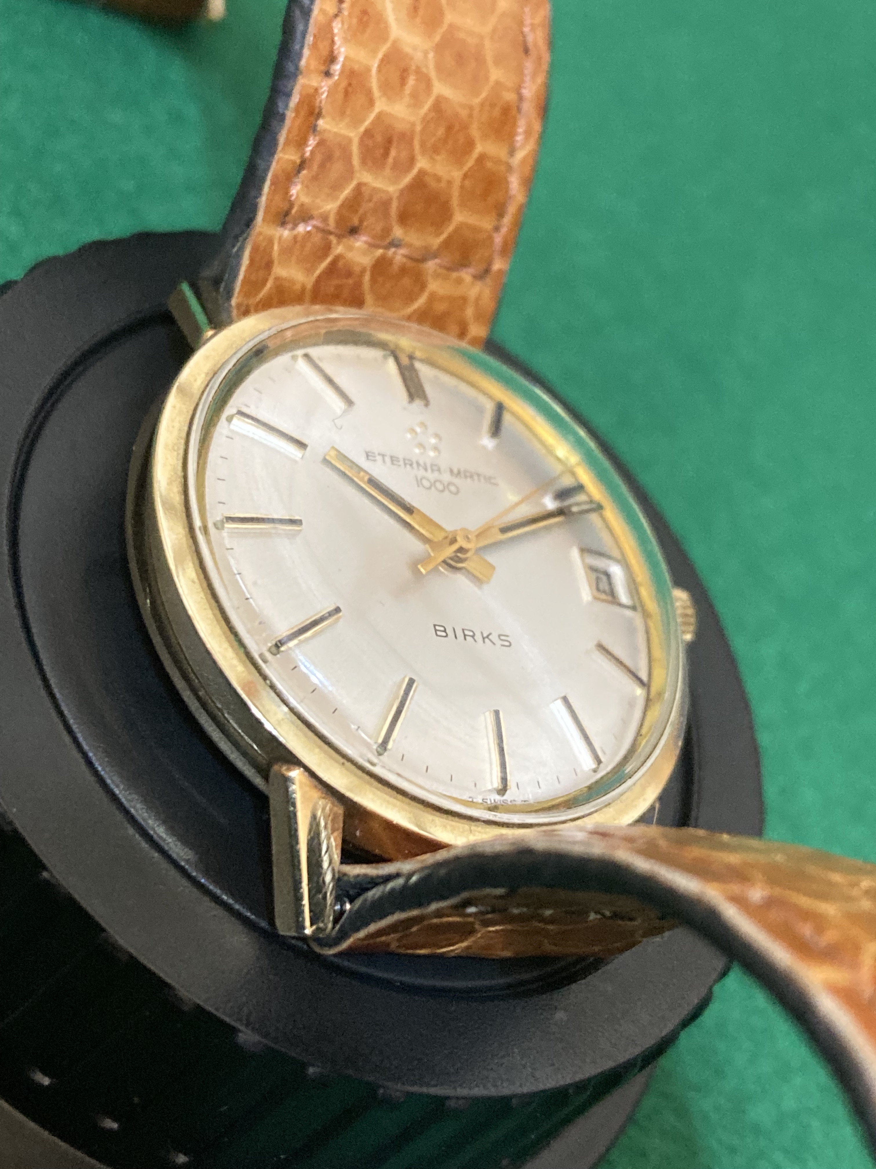 ·For sale is my Birks-signed gold-filled Eterna•Matic 1000 with a charming inscription on the caseback. This watch was awarded in commemoration of an employee's 25 years of service to the Canada Life Assurance Company, and with its signature by Birks, the Canadian jeweler, the watch is as Canadian as the day is long.