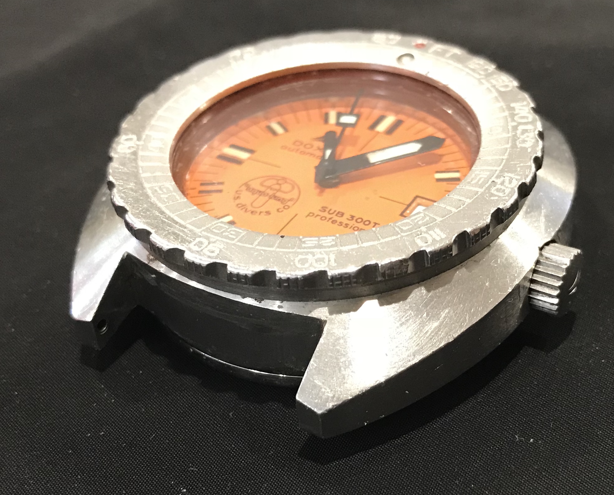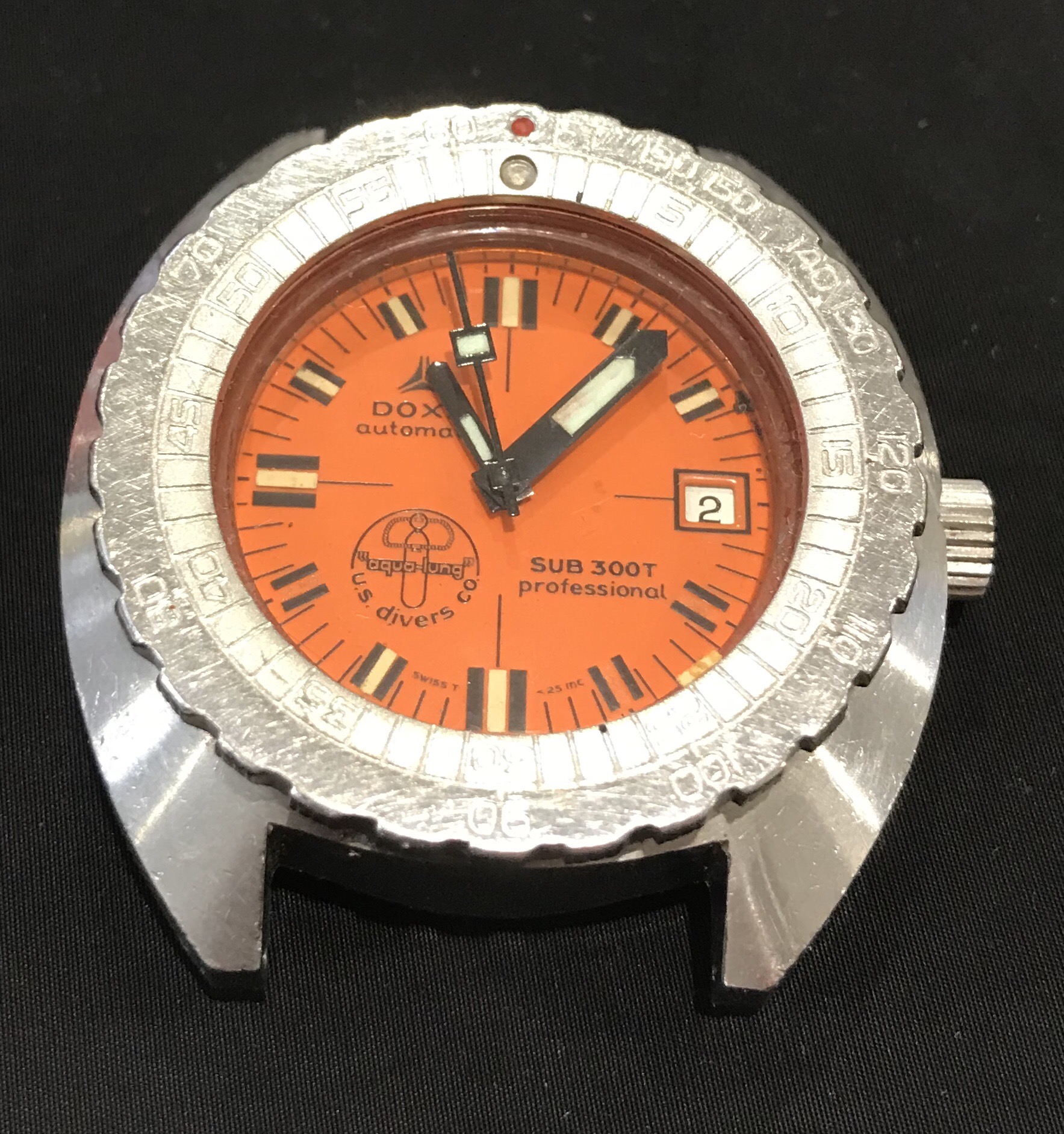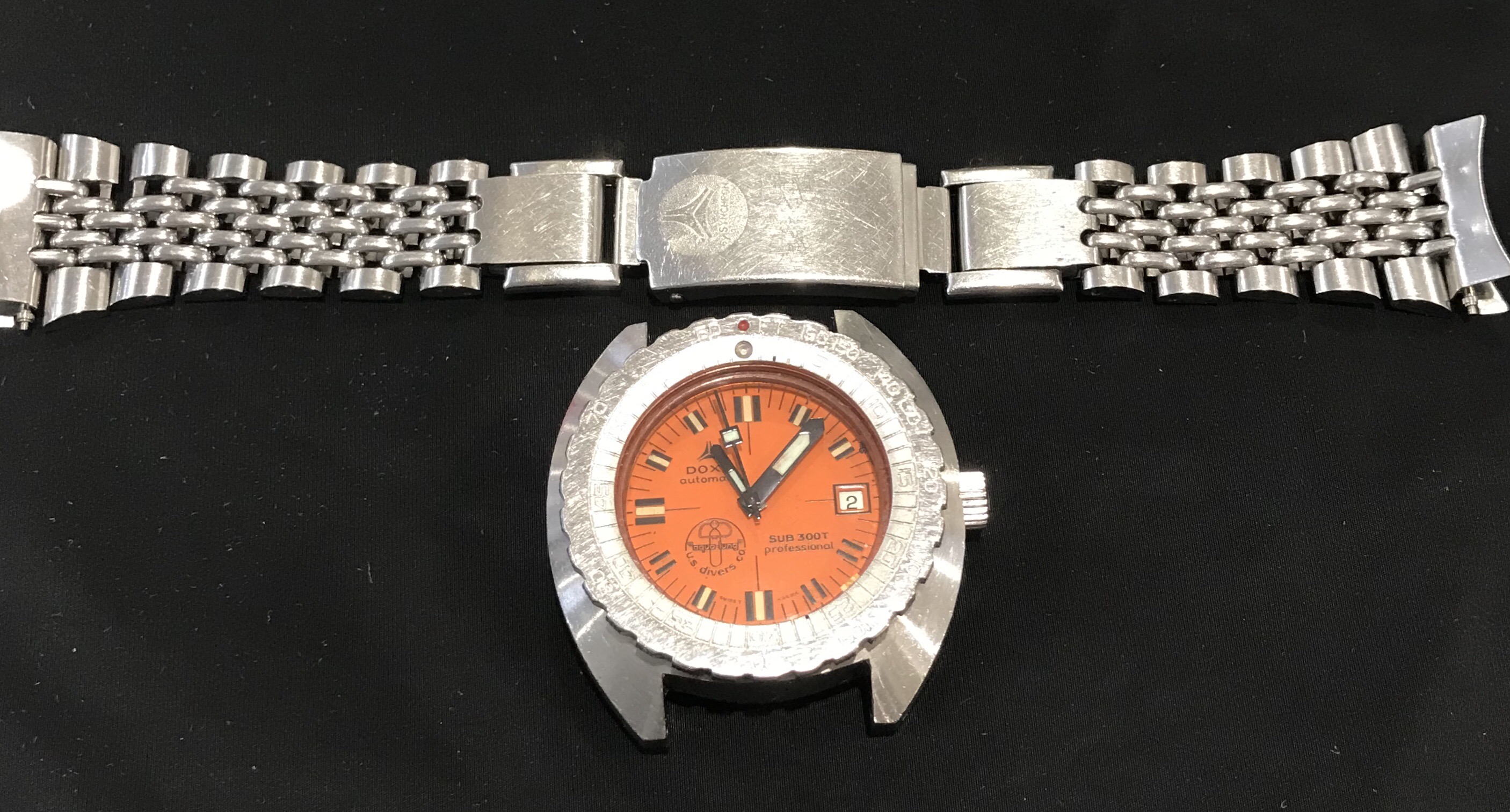 ·Hello up for sale is a vintage Doxa Sub 300T Professional with rare double logo orange dial. Called the Aqua Lung, and rarely seen with its original bracelet w/ 7720-10 endlinks and clasp with circle logo Doxa by Synchron.