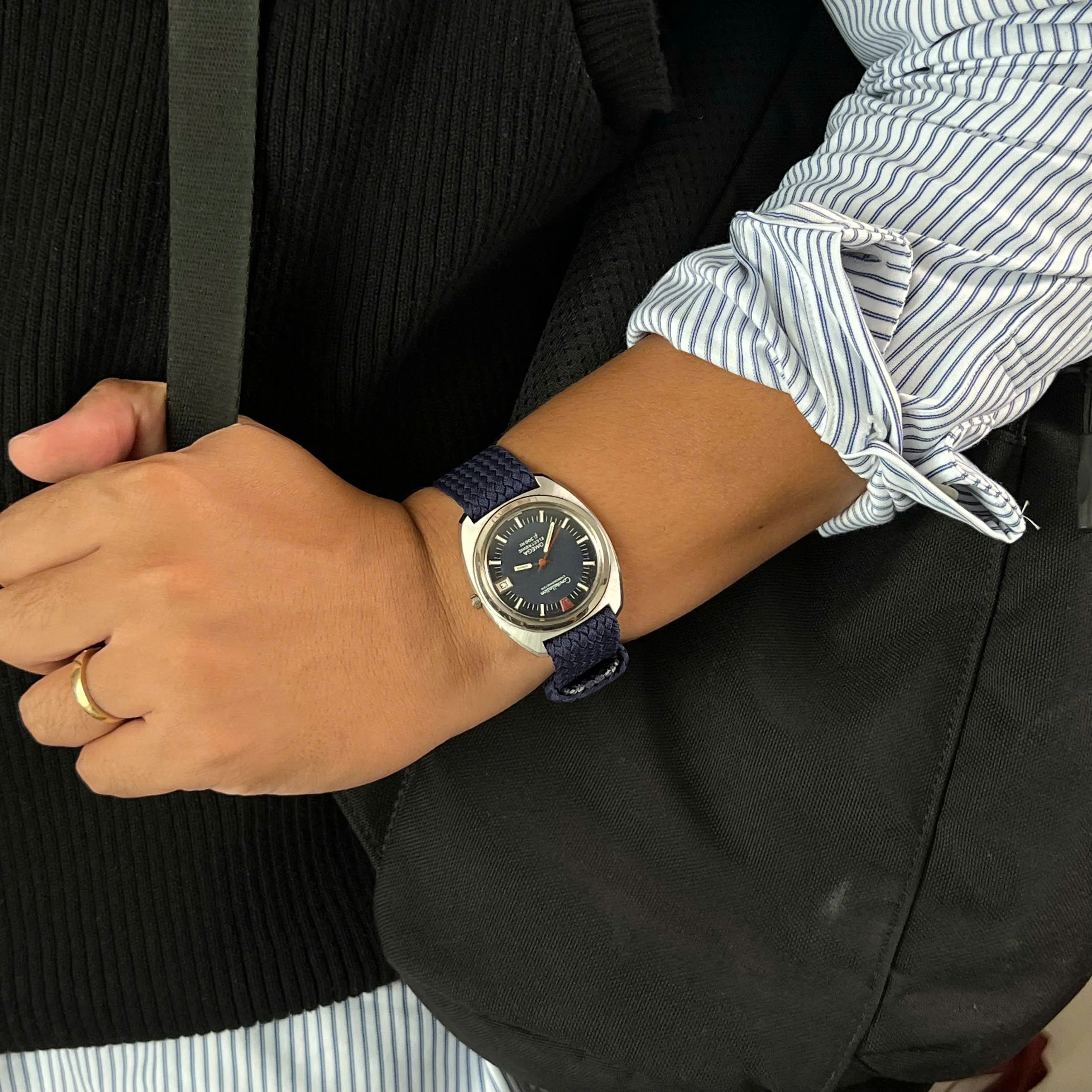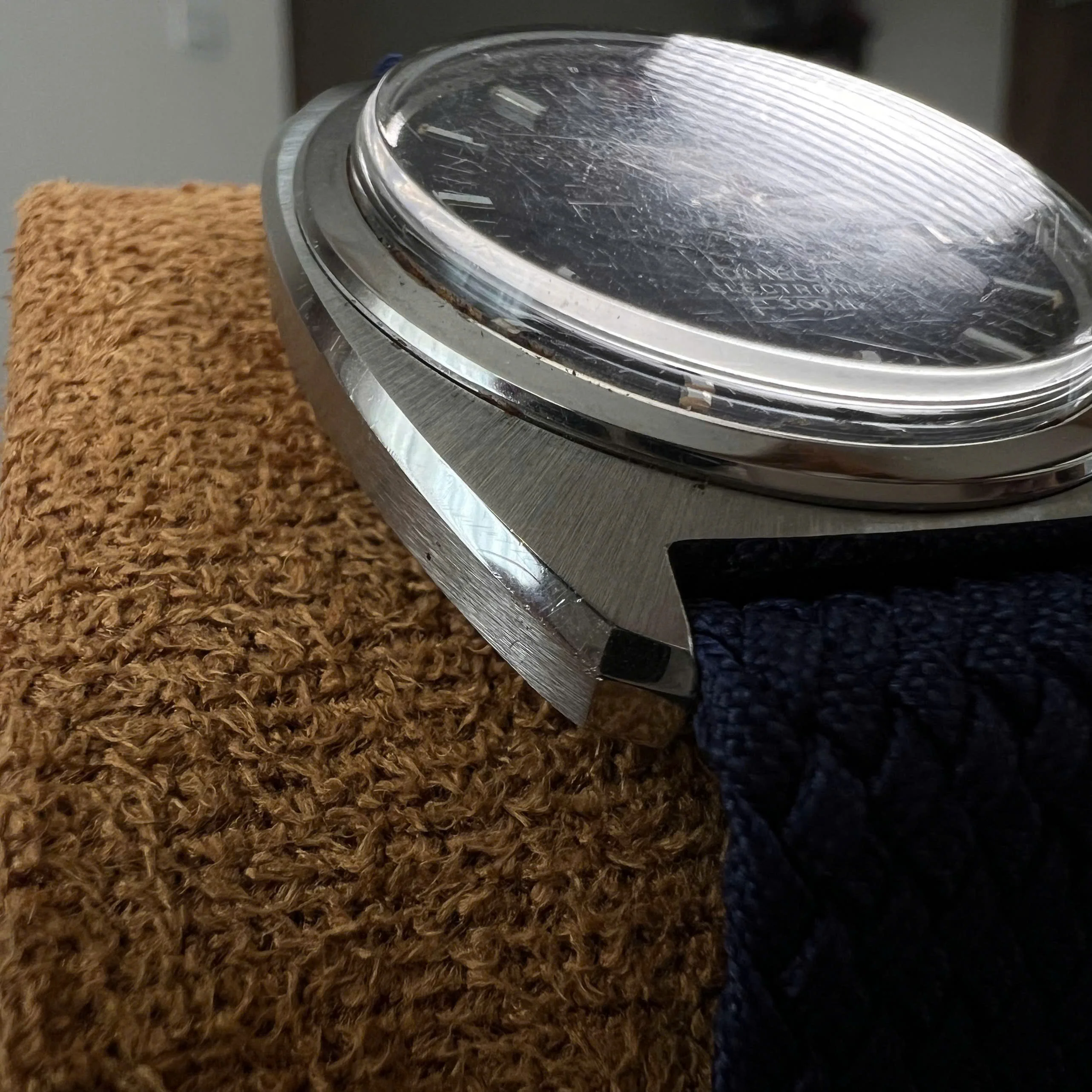 Dial: Original two-tone blue dial with the correct set of hands in good condition. The blue shifts shades depending on the lighting.