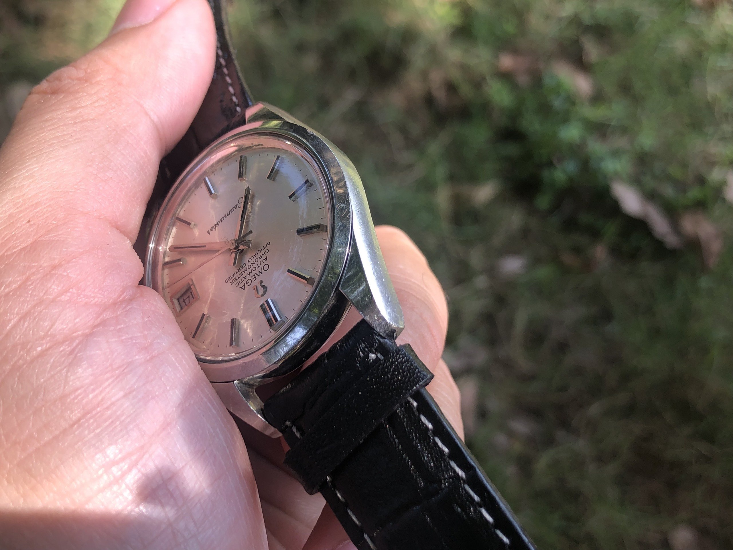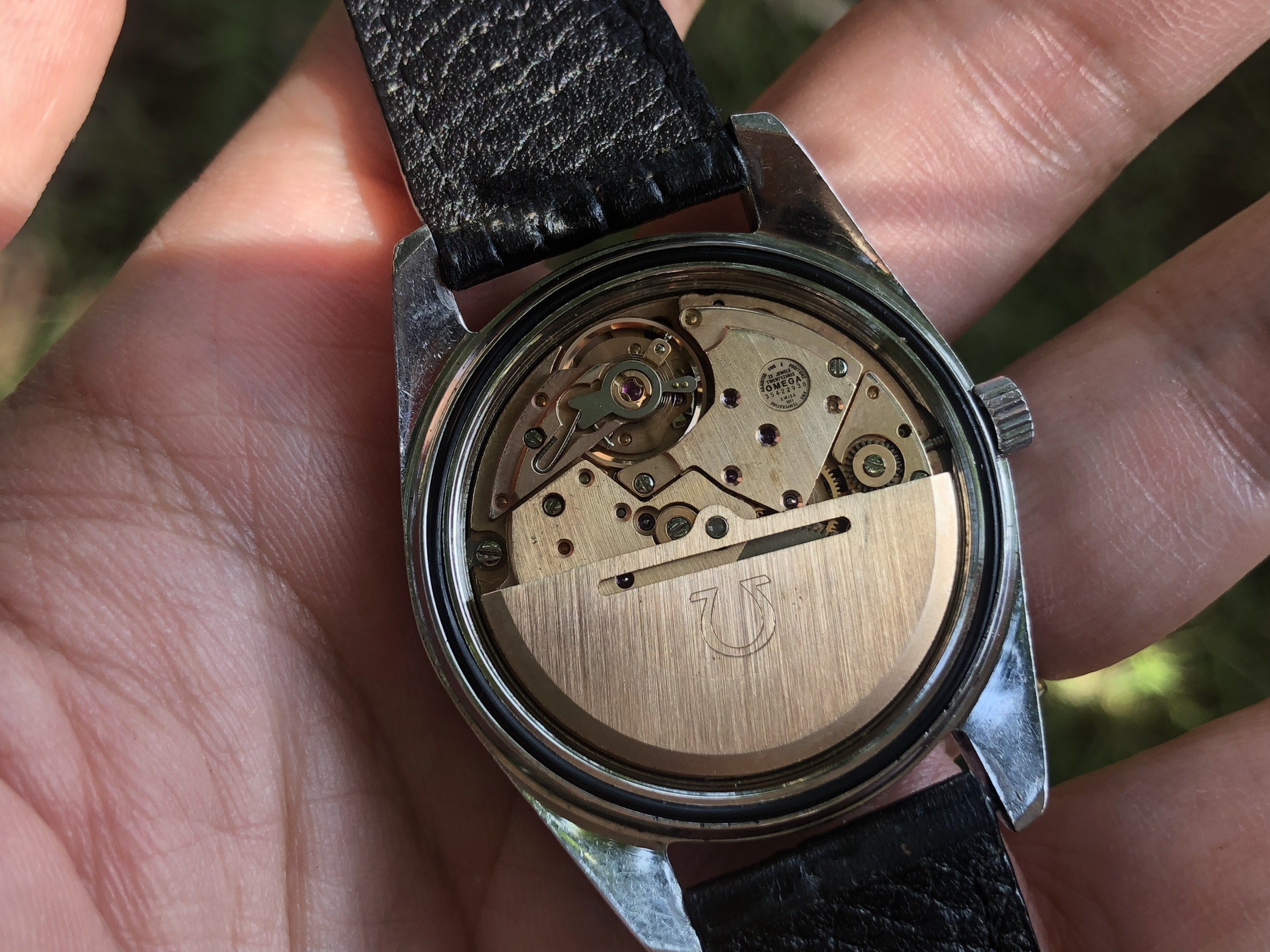 - Movement: Omega Cal. 1011 chronometer grade, it's running, winding smoothly, working quickset date, date jump, hacking seconds, all checked. Unknown service history and untested for accuracy. The serial is in 35mils range, dated the watch to aprox 1972.
