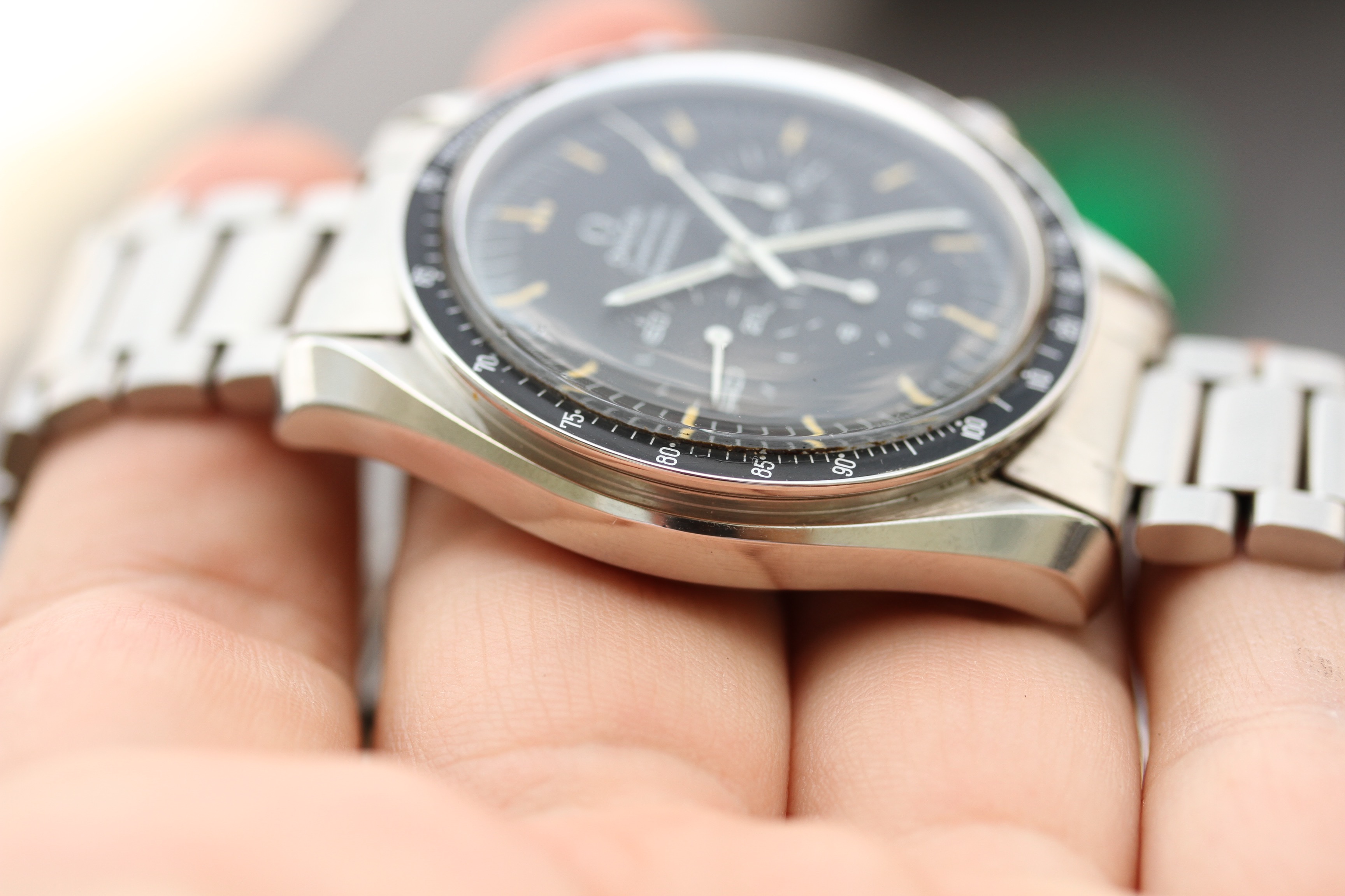 Dial is superb and flawless. No scratches, no chips, no spots, no marks. All of tritium is intact. It is a correct, early step dial, hands are excellent with yellow patina and also all tritium intact.
