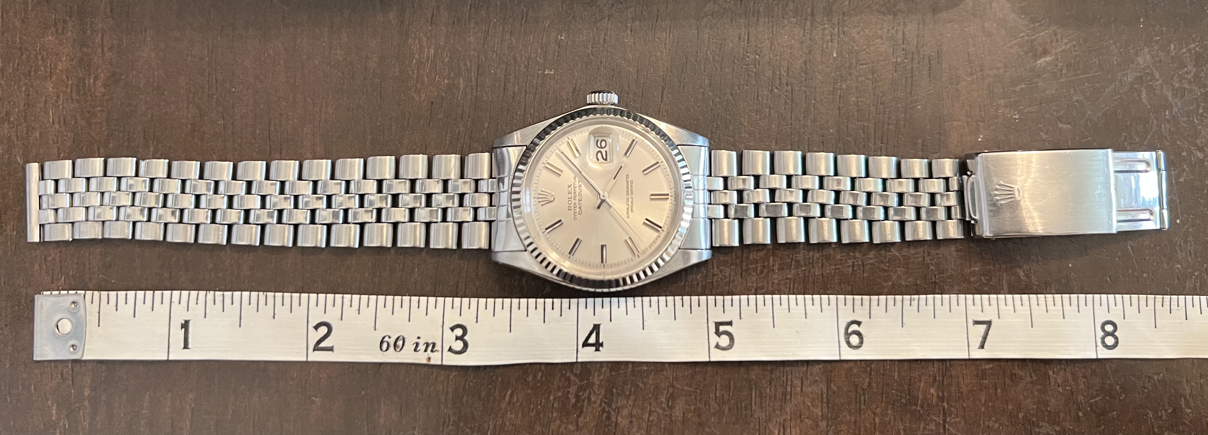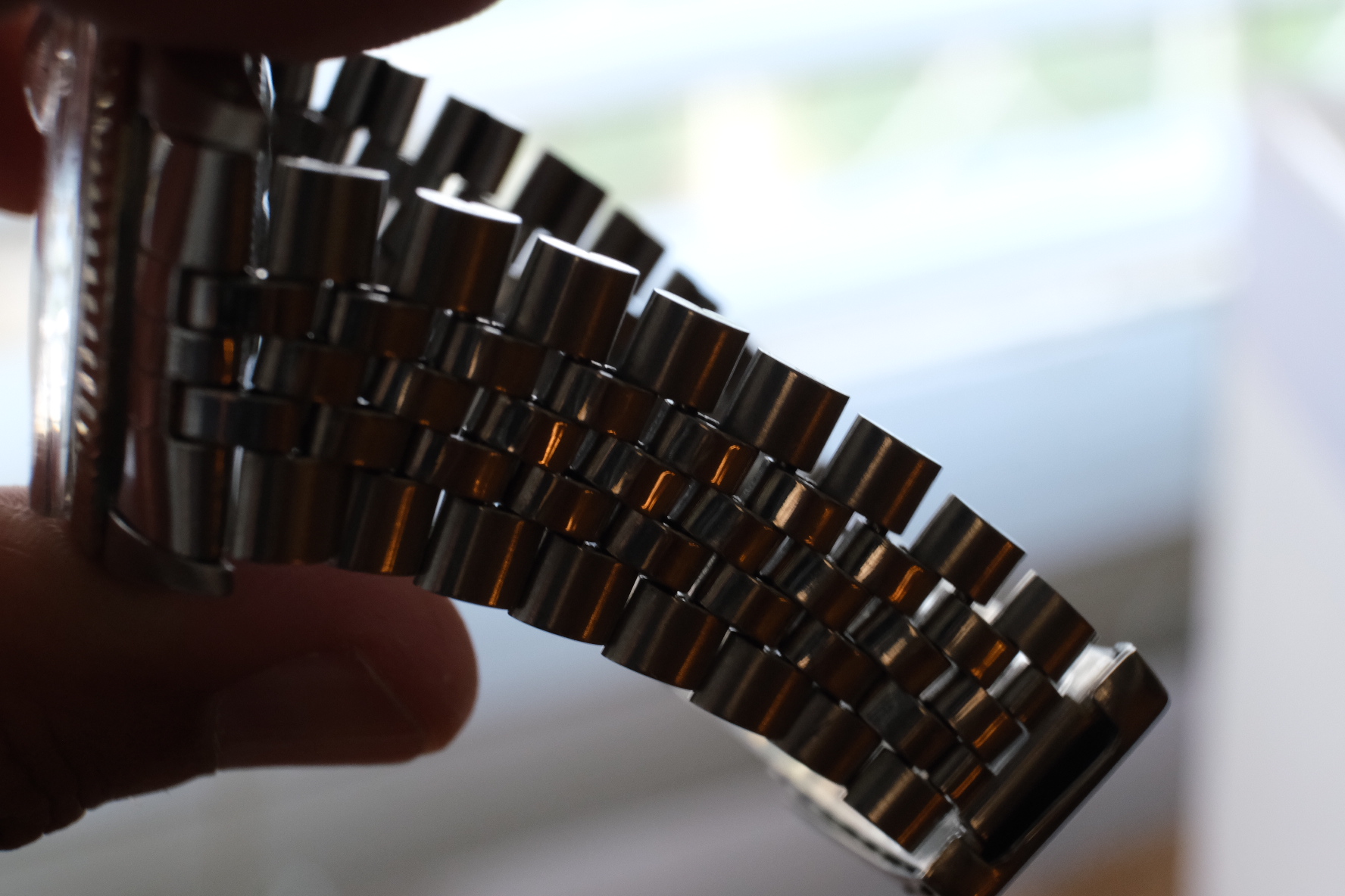 BRACELET: I believe this to be the original Rolex jubilee, folded links, correct for the time period, and the 1971 timestamp. Really nice condition, light scratches on the clasp, as expected, but doesn’t look to have been polished, that crown is nice and sharp. Also has below average stretch for it’s age, feels great on the wrist: