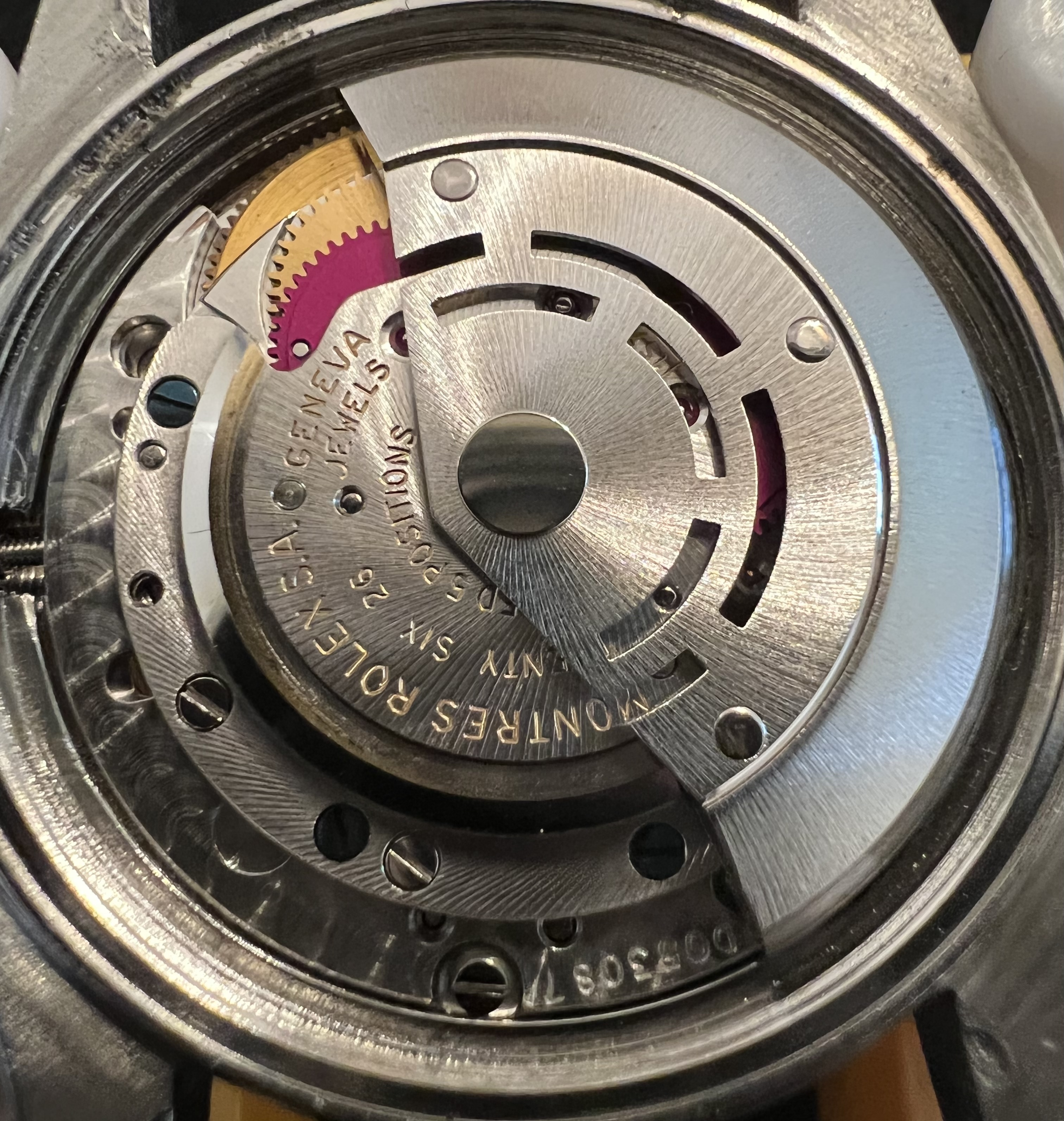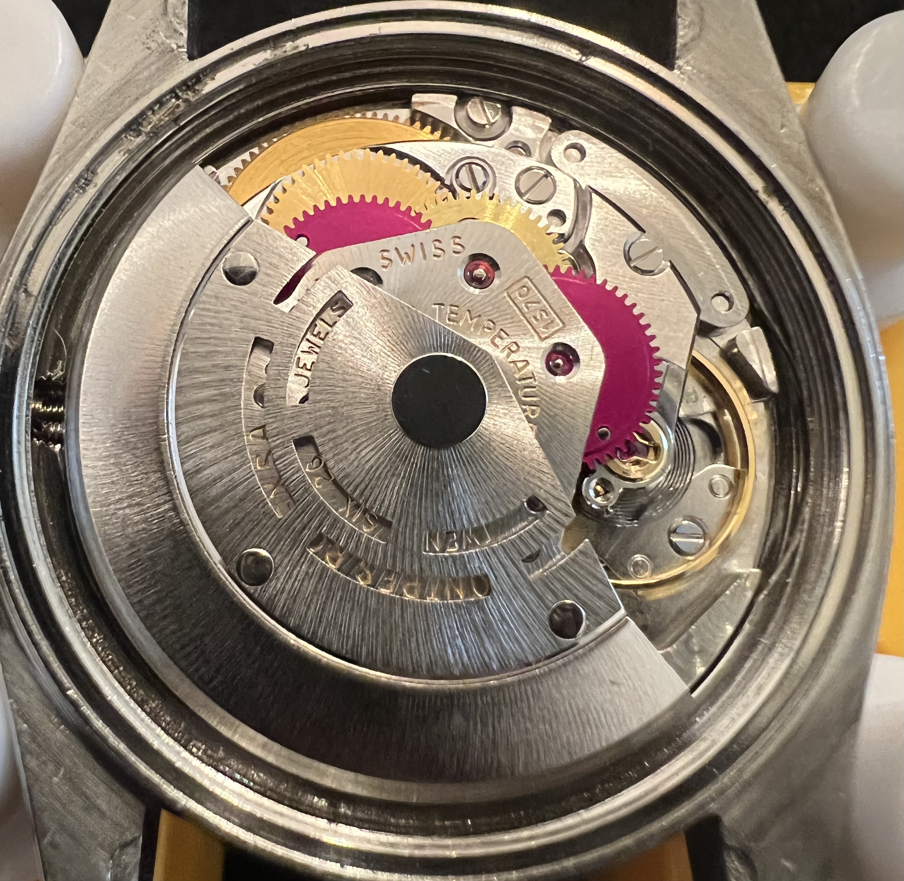 MOVEMENT: The Rolex automatic cal 1570 is working perfectly, was told it was serviced within the last year by the previous owner. Winding and setting well, keeping great time too. And very clean: